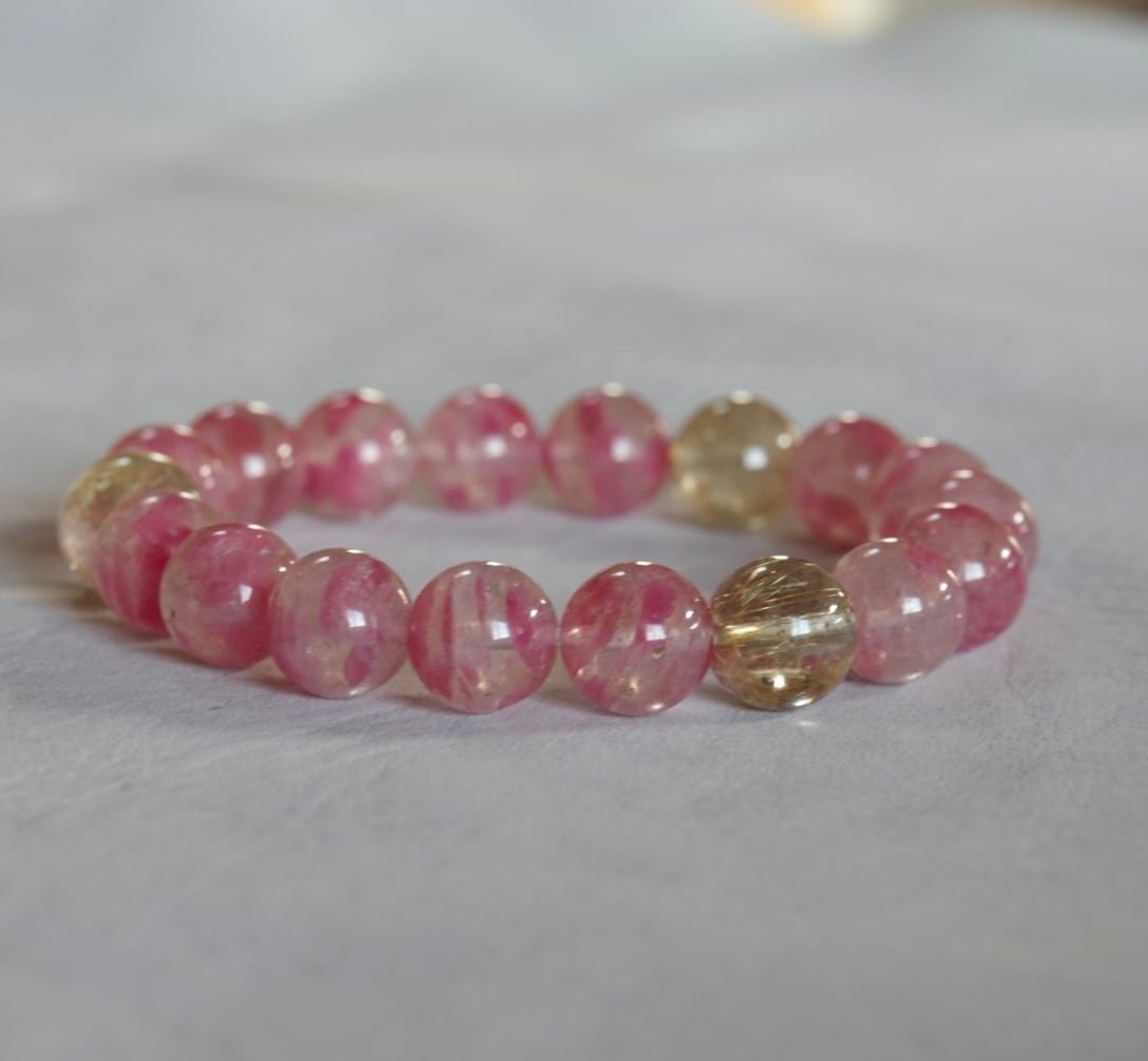 ロードナイトシリカ/ゴールドルチルクォーツ ブレスレット