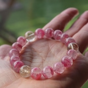 思わず「可愛い〜!」と声に出してしまうキュートなピンク色のブレスレット!ロードナイトシリカのキャンディのようなピンク色は気分が上がりますね。大きめの10㎜サイズなので石の表情もたっぷりお楽しみいただけます。