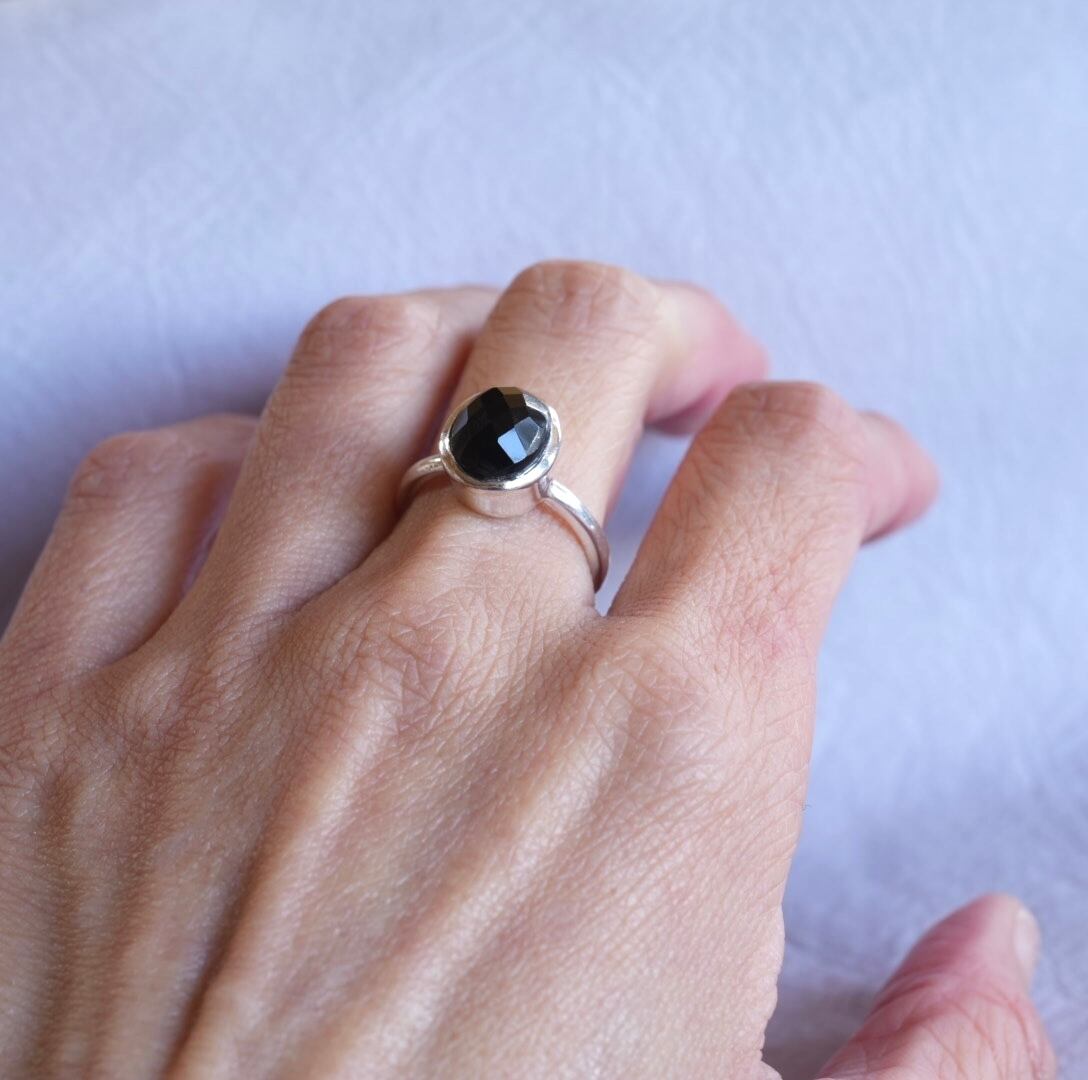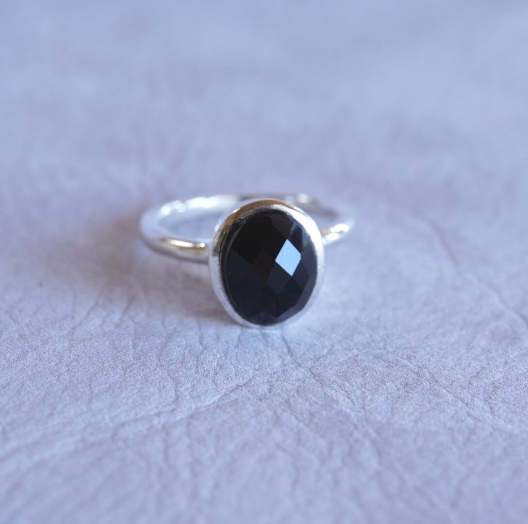 すっきりとしたシンプルなデザインの、オニキスのリングです。カットがほどこされているので、僅かに煌めきが見られるのも魅力です。