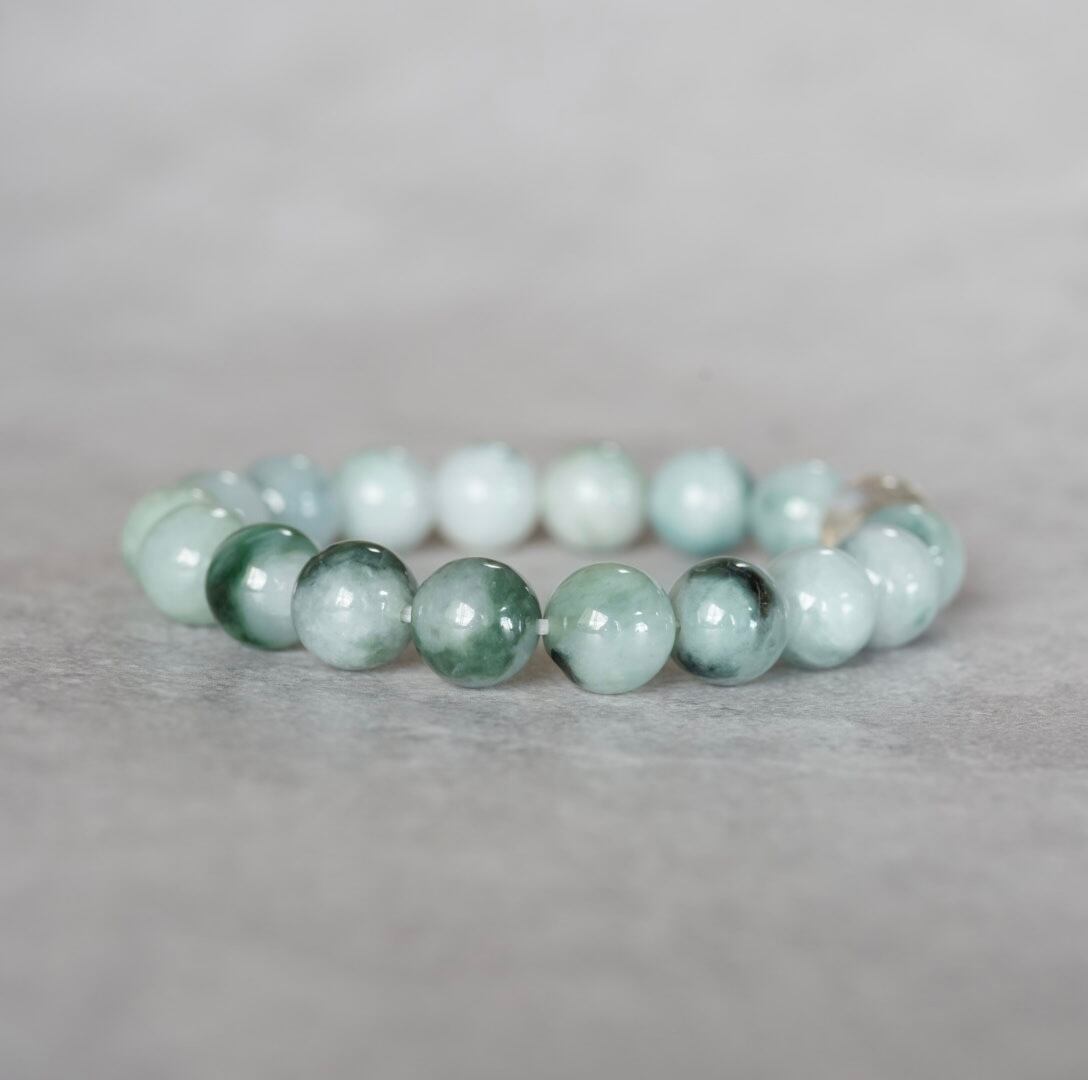 ミャンマー産のビルマ翡翠、今回はとても味わい深いものが入荷しました。白っぽい中に渋い翠色が入っていたり、渋い翠色のグラデーションだったりといろいろな表情を見せてくれるので、思わずずっと眺めてしまいます。翡翠を際立たせるため、ゴールドルチルクォーツを一粒でシンプルに仕上げています。