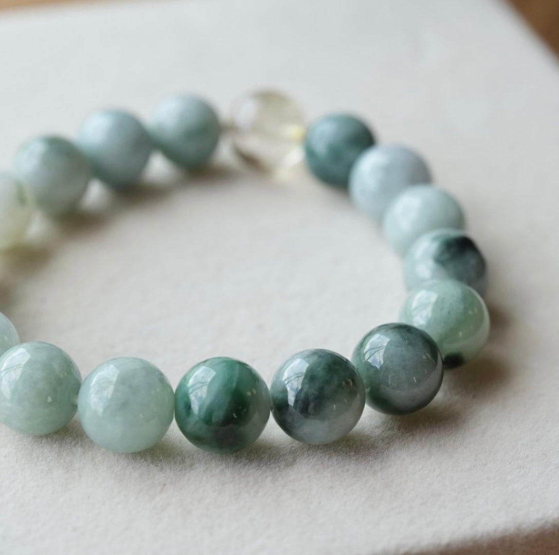 【再入荷】ビルマ翡翠/ゴールドルチルクォーツ ブレスレット