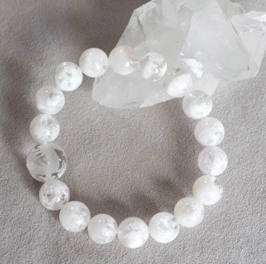 ホワイトガーデンクォーツ/龍彫水晶 ブレスレット