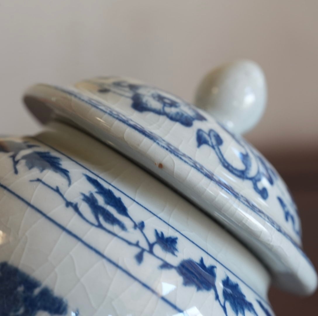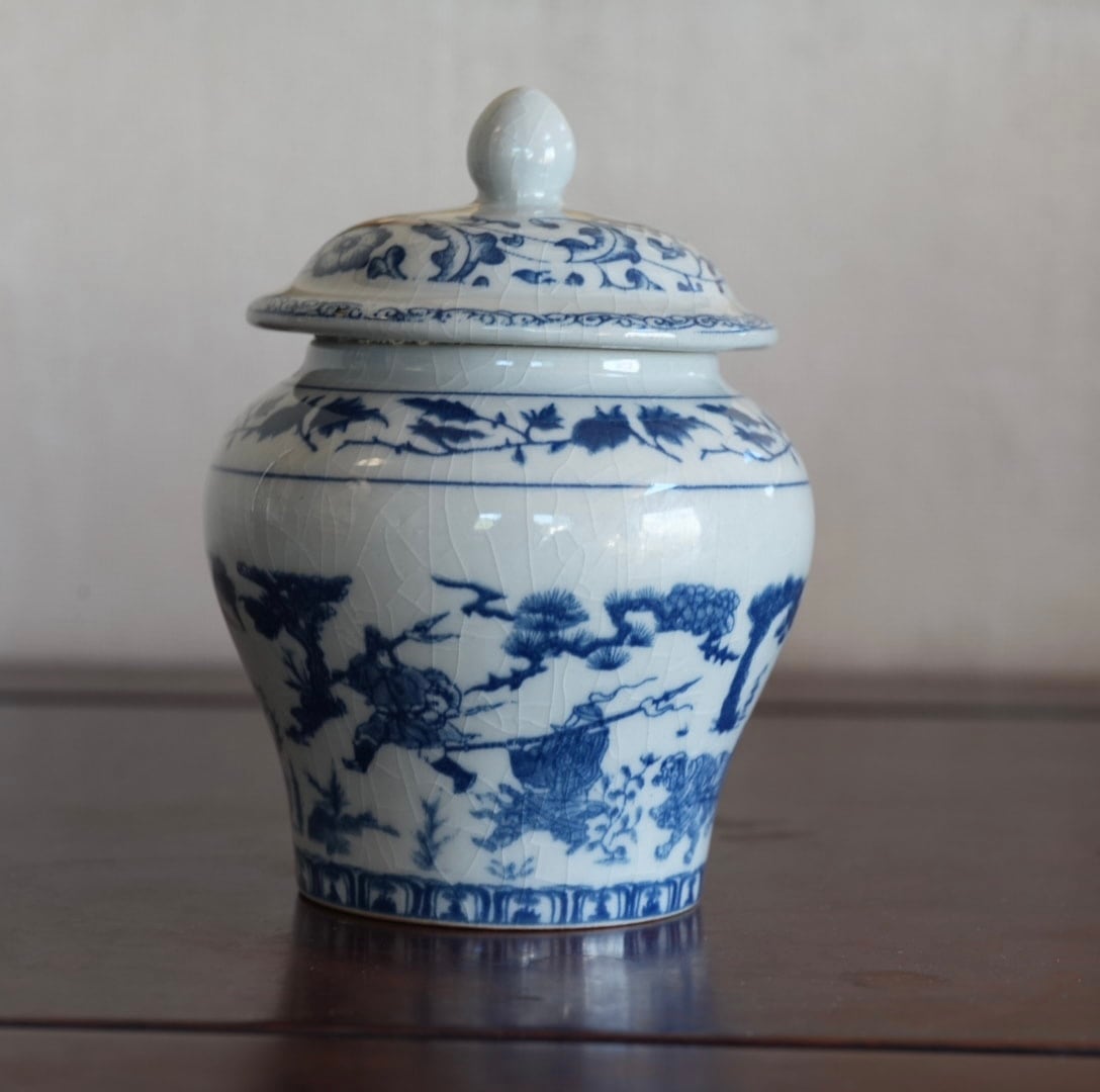 アンティーク調の色合い、ぷっくりしたカタチが目を惹くこちらはジンジャーポット。ジンジャーポットとは、中国からヨーロッパへ生姜を輸出する際に使われていたポットです。お茶やキャンディーなどを入れるのにも良さそうですね。梅干しも良さそうです!何も入れなくても、飾るだけでもシノワズリーな空間を演出してくれます。
