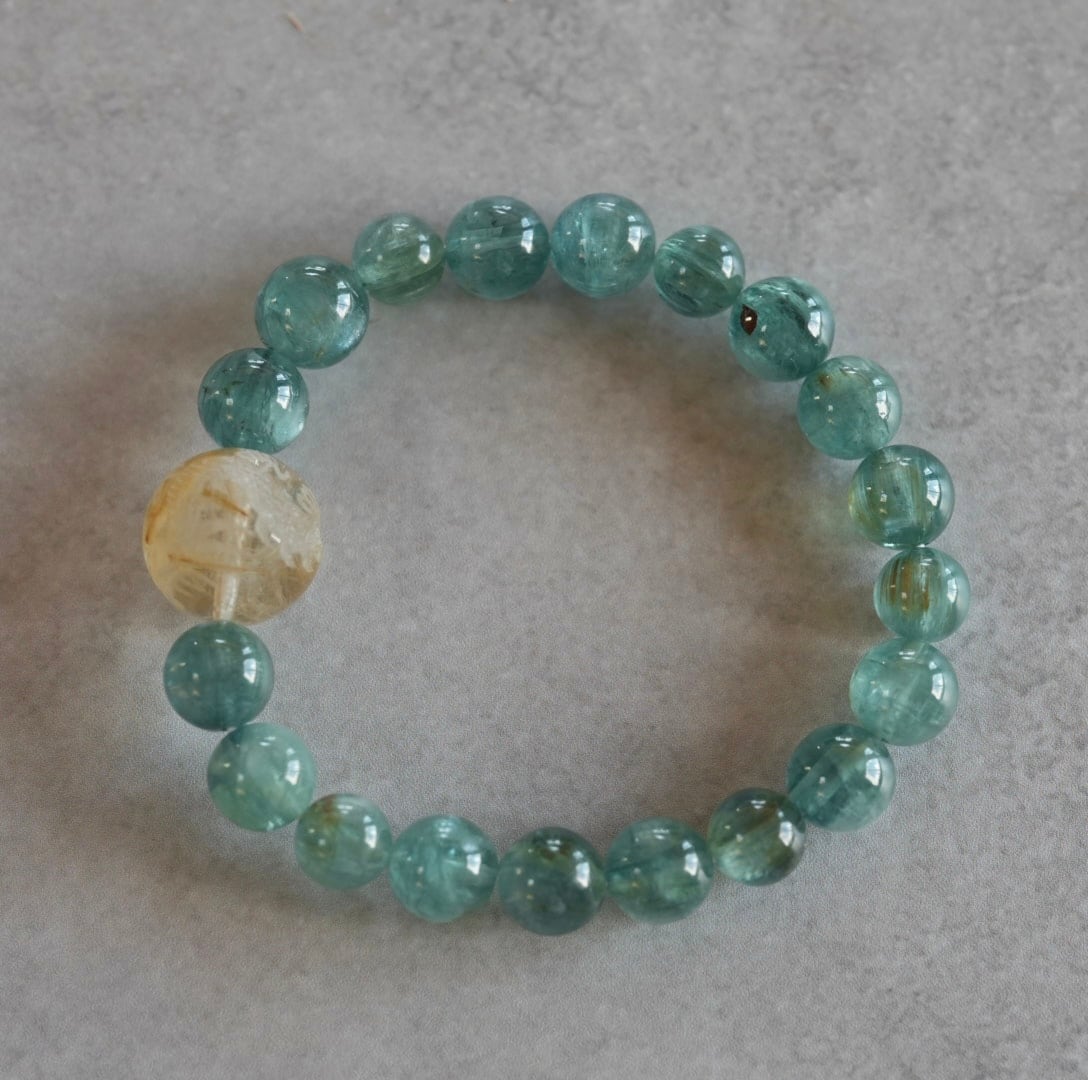 グリーンカイヤナイトシリカ/龍彫タイチンルチル ブレスレット