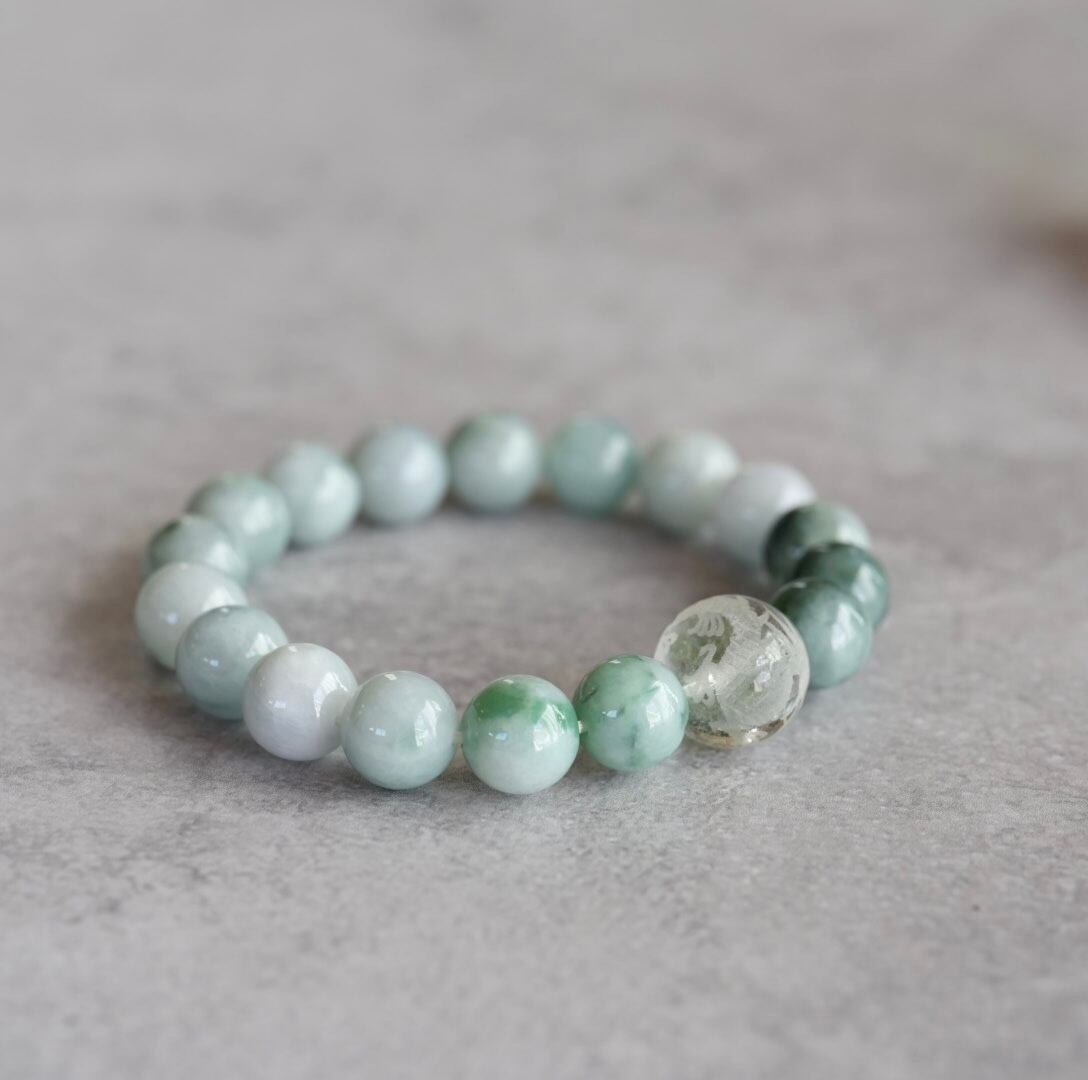 ビルマ翡翠/龍彫ガーデン水晶 ブレスレット