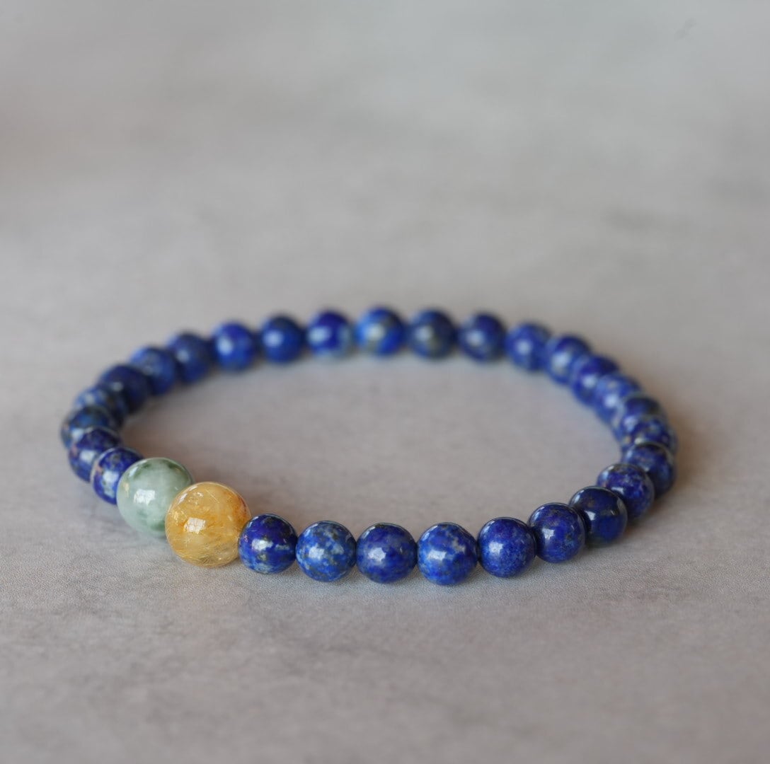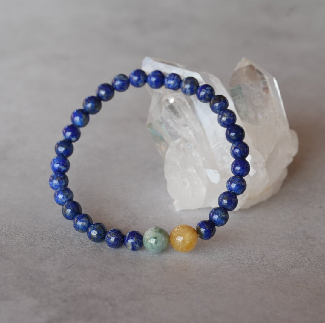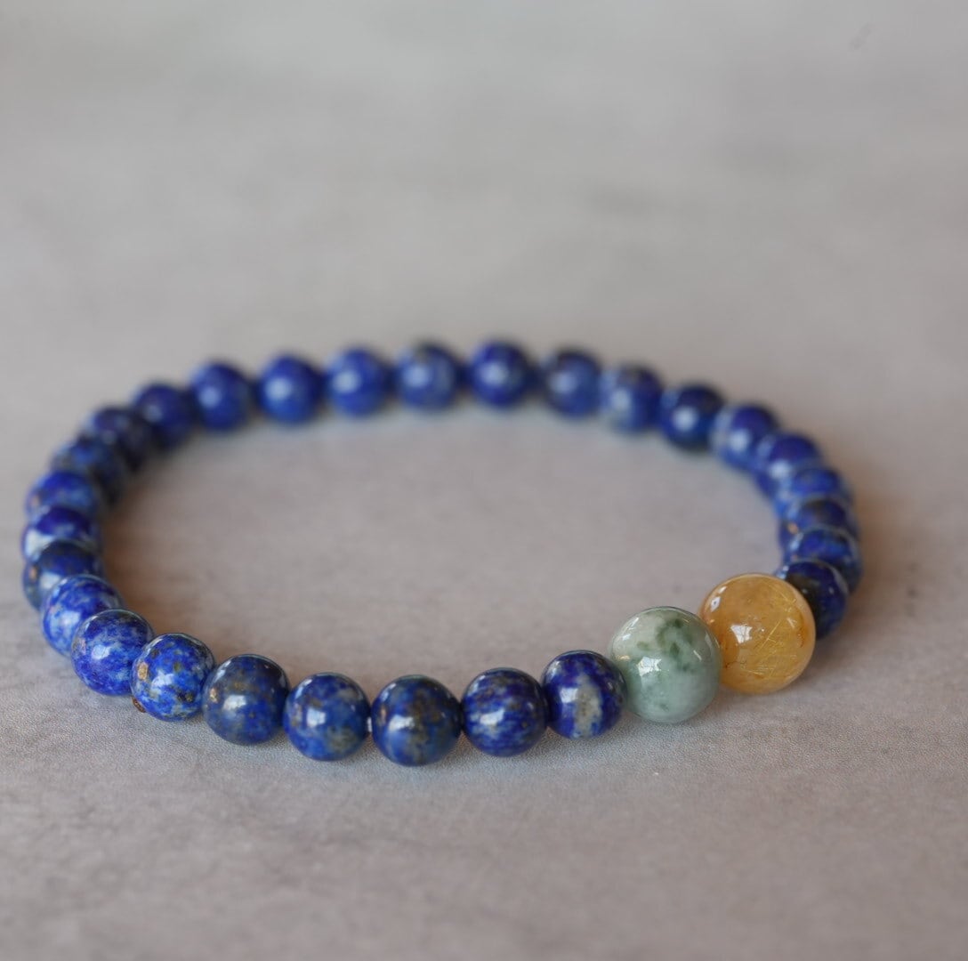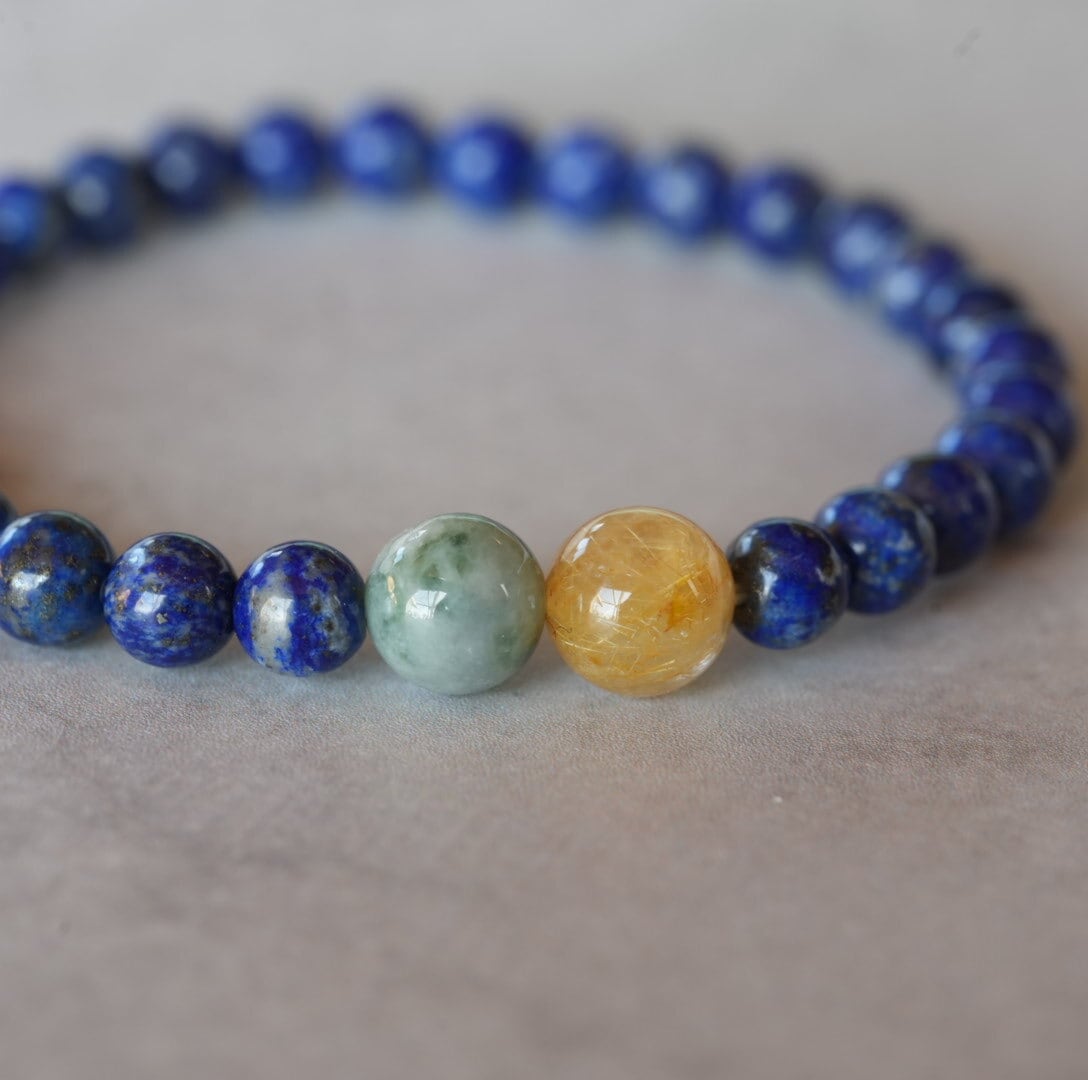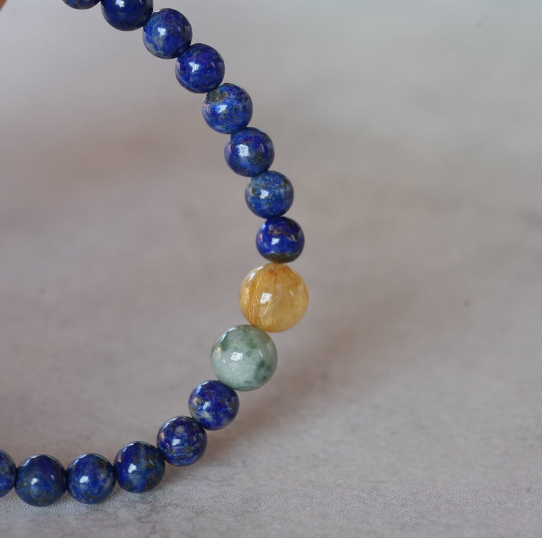 【再入荷】お買い得!ラピスラズリ/ビルマ翡翠/ゴールドルチル ブレスレット