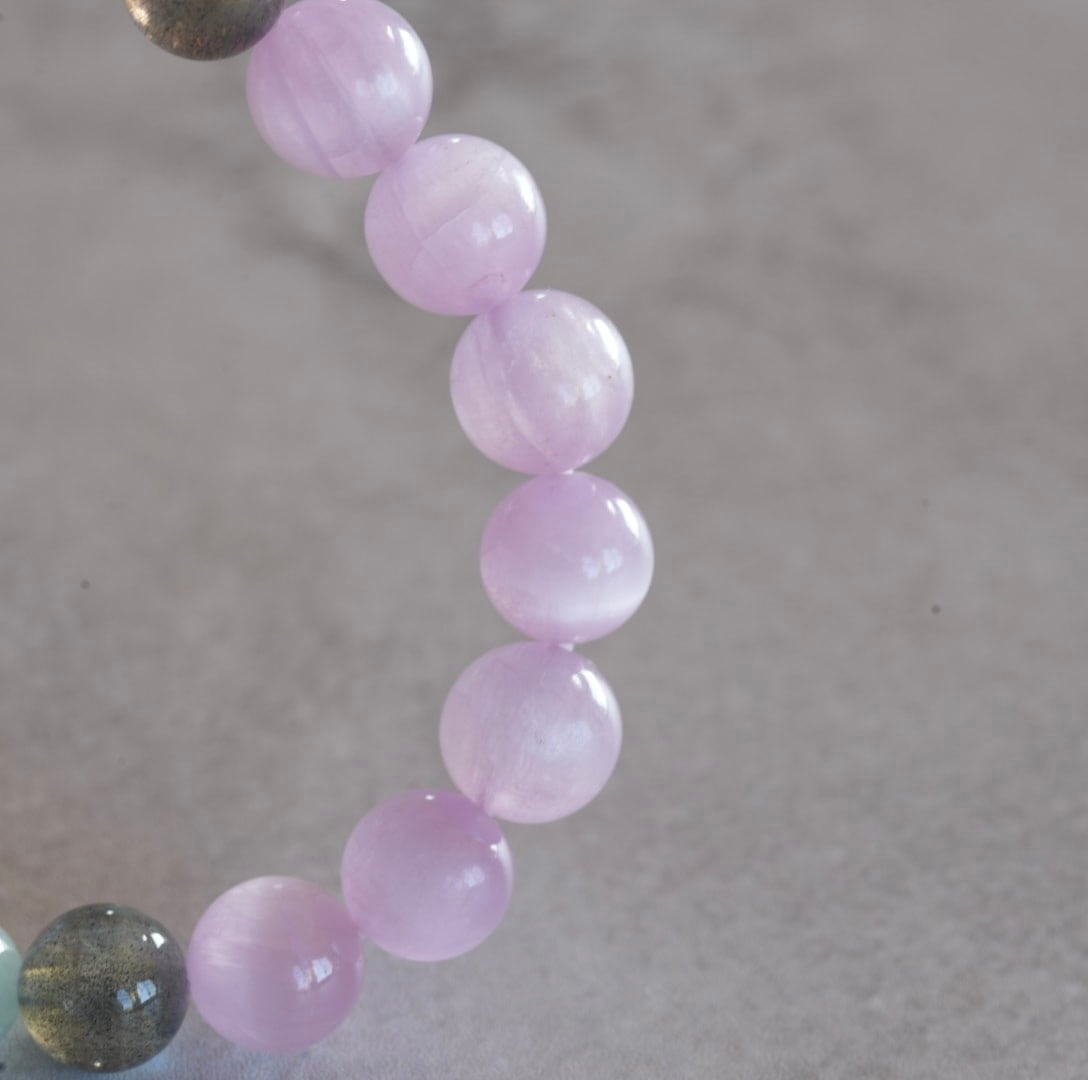 淡く優しいライラック色のクンツァイト、眺めているだけでふわりと心が軽くなります。艶感もあってなんだか若返り効果もありそうな気持ちにもなります。