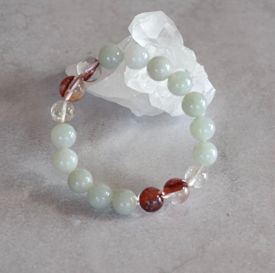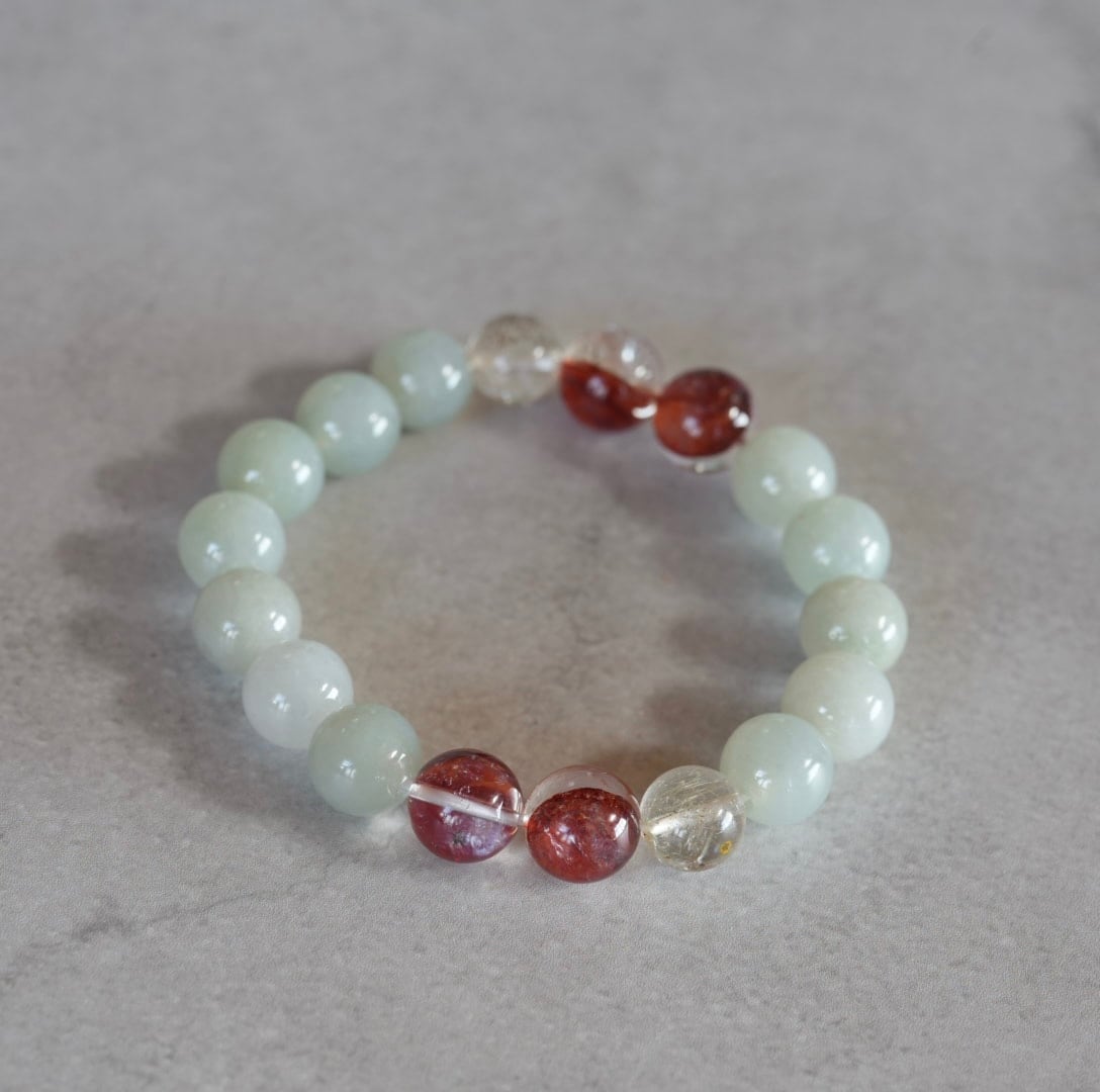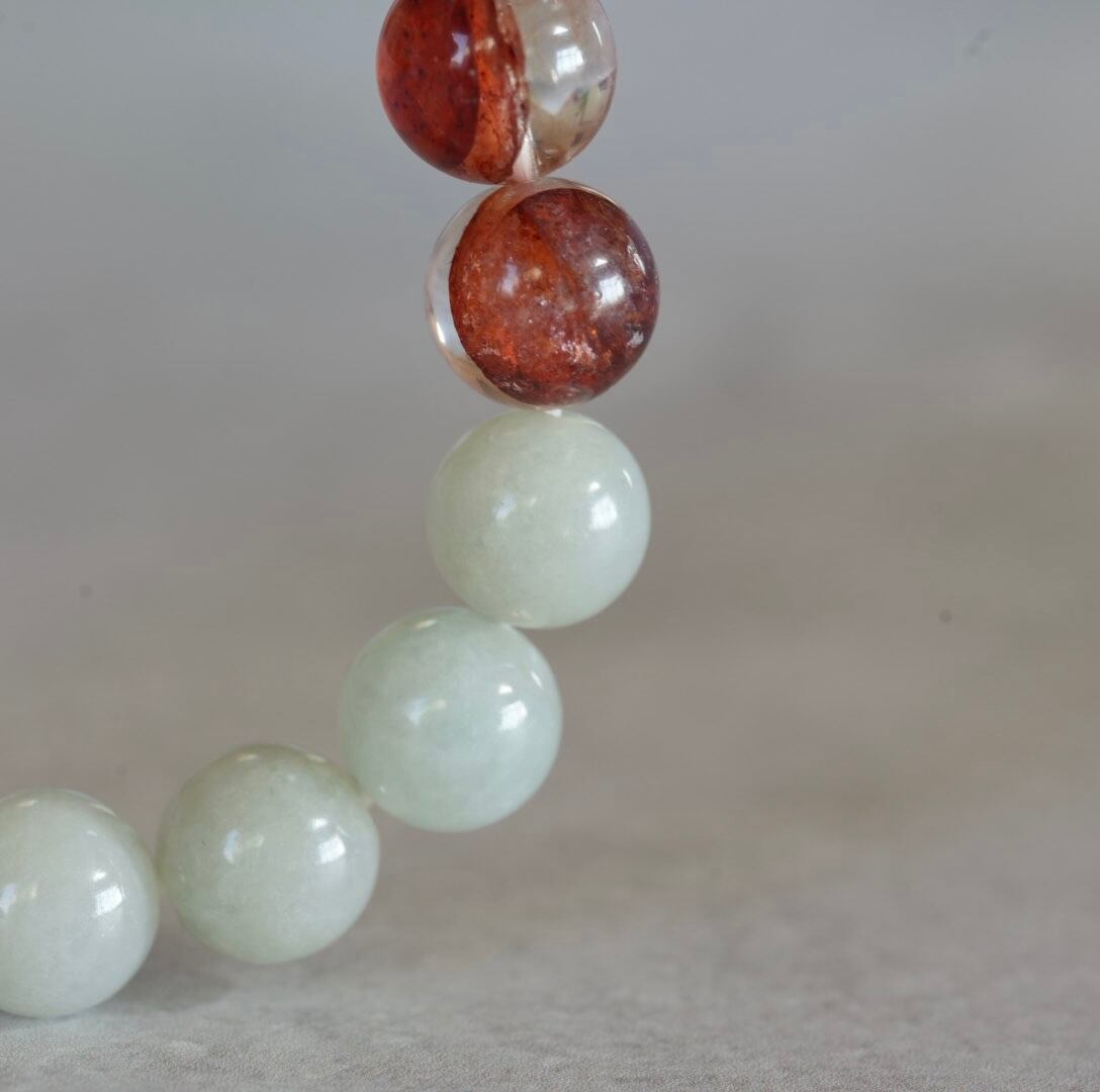 ビルマ翡翠/レッドヘマタイトクォーツブレスレット