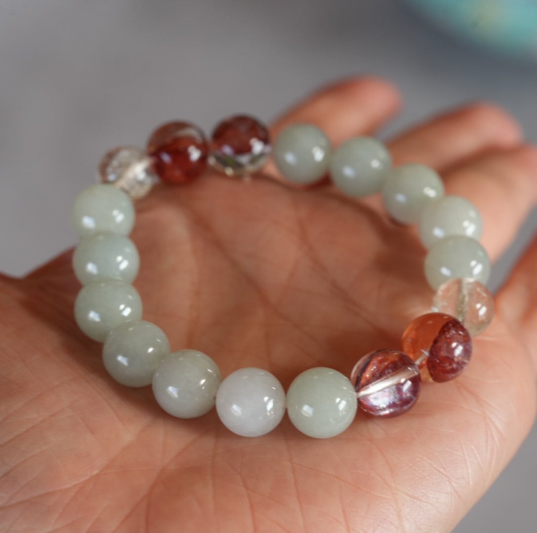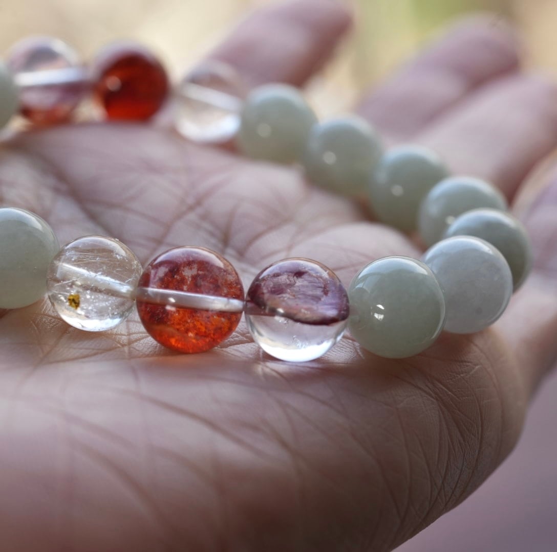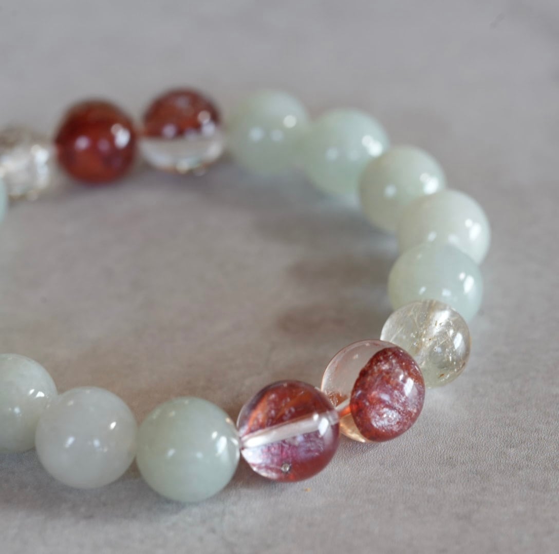 ビルマ翡翠/レッドヘマタイトクォーツブレスレット