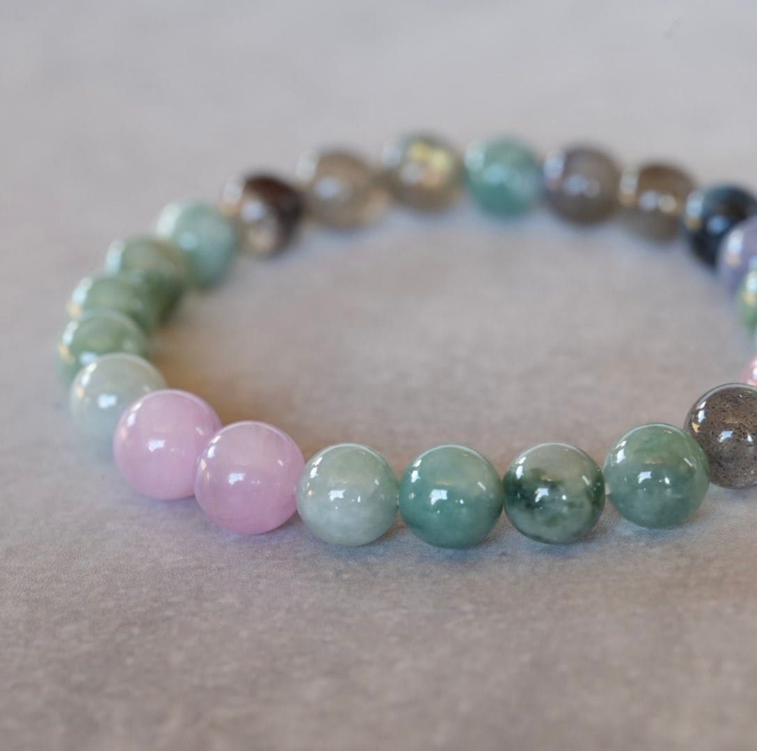 ビルマ翡翠/クンツァイト/ラブラドライト ブレスレット