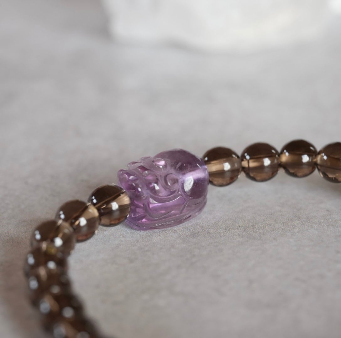伝説の神獣!アメジスト貔貅/スモーキークォーツブレスレット