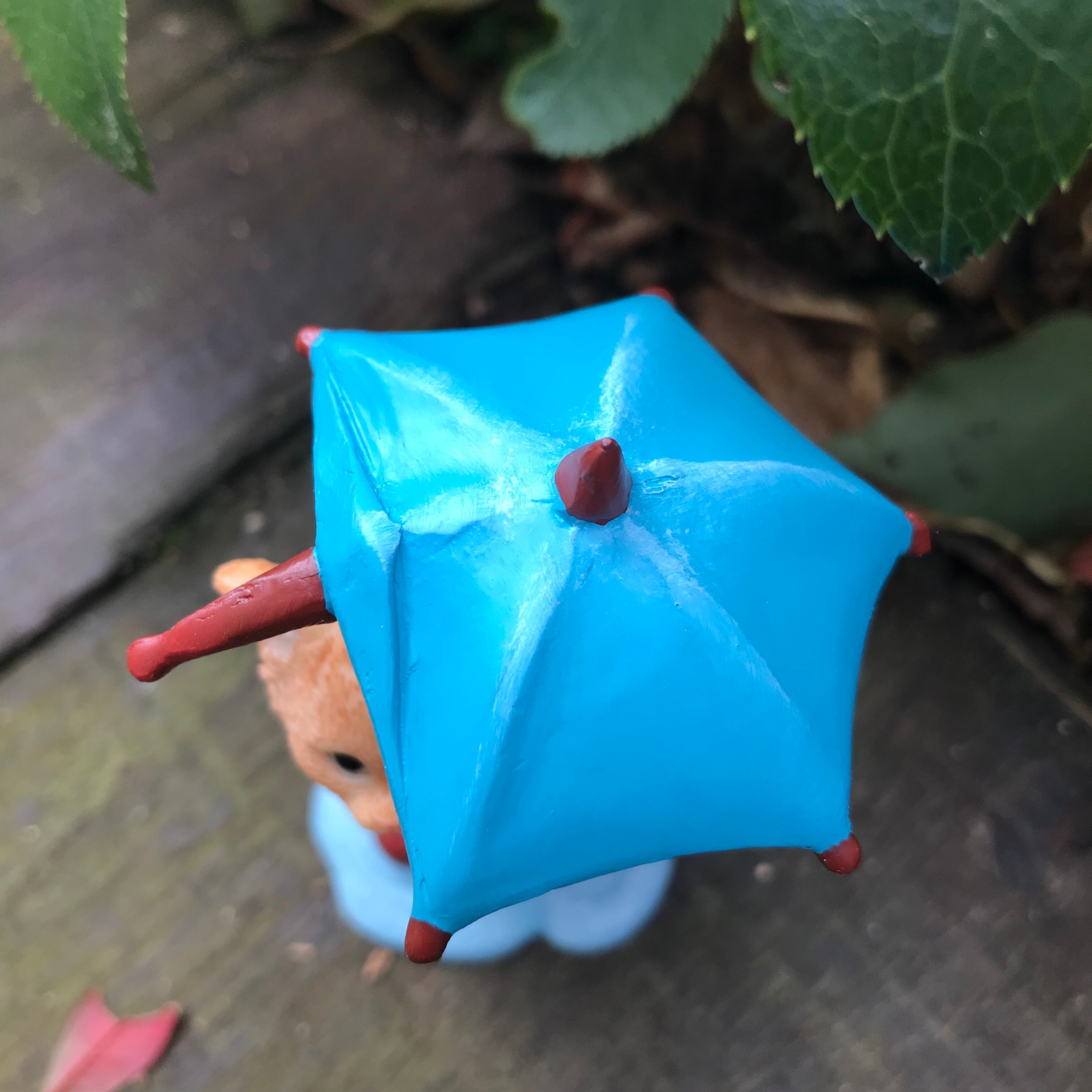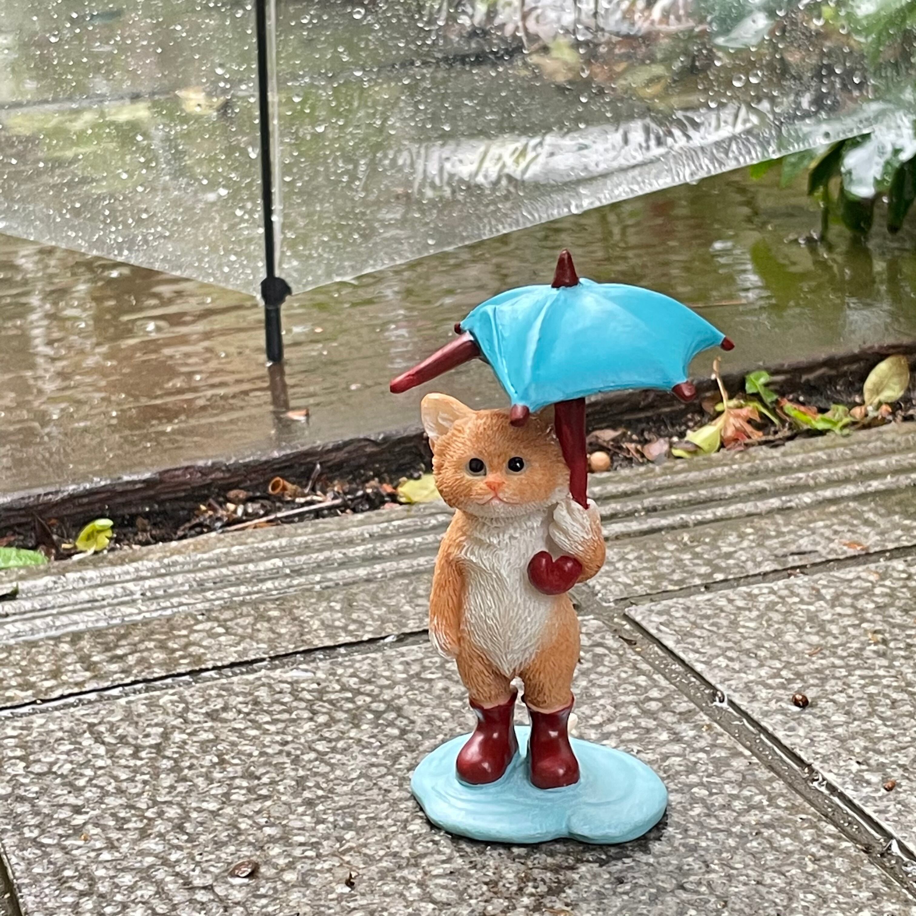 【ネコオブジェ】傘をさしても濡れてるネコ