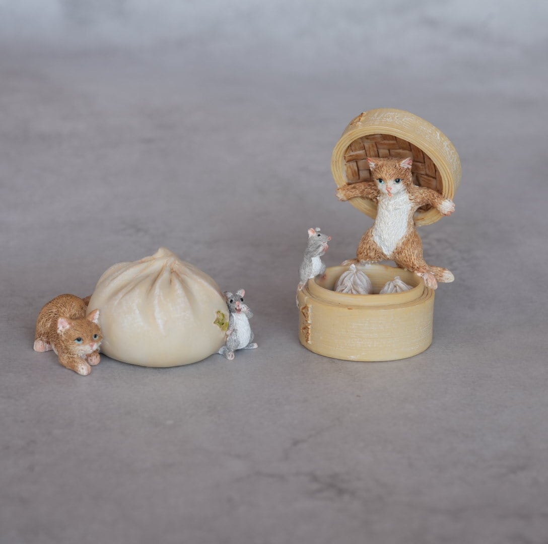 再入荷【ネコオブジェ】小籠包とネコとネズミ