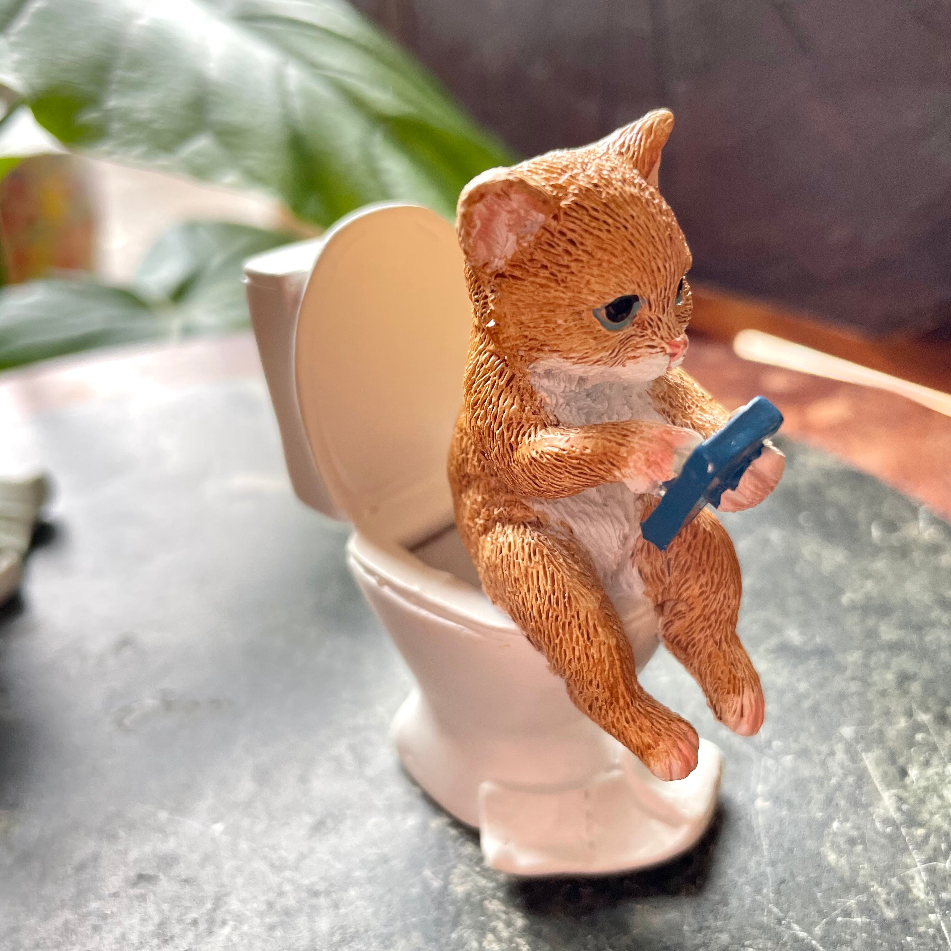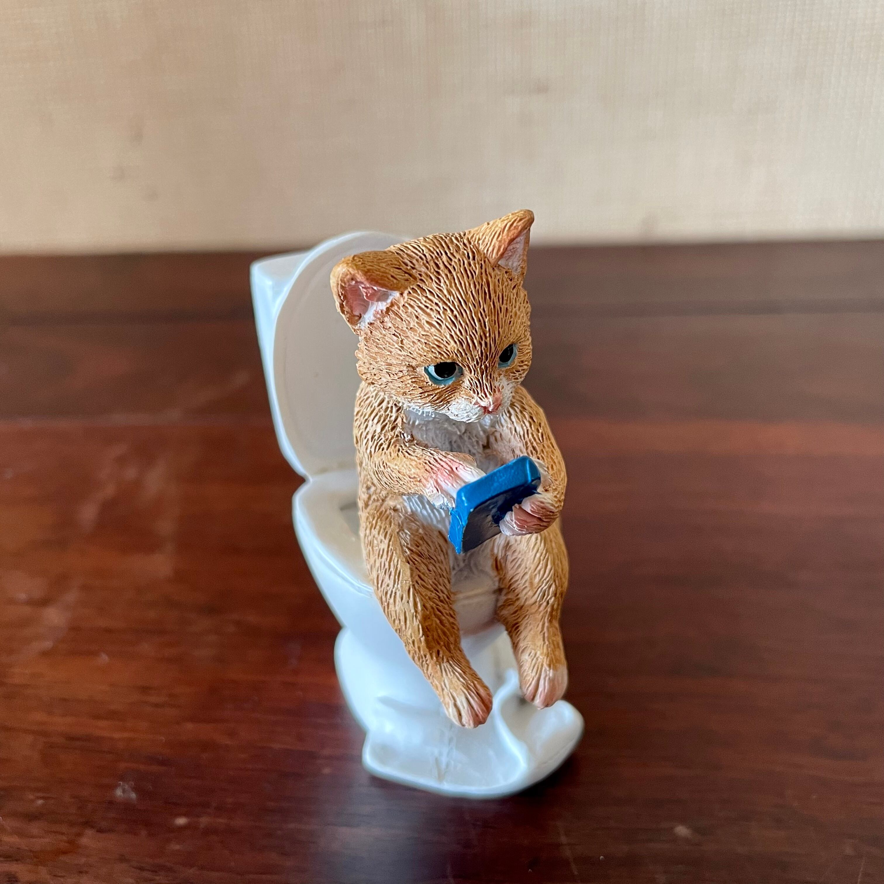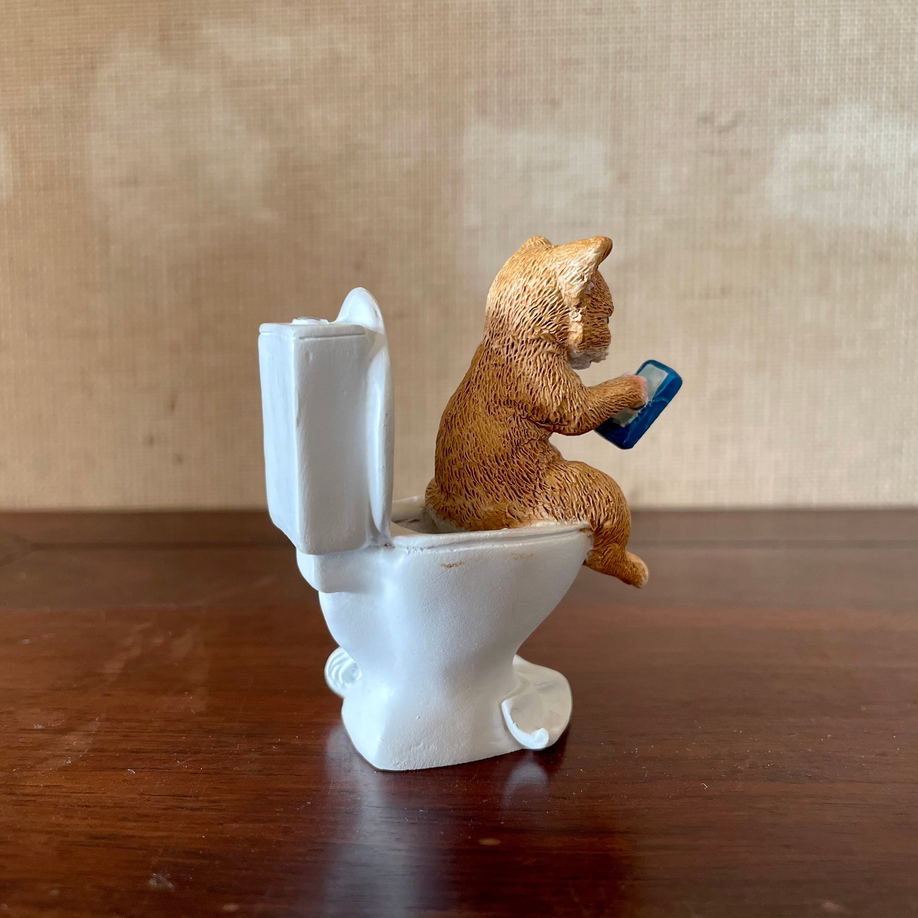 トイレの中でスマホをしているネコさんのオブジェです。