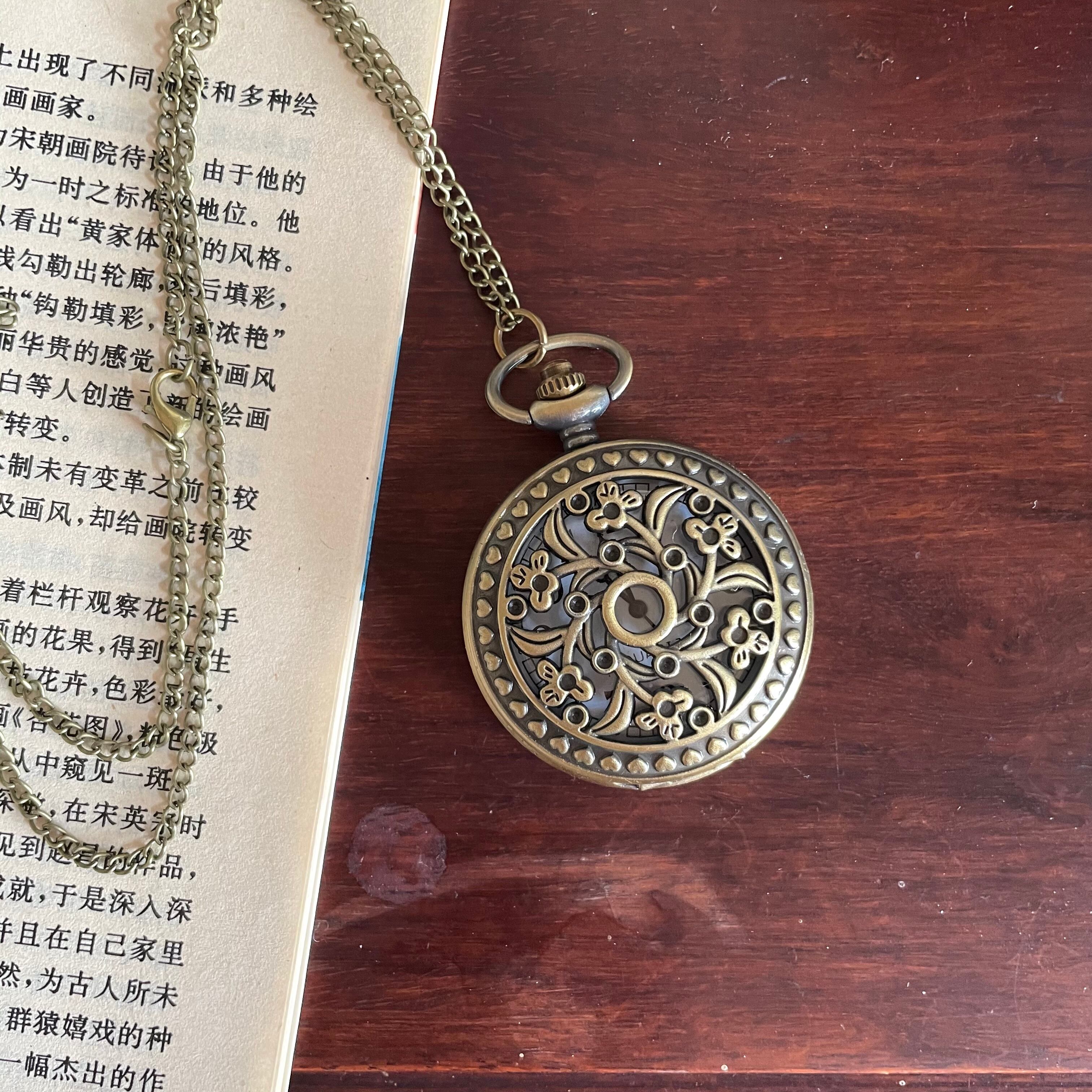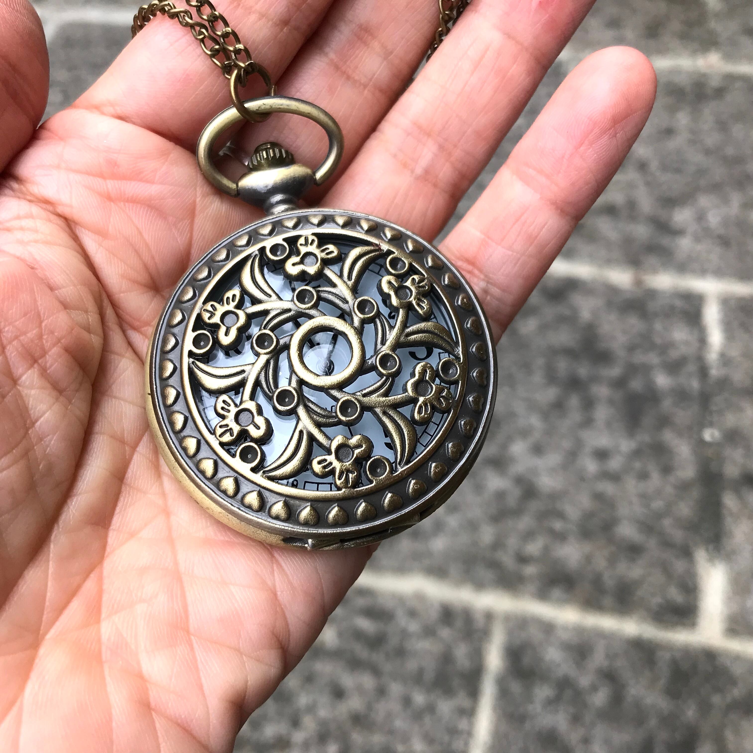 アンティーク調 懐中時計 花柄