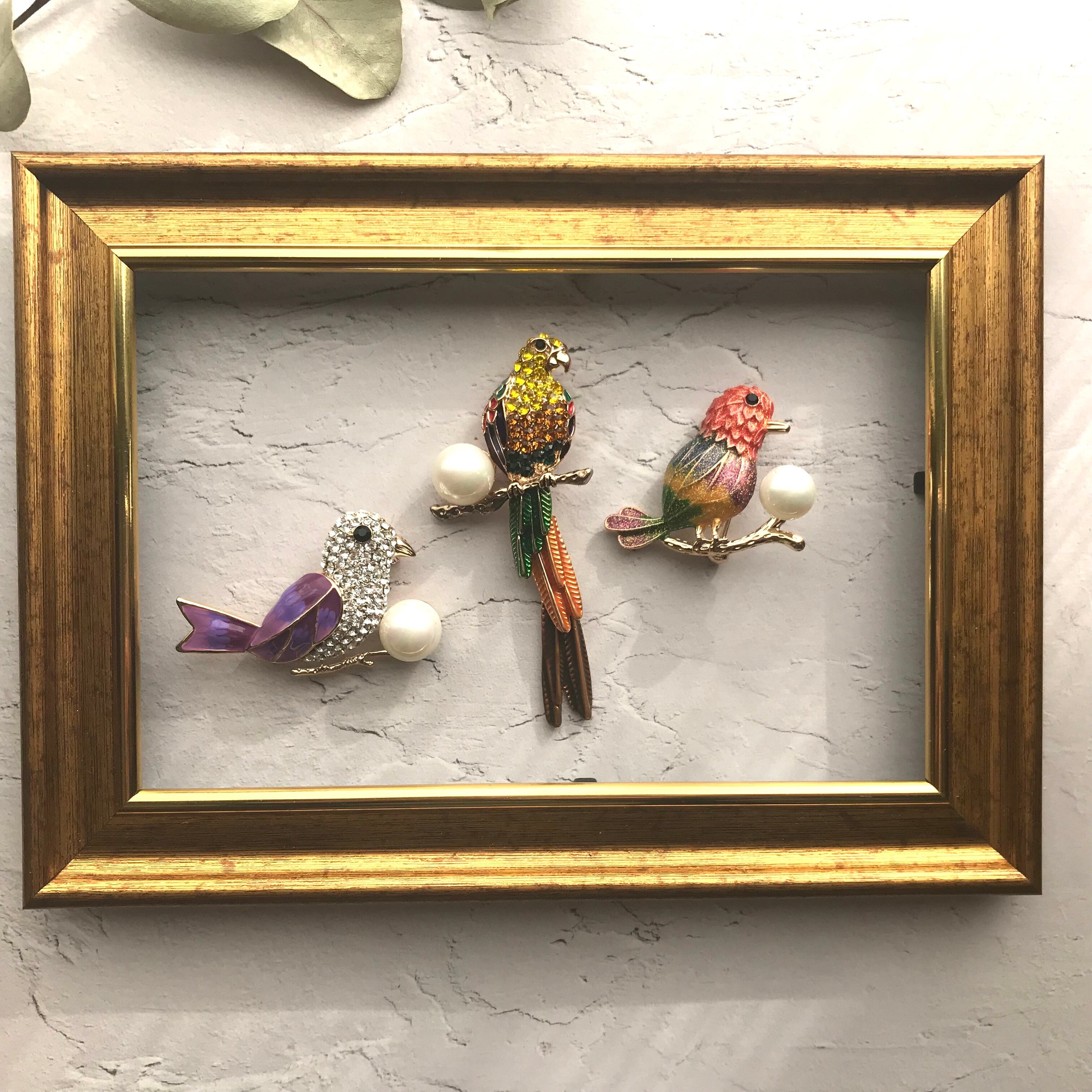 キラキラ 鳥のブローチ