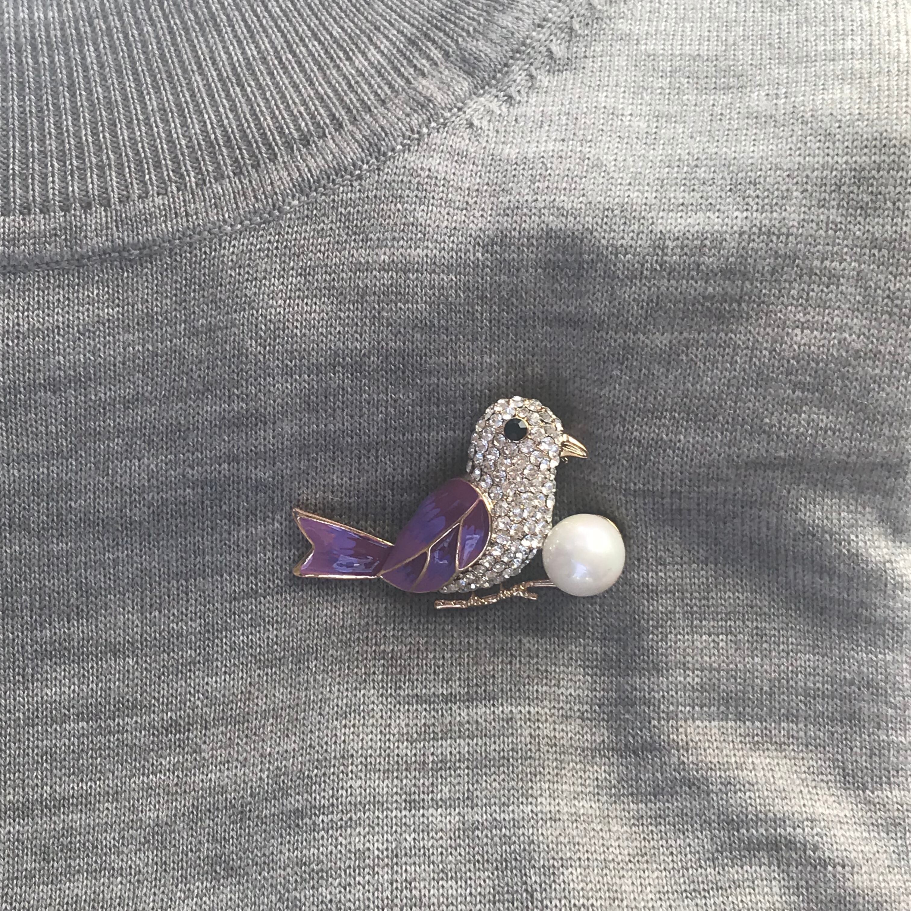 エナメル七宝が美しい鳥のブローチです。