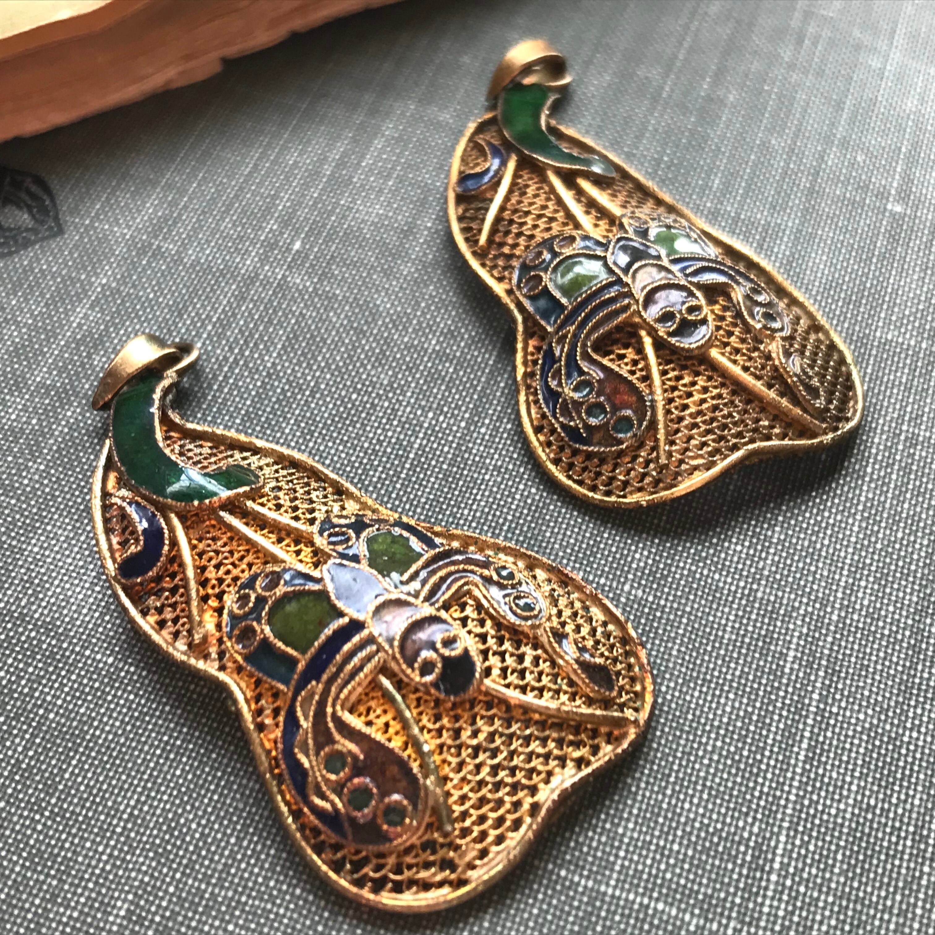 細かな細工と七宝焼きの落ち着いた色合いを
