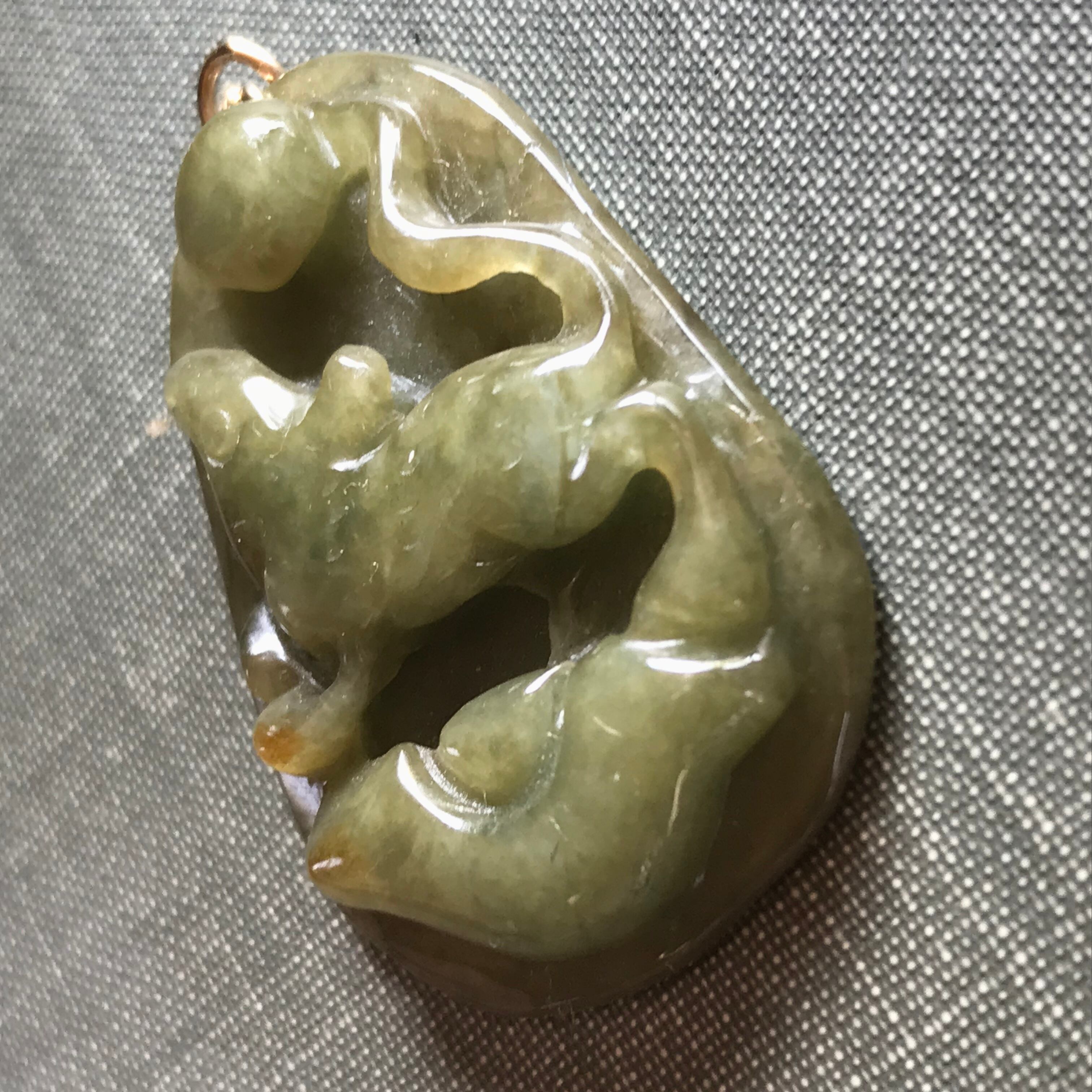 翡翠 ペンダントトップ ネズミ彫刻