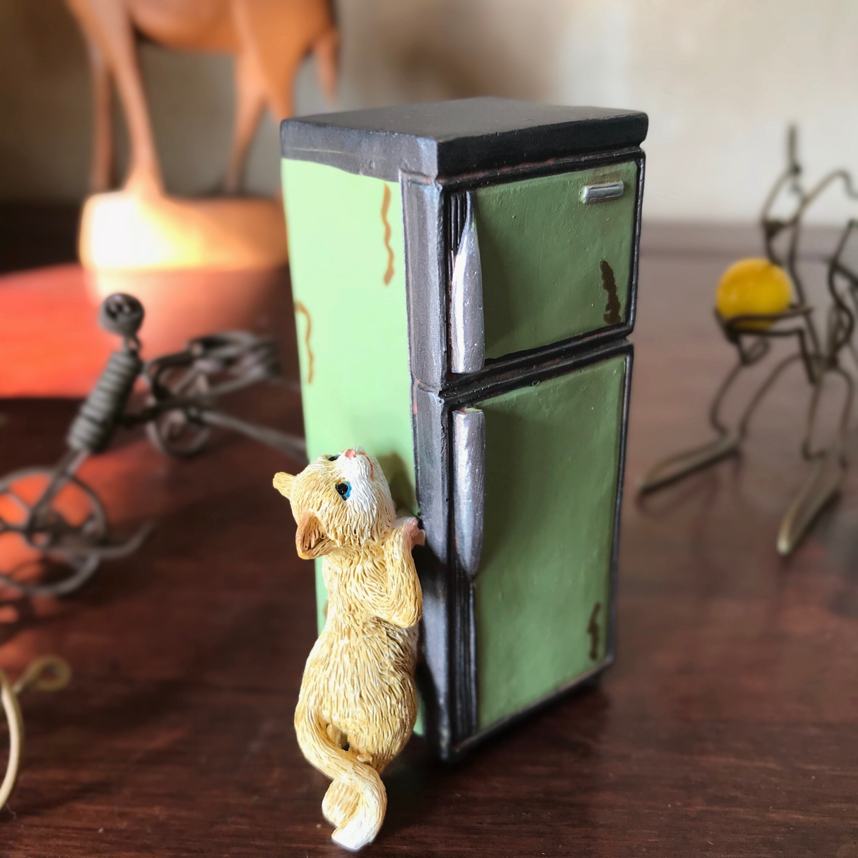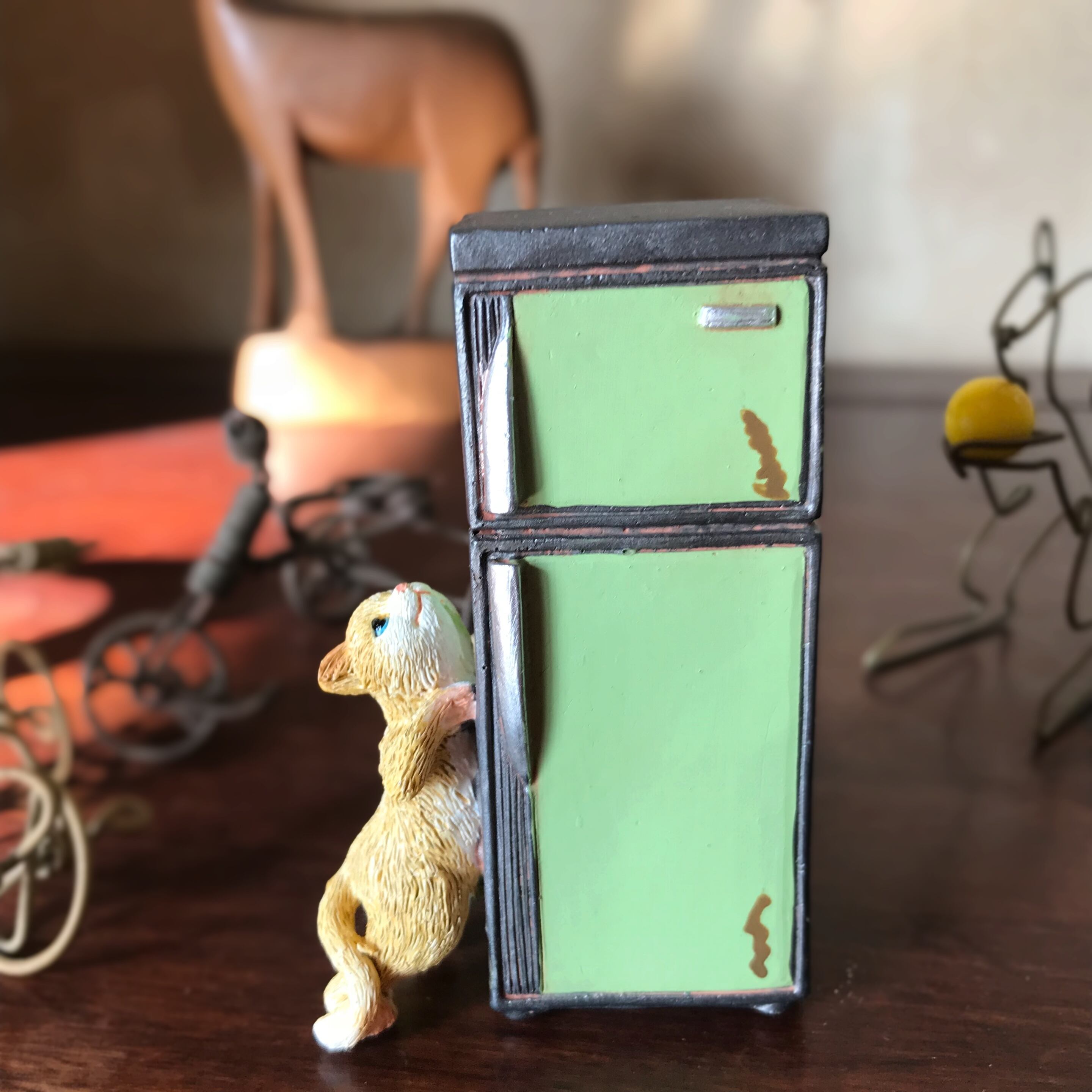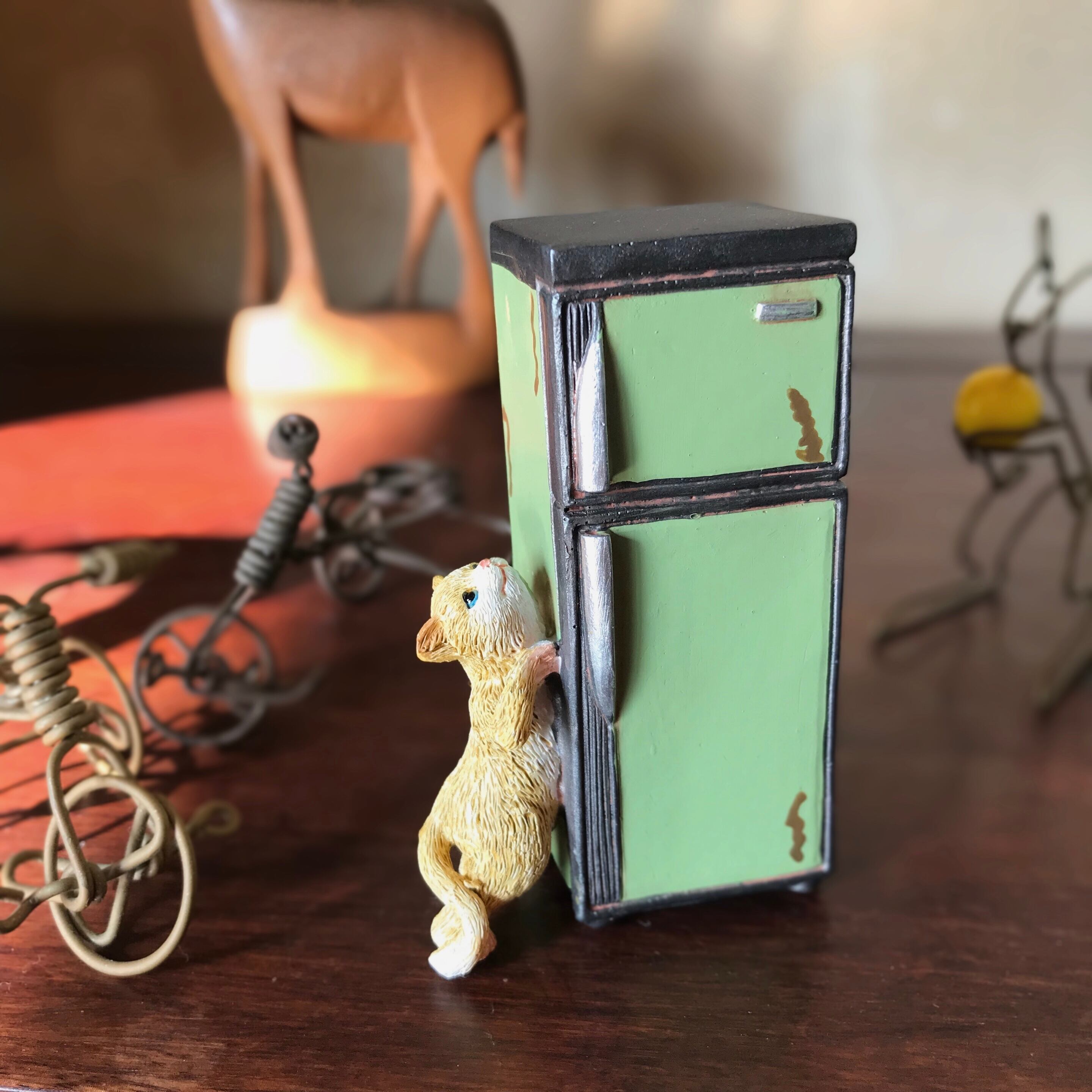 【ネコオブジェ】レトロな冷蔵庫とネコ