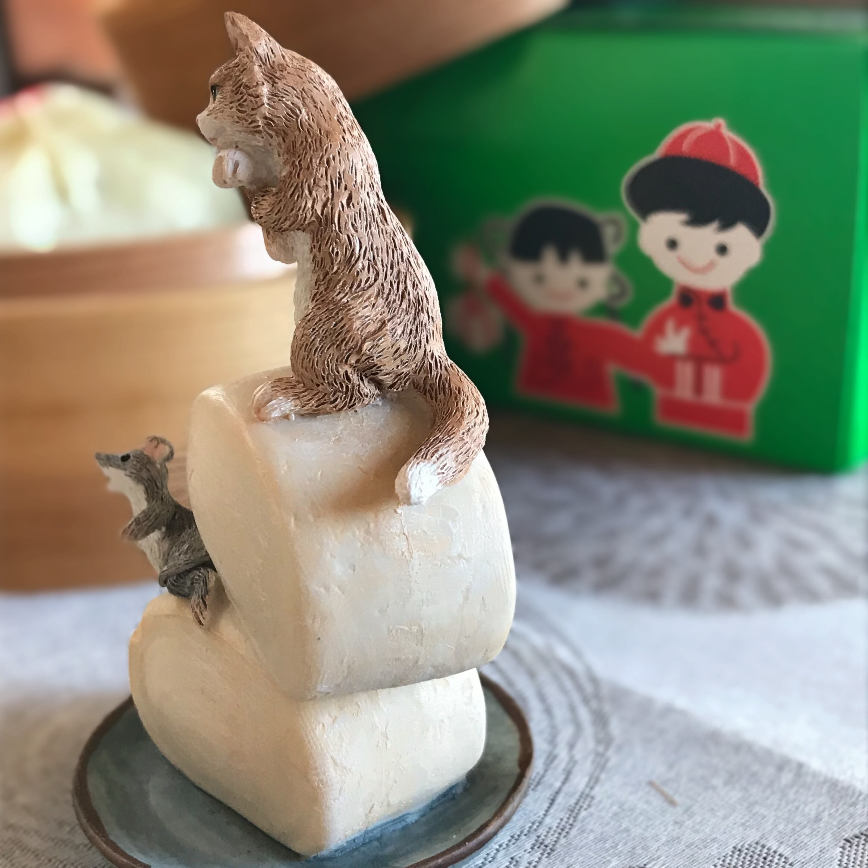 【ネコオブジェ】中華まん(マントウ)とネコ