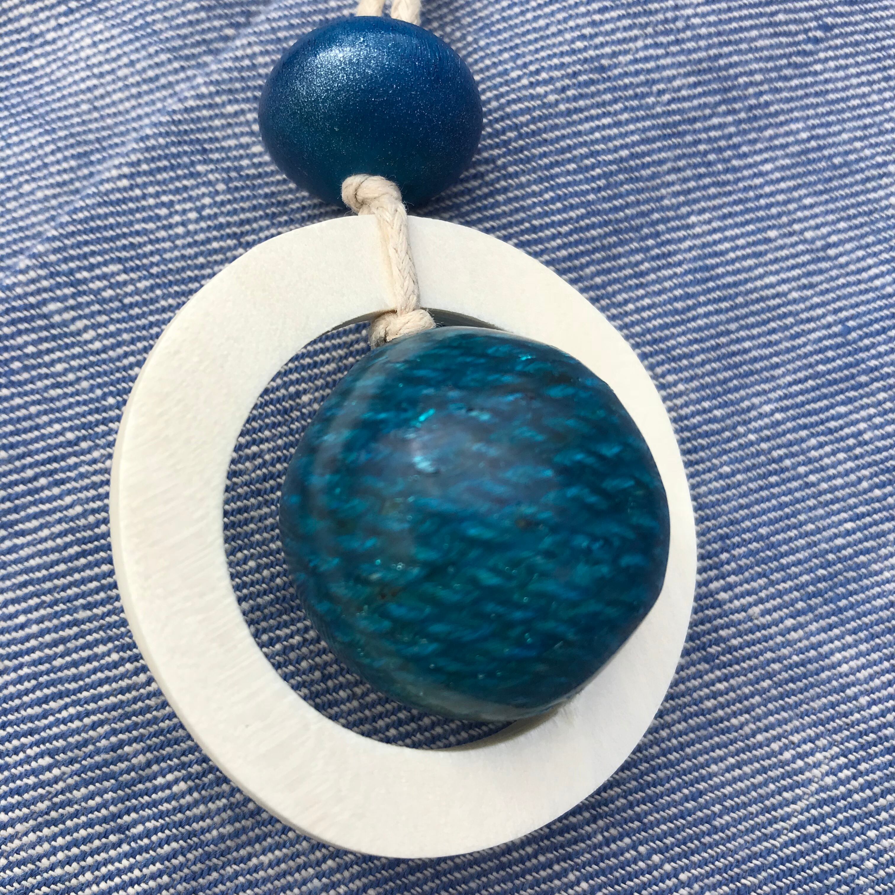 丸い玉は、麻紐を巻いてその上に樹脂でコーティングしています。
