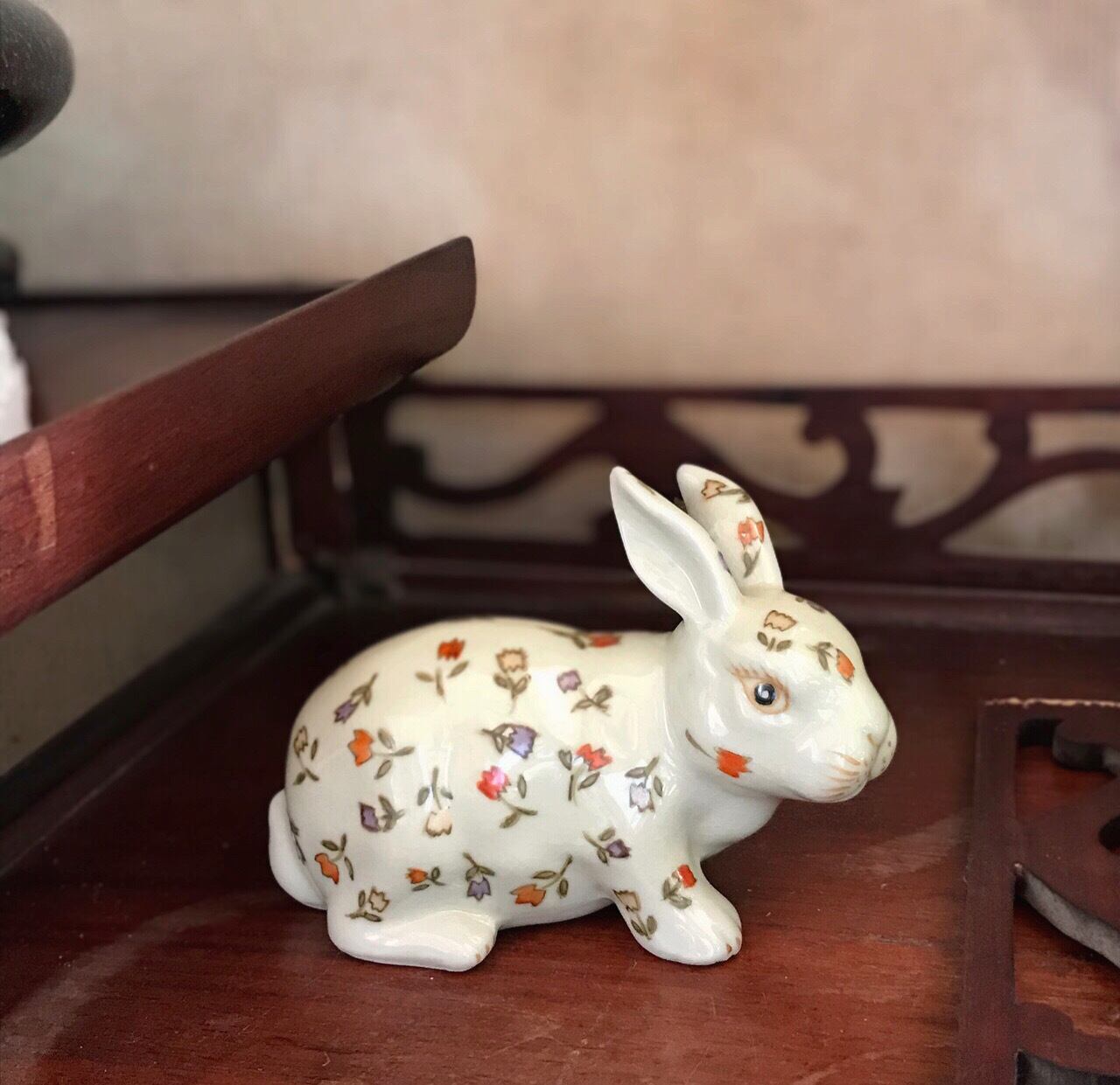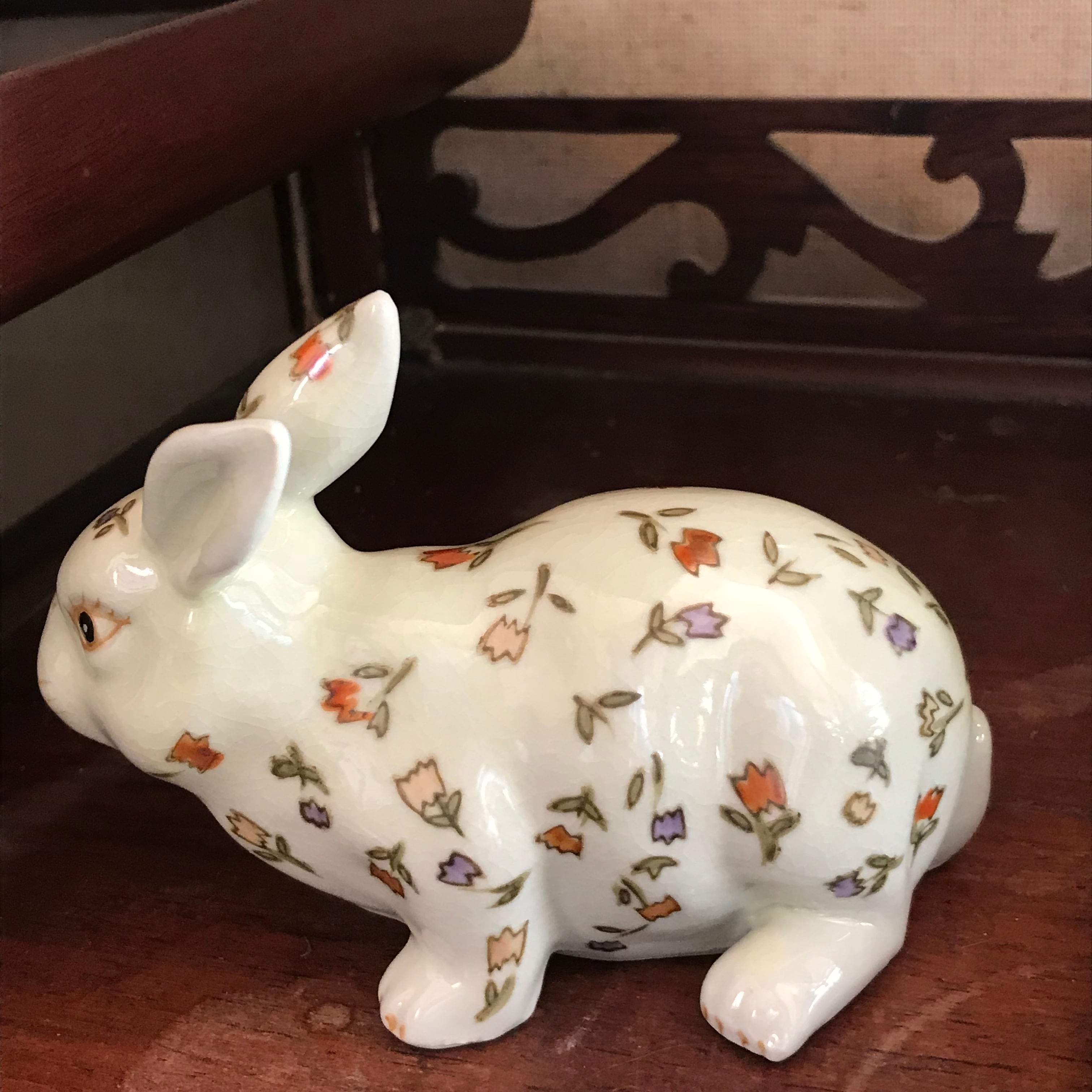 再入荷【シノワズリ】花柄うさぎのオブジェ 小