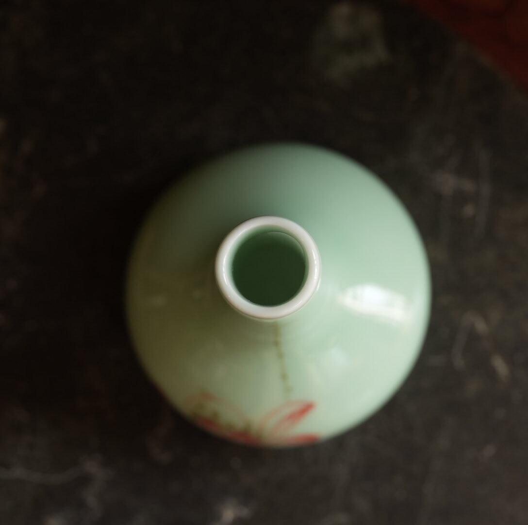 【再入荷】手描きの蓮の花 一輪挿し 龍泉 天球瓶 シノワズリ