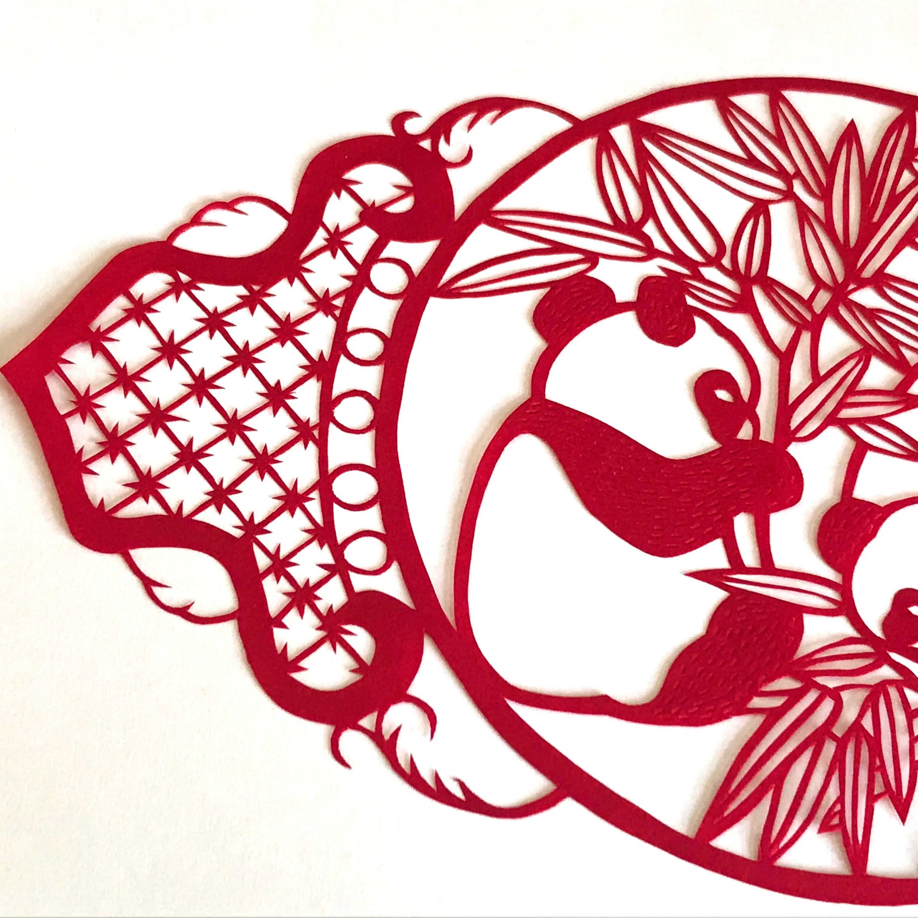 職人さんの【切絵】パンダ 仲良く笹ごはん