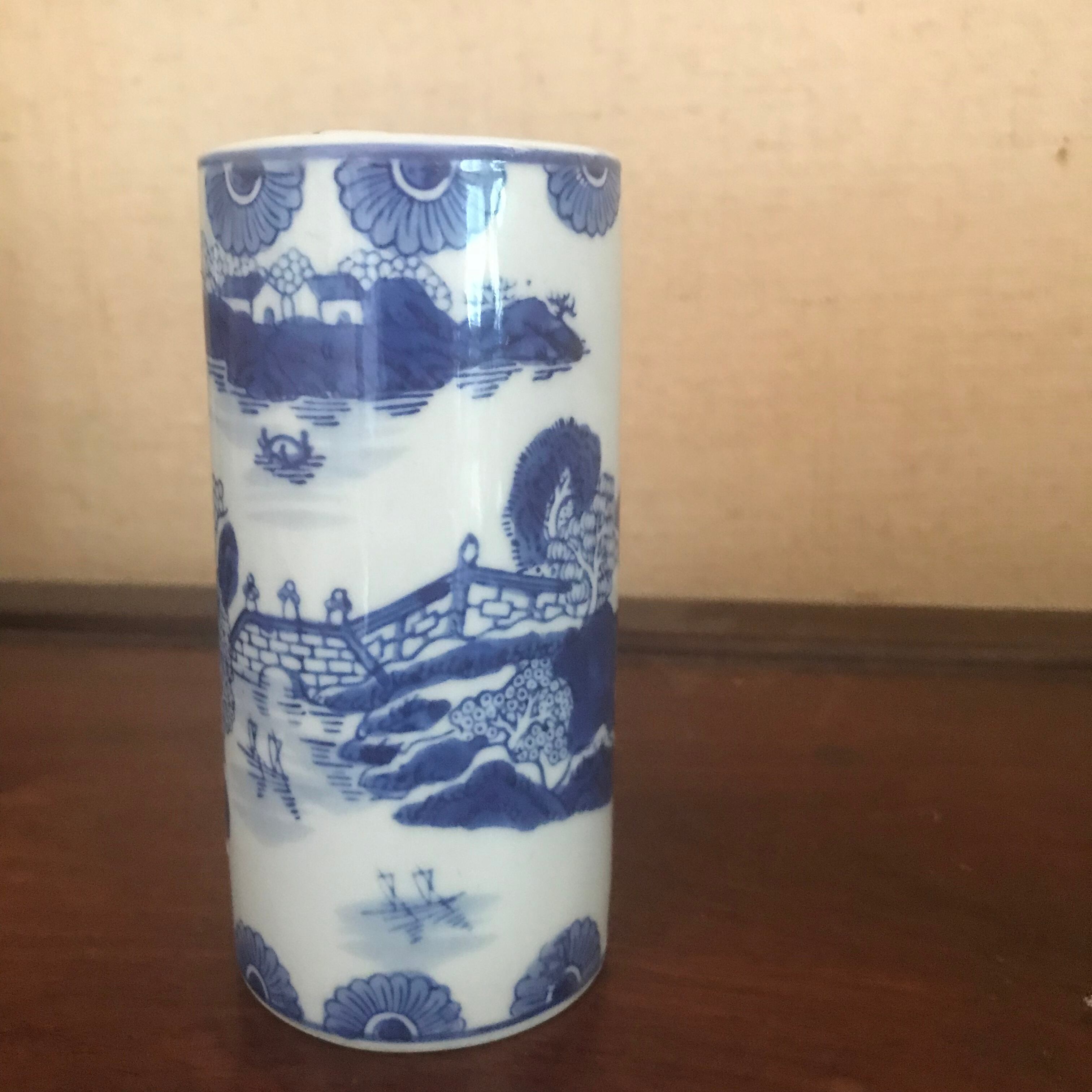【シノワズリ】藍色が美しい 筆筒/一輪挿し