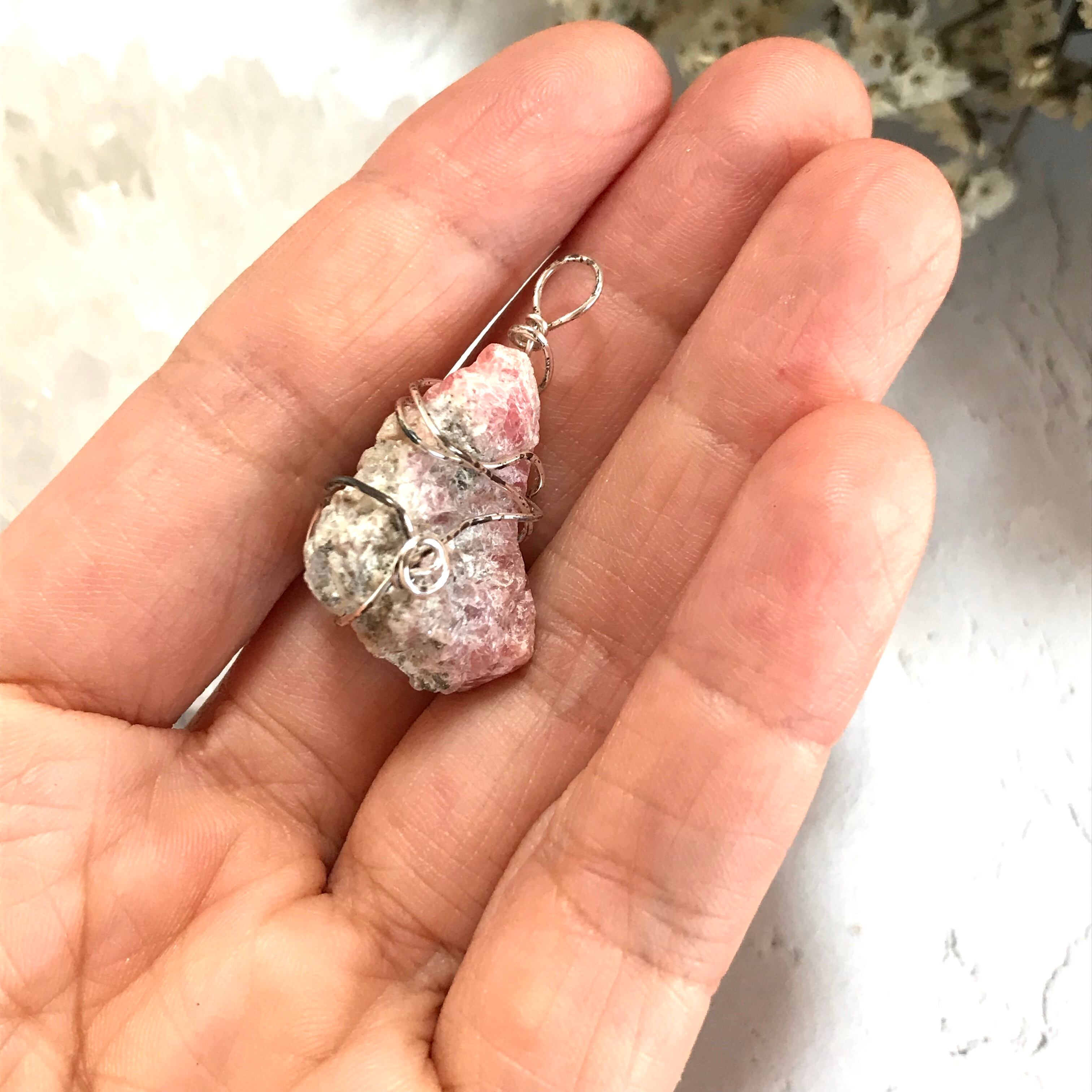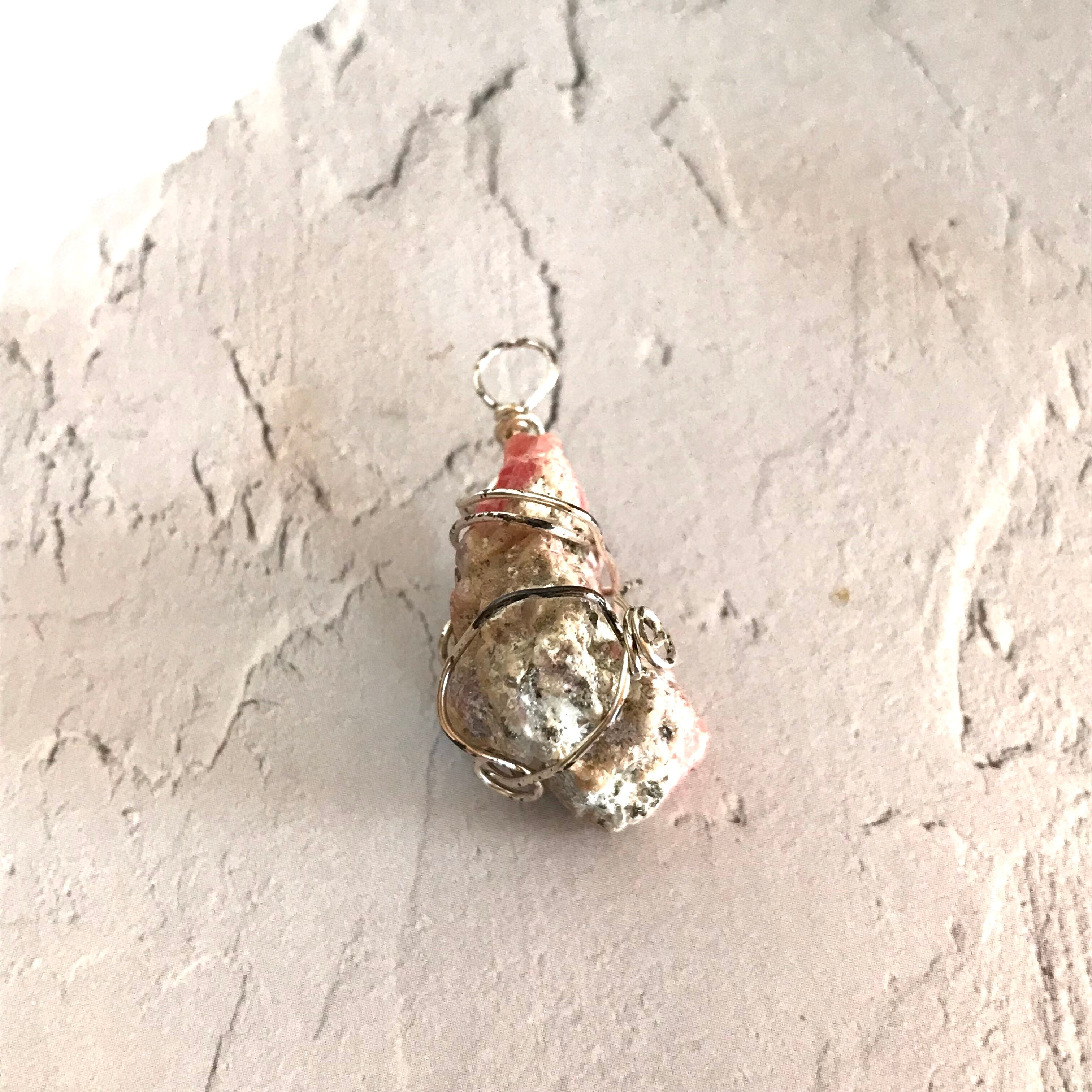 原石に近い状態のため、ピンク色の部分とグレーの石とが混在しています。