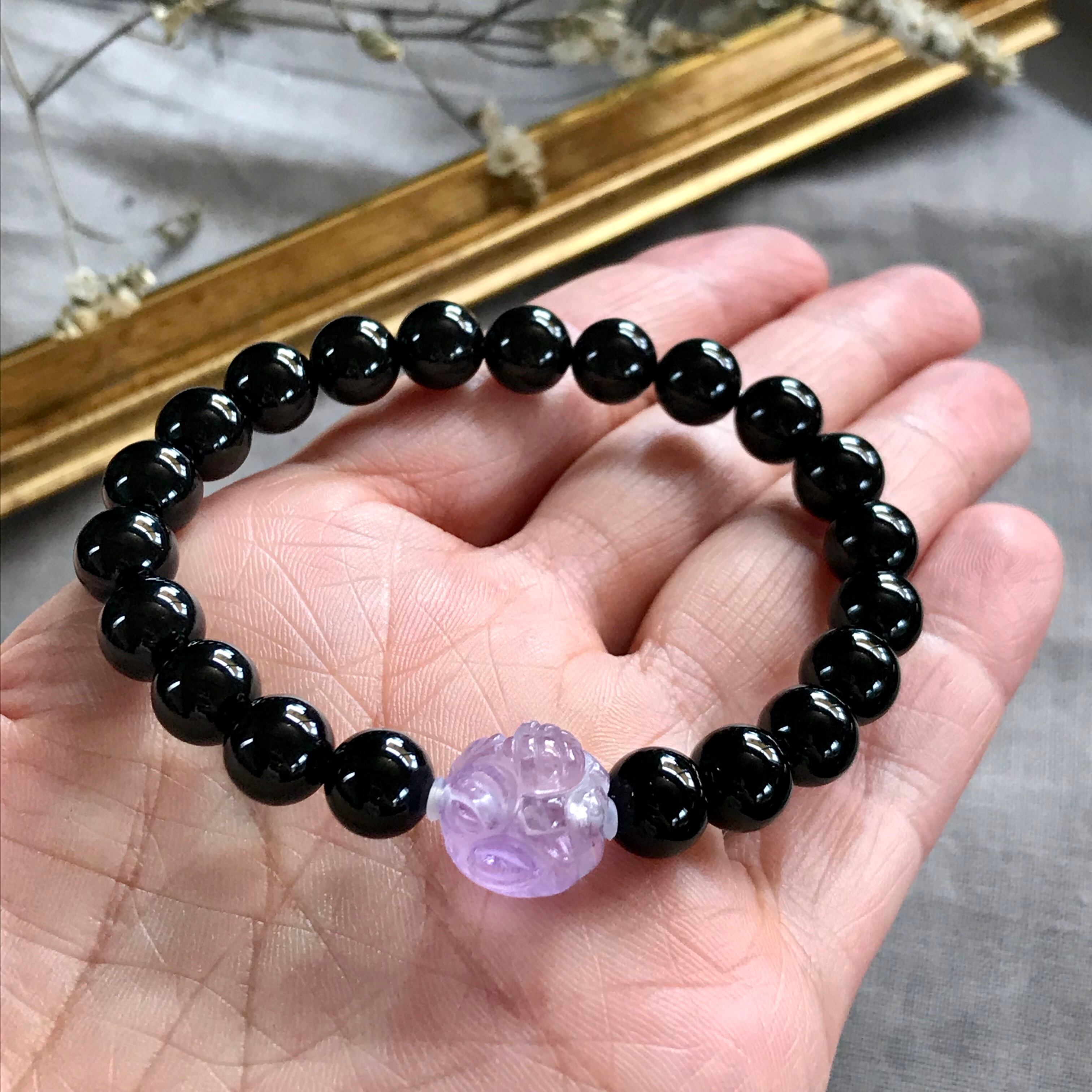 ザンビア産の美しいアメジストとオニキスを組み合わせたブレスレットです。