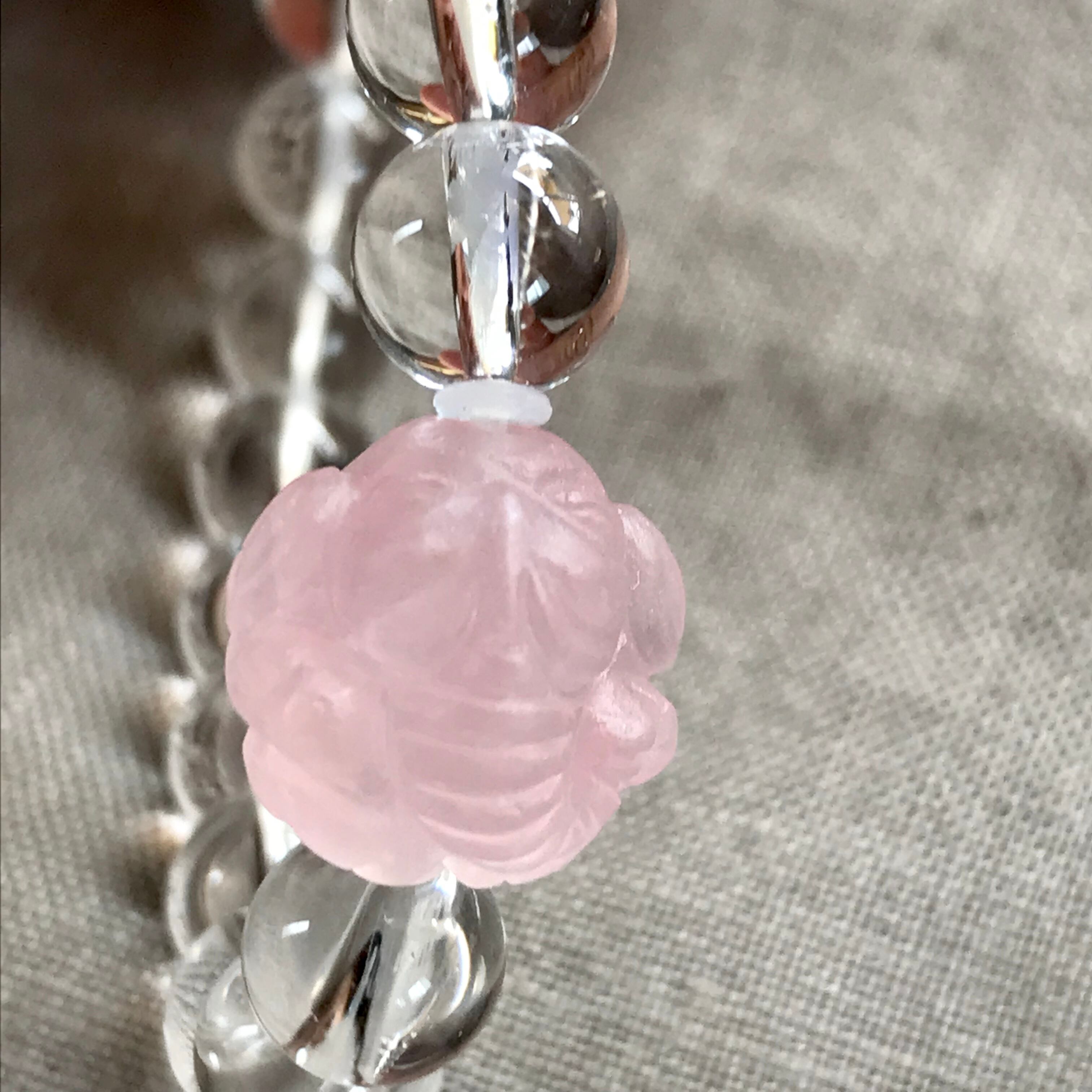 福の神さま!ガネーシャ ローズクォーツ/水晶ブレスレット フロスト