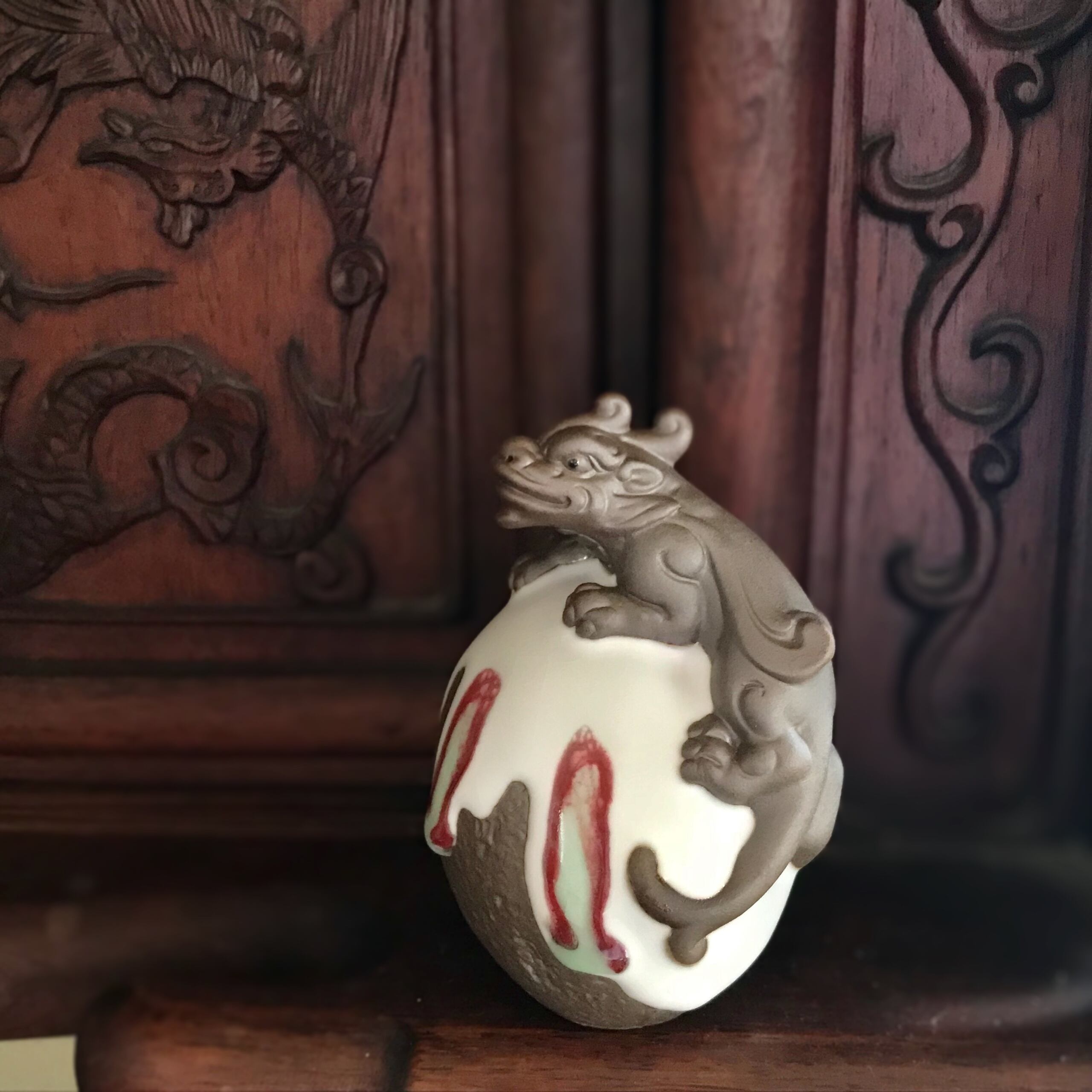 貔貅が丸い卵のようなオブジェに登っている様子がとてもユニークでもあります。