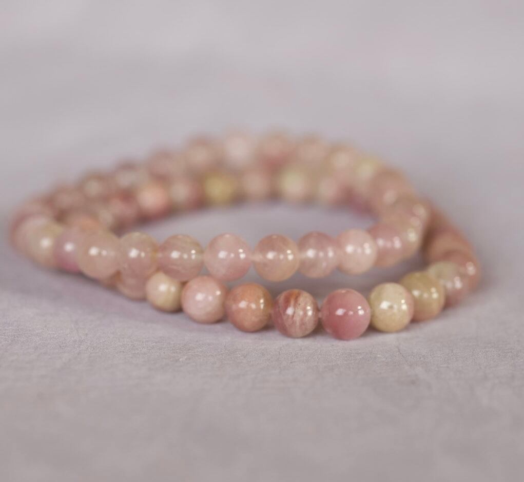 淡く柔らかなピンク、緑で形成されているウォーターメロントルマリンのブレスレット。
