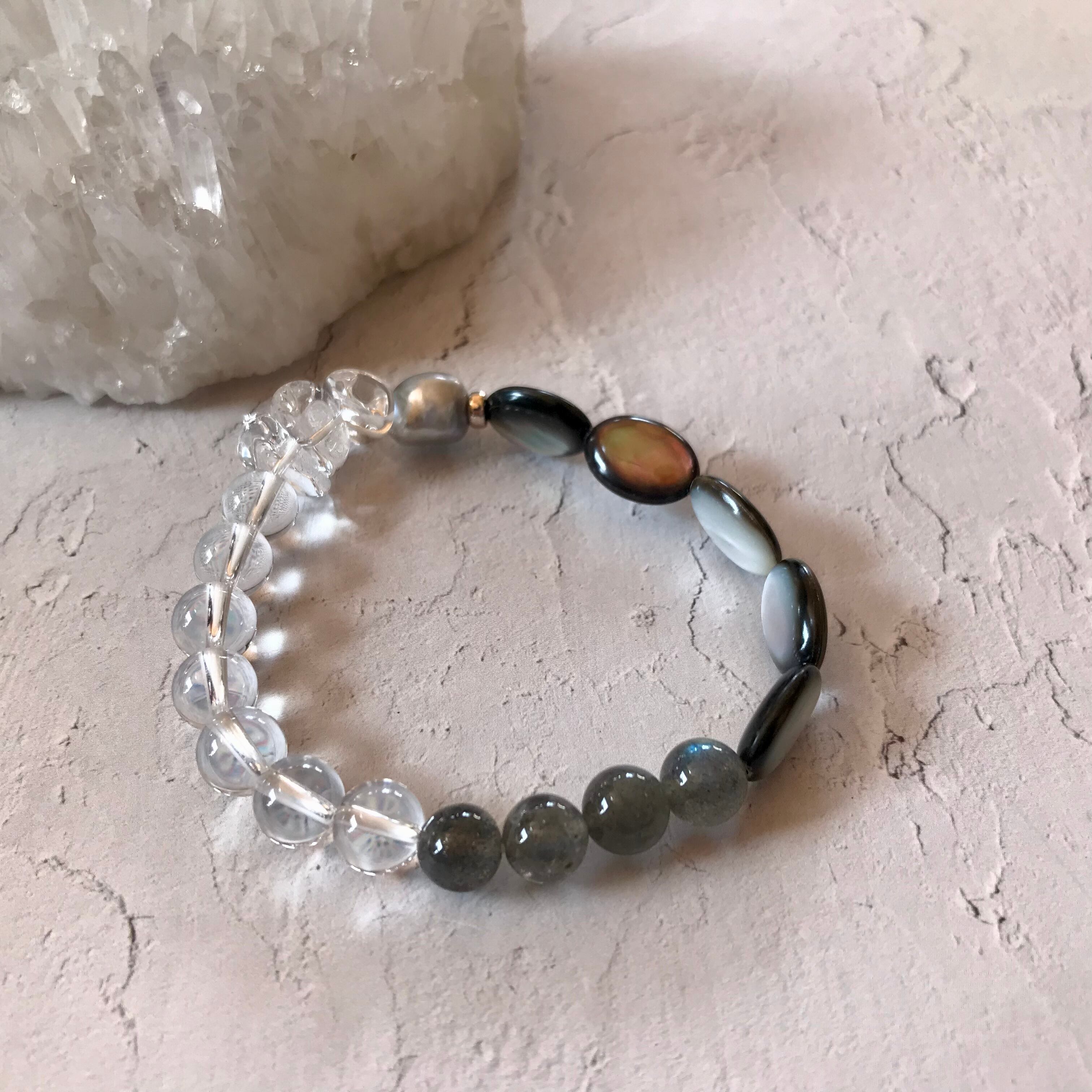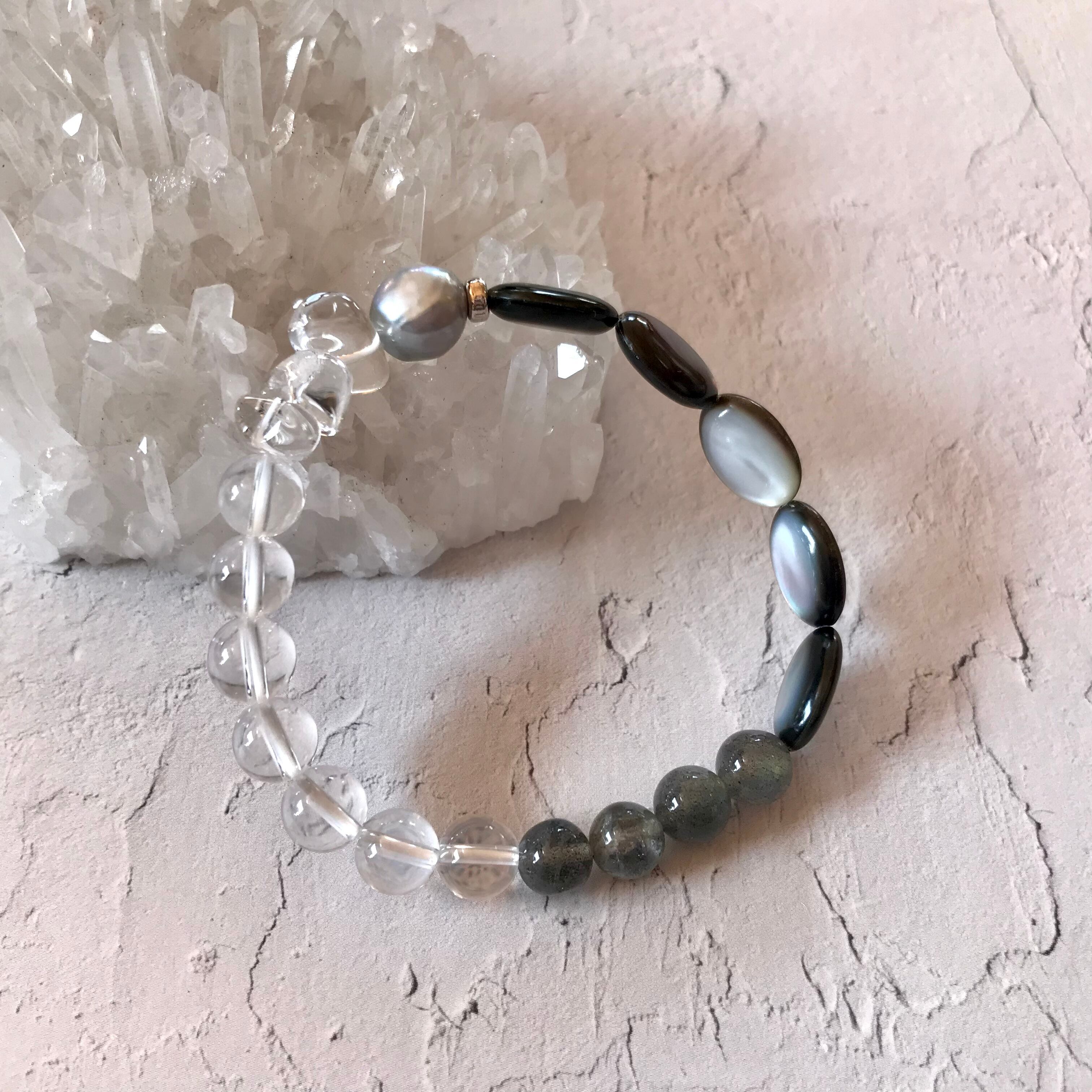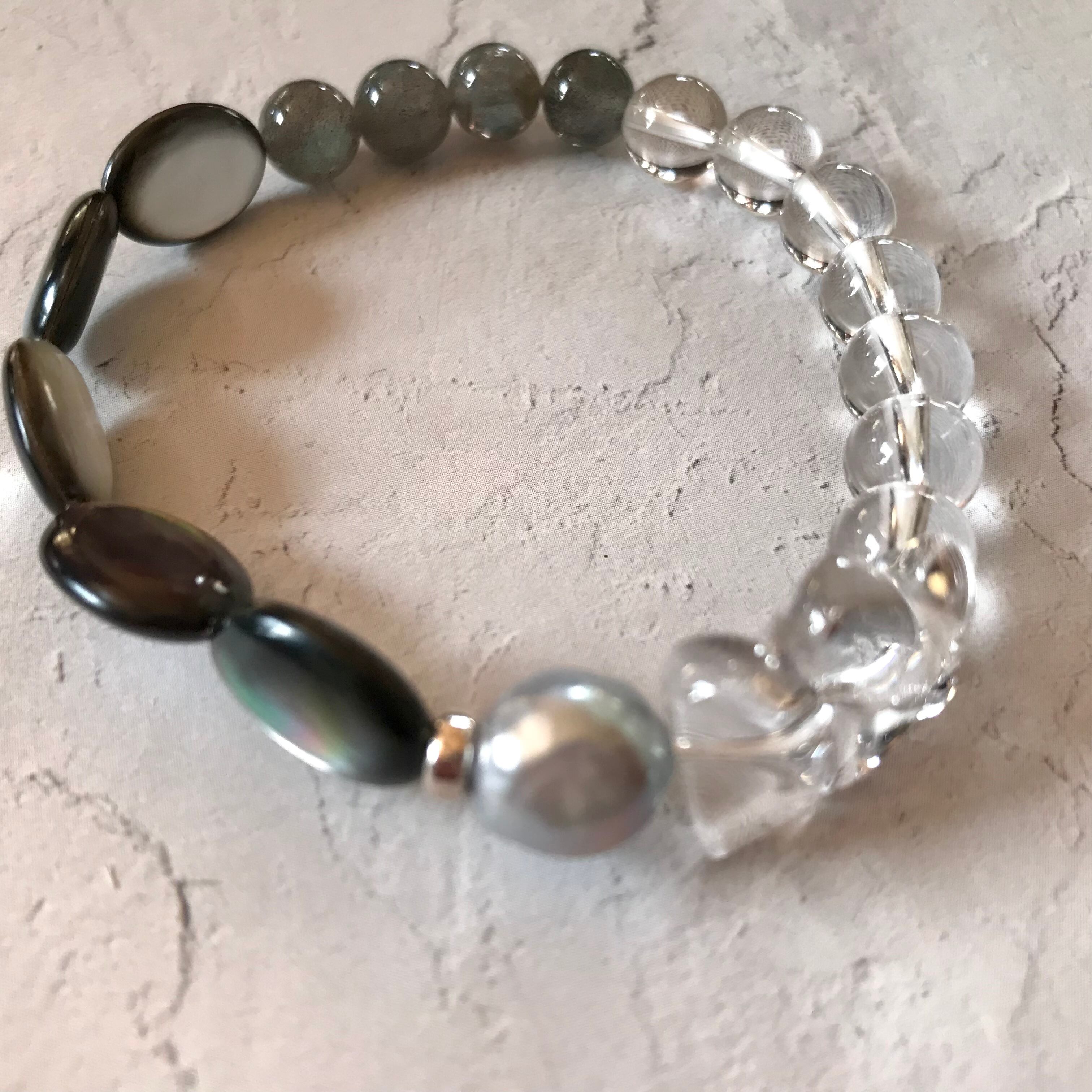 クォーツ/ラブラドライト/ブラックシェル/淡水パール ブレスレット