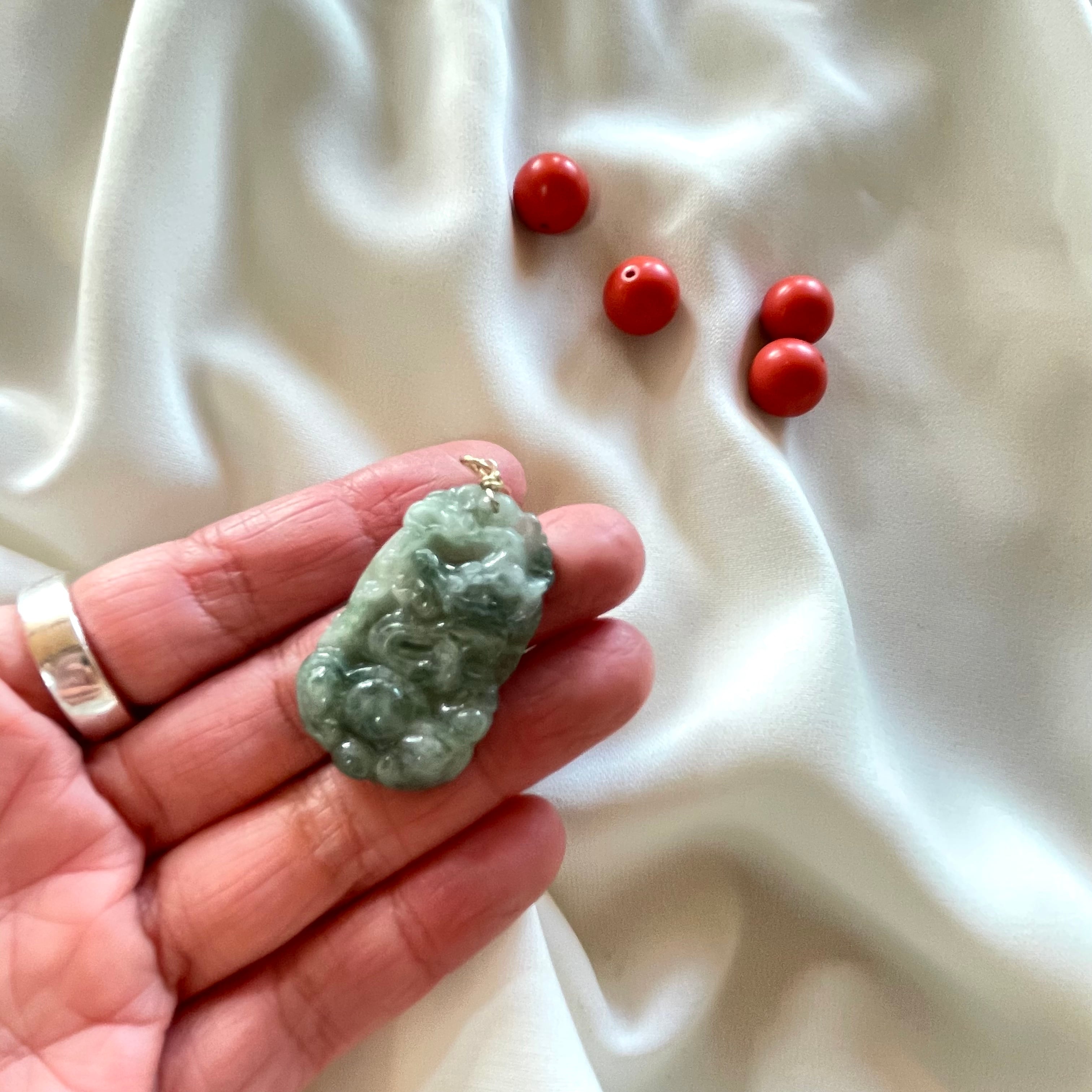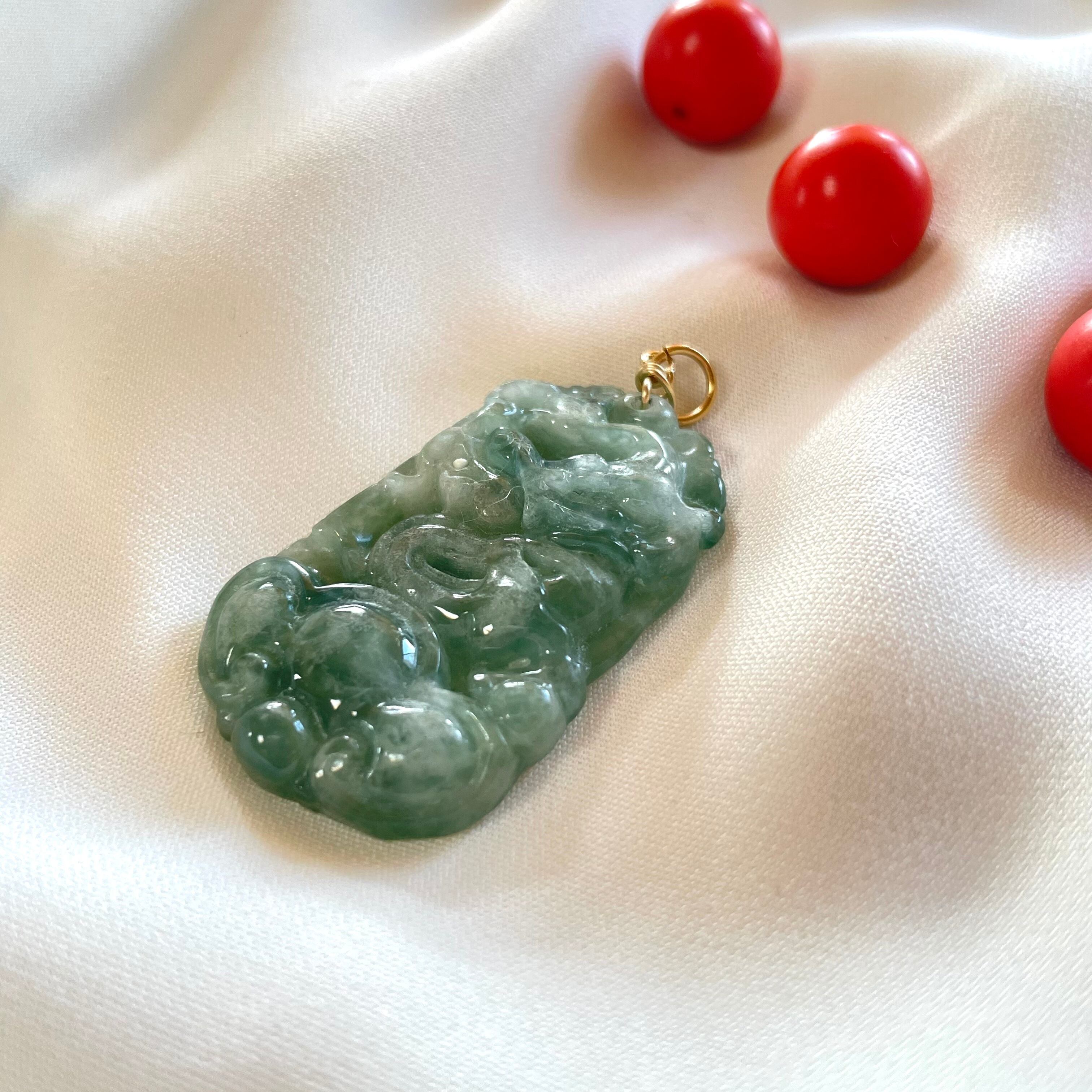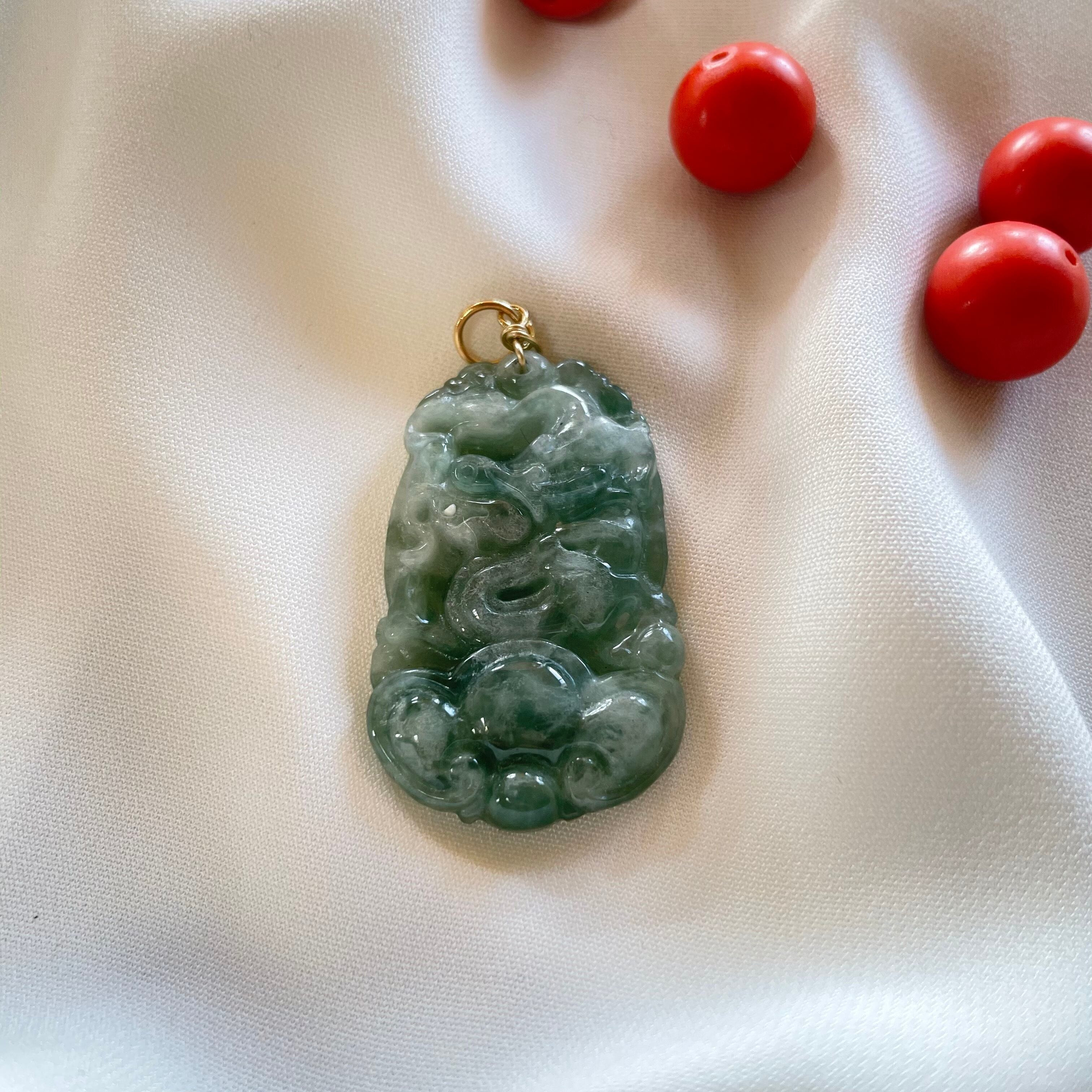 龍が立体的に彫刻された翡翠のペンダントトップです。