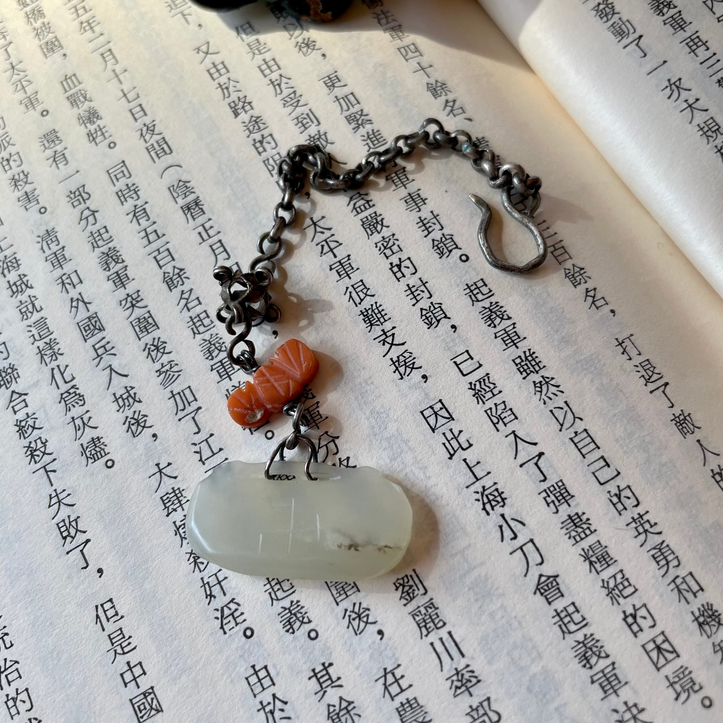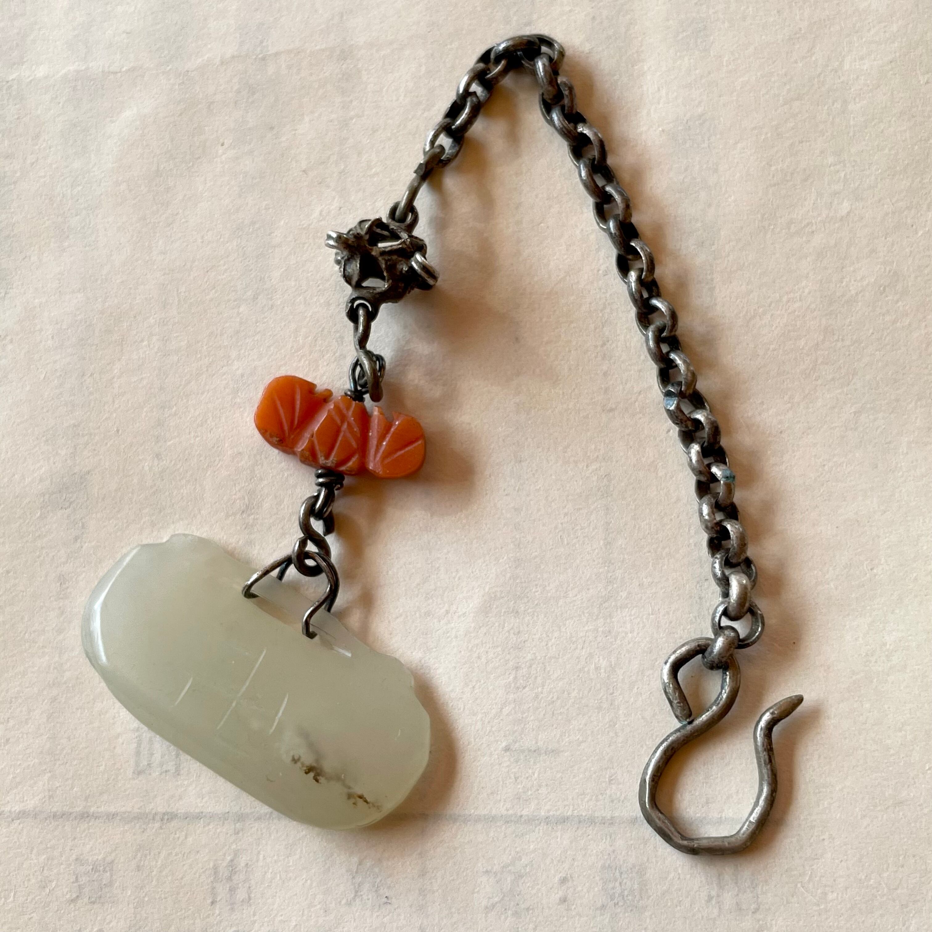 アンティーク 白玉(はくぎょく)と珊瑚の飾り