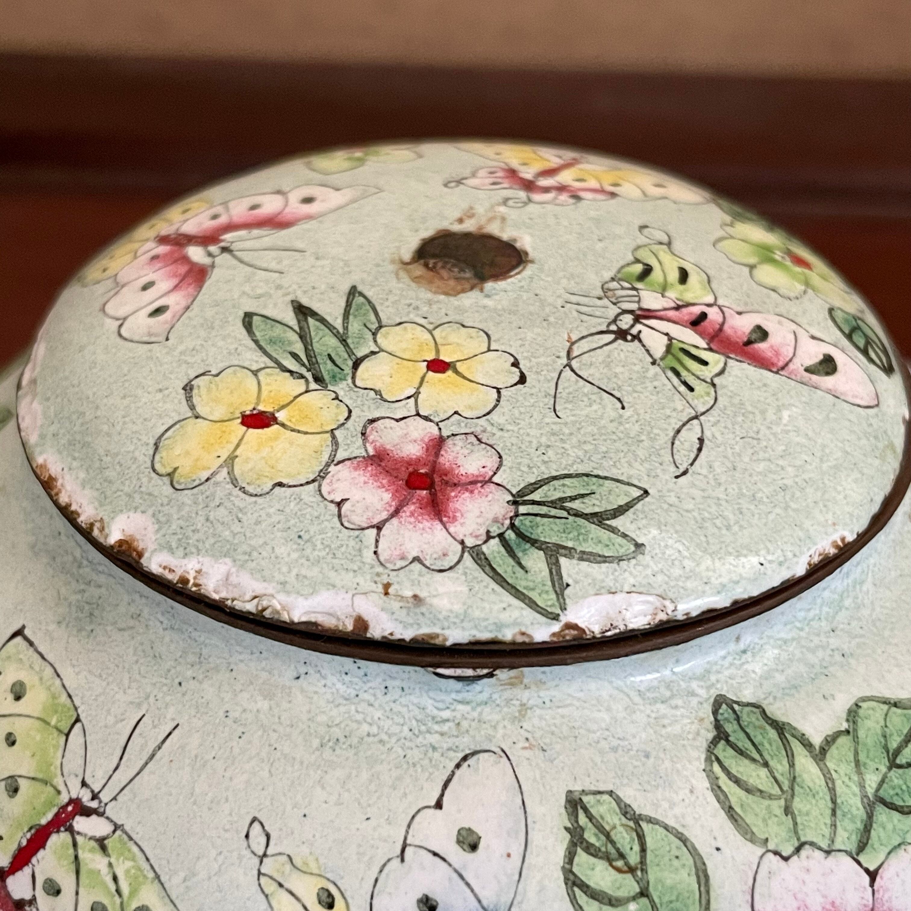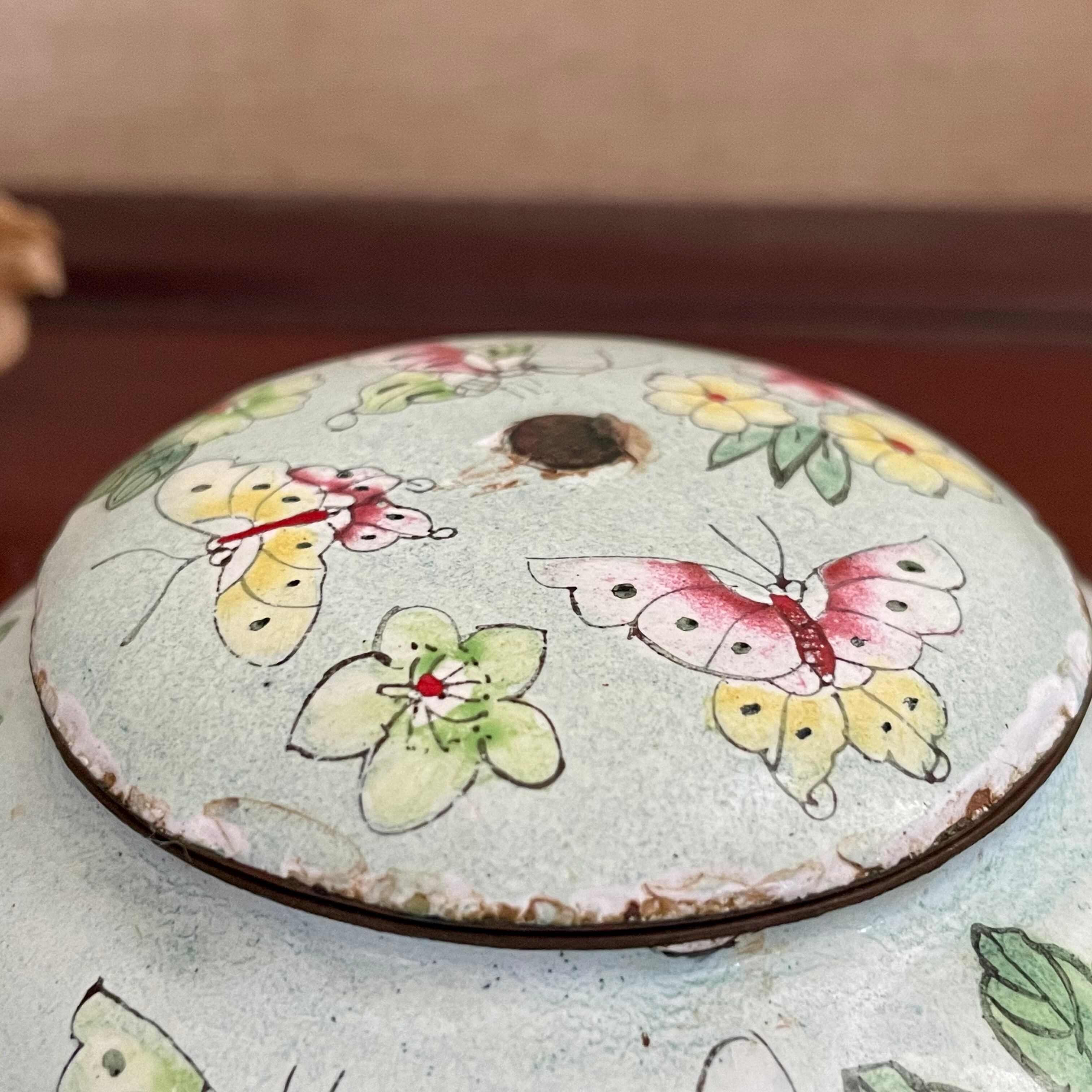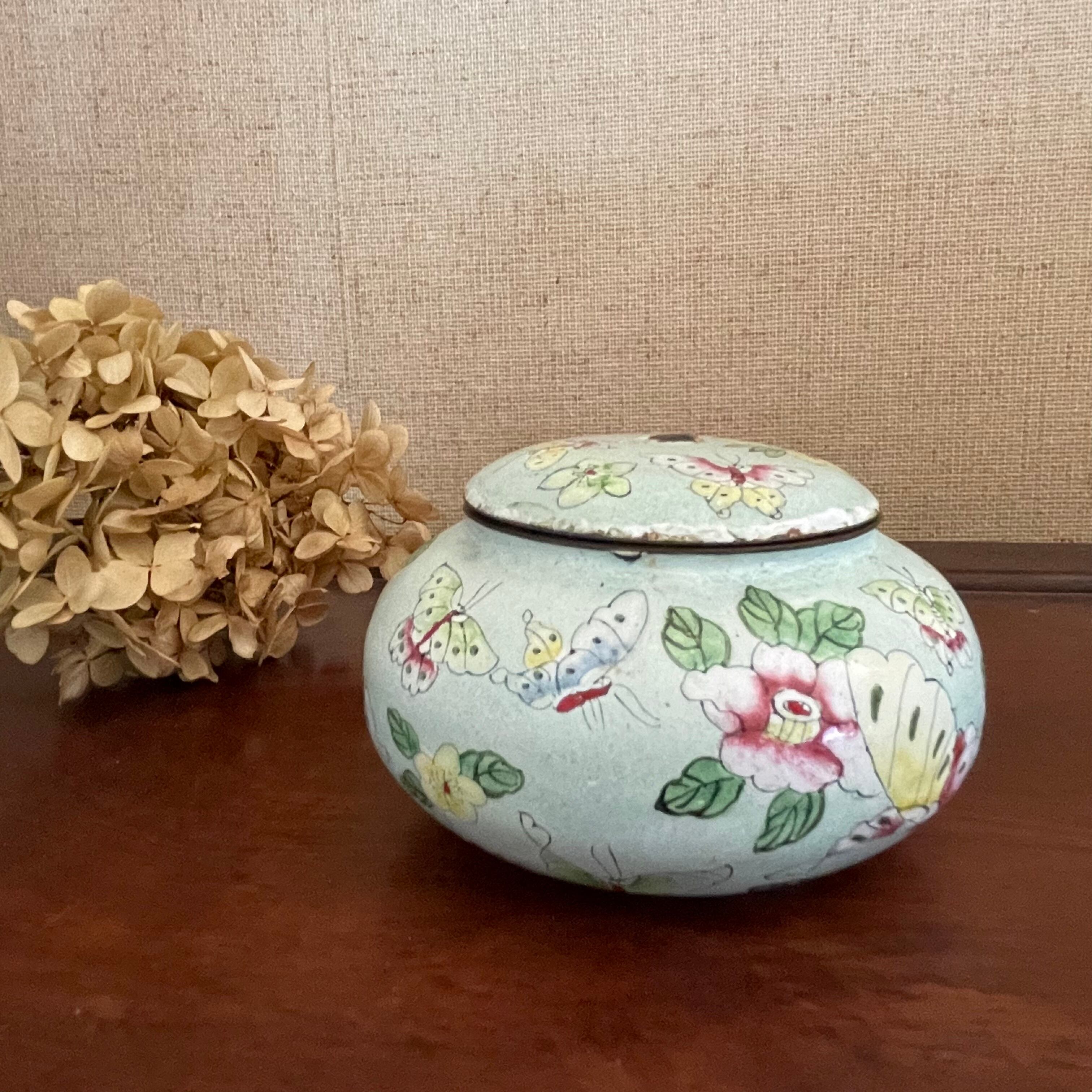 【シノワズリー】手描きちょうちょ柄 アンティーク 小物入れ