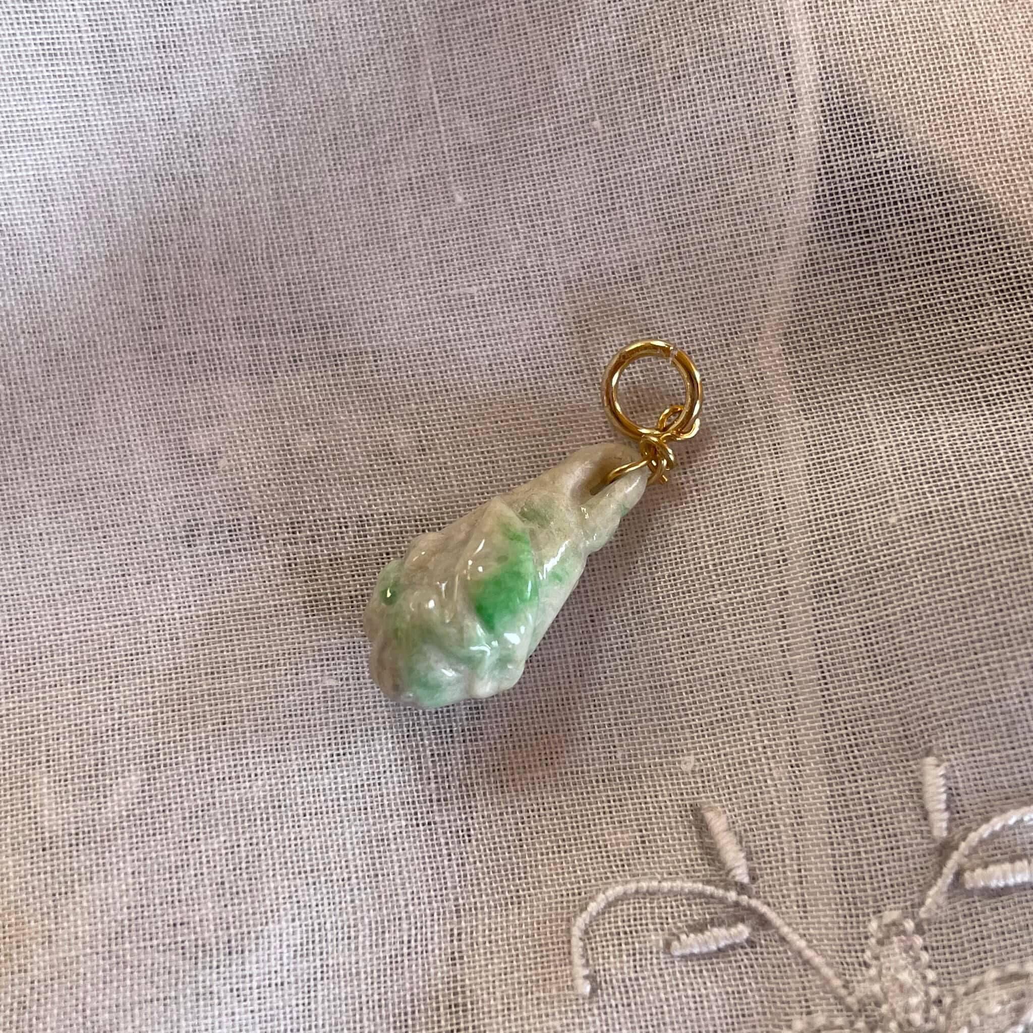 アンティーク翡翠 ペンダントトップ なみだ型 彫刻入り