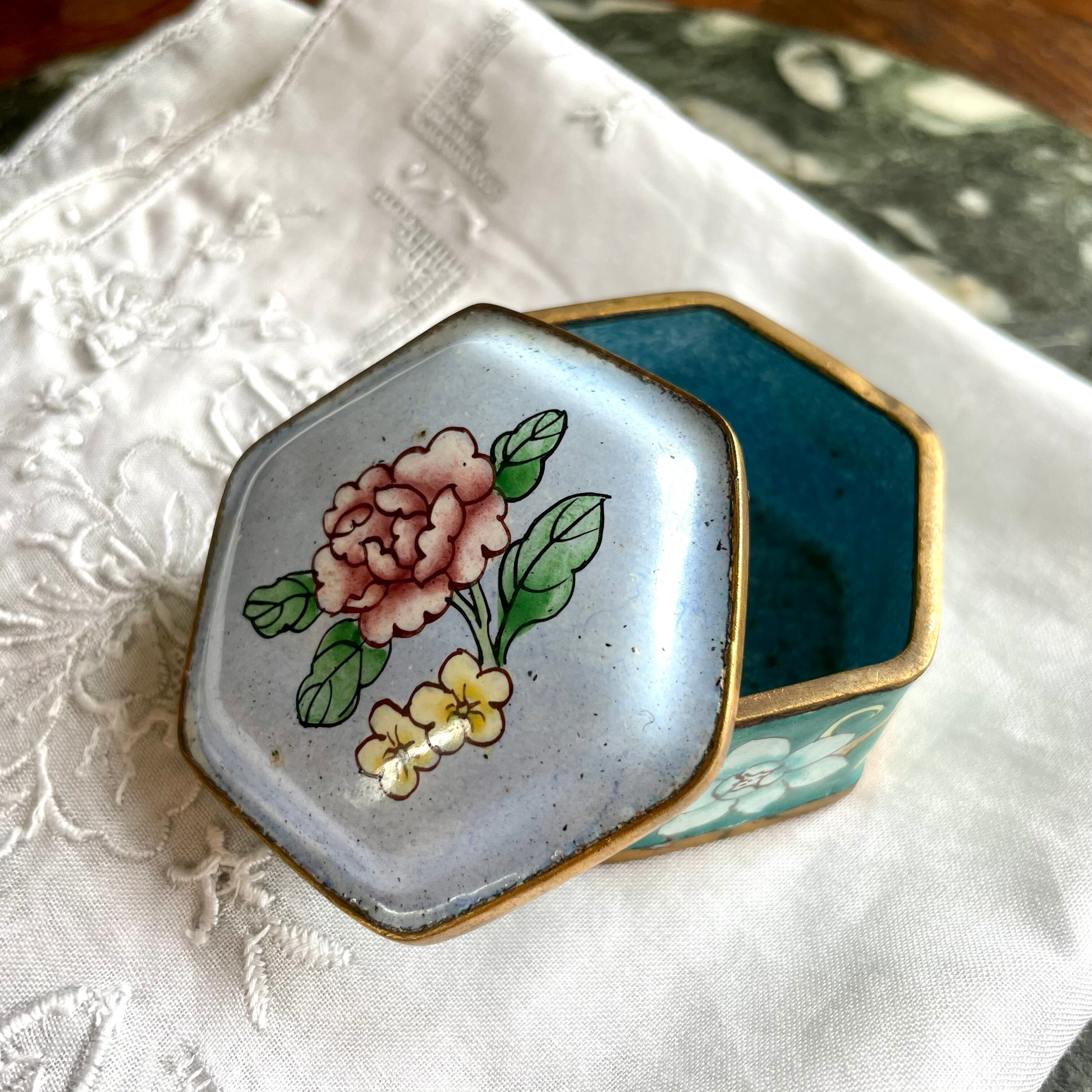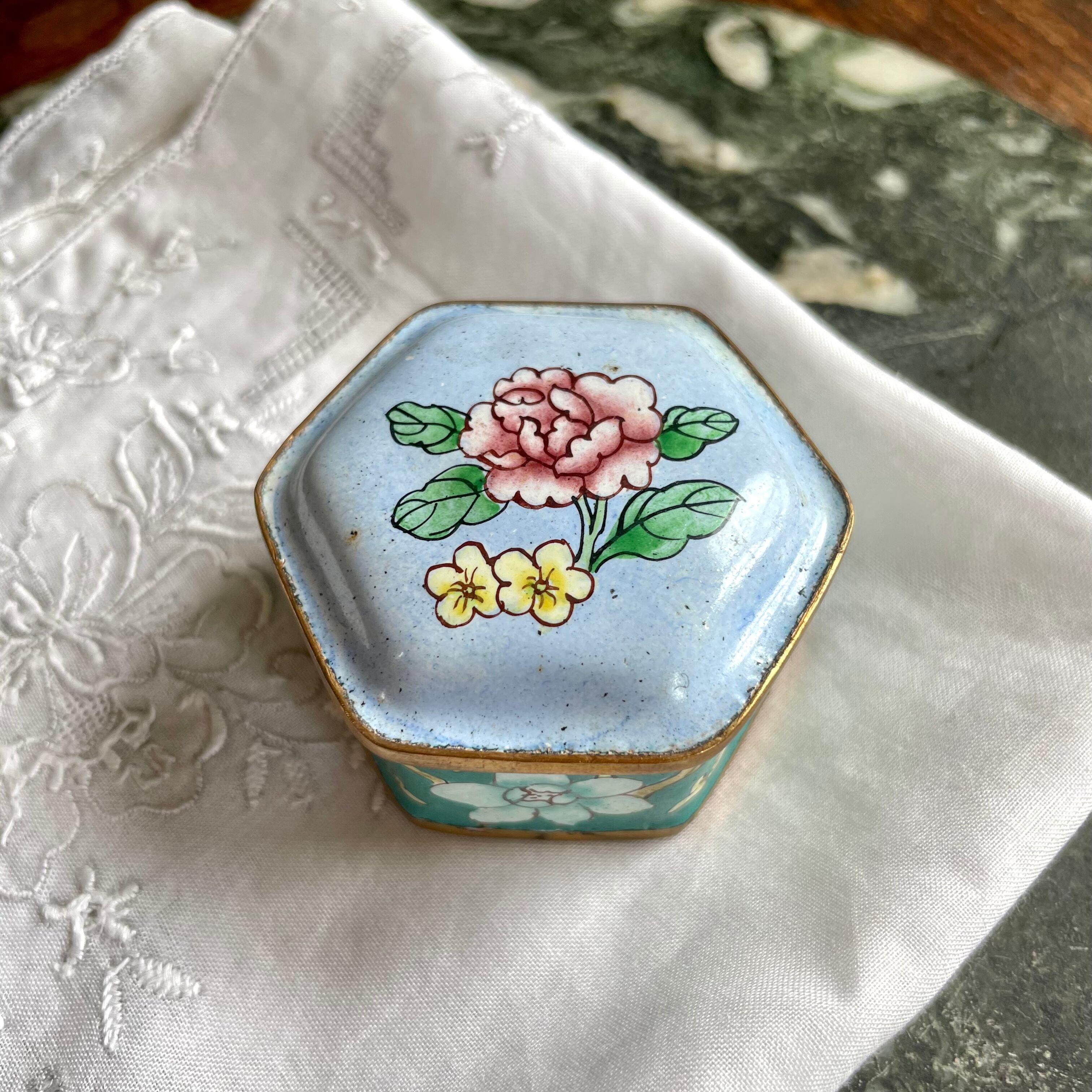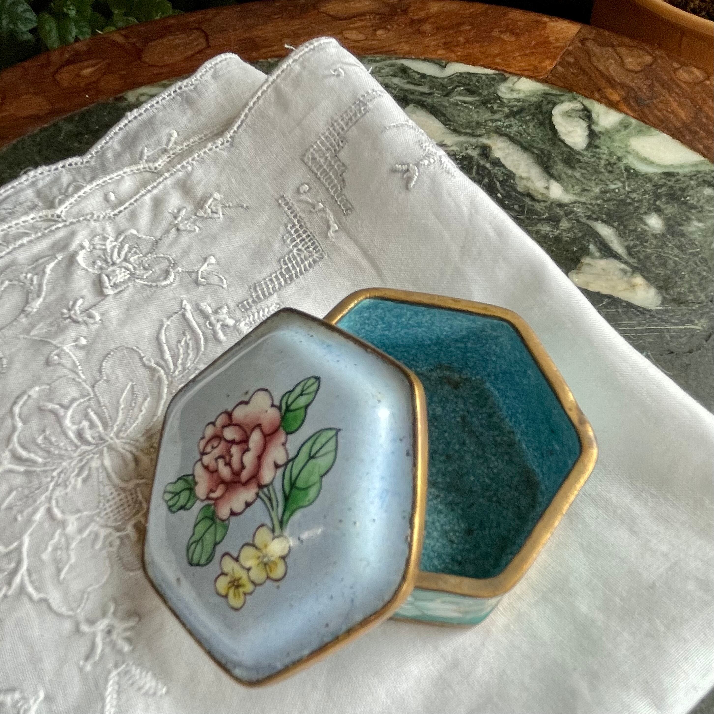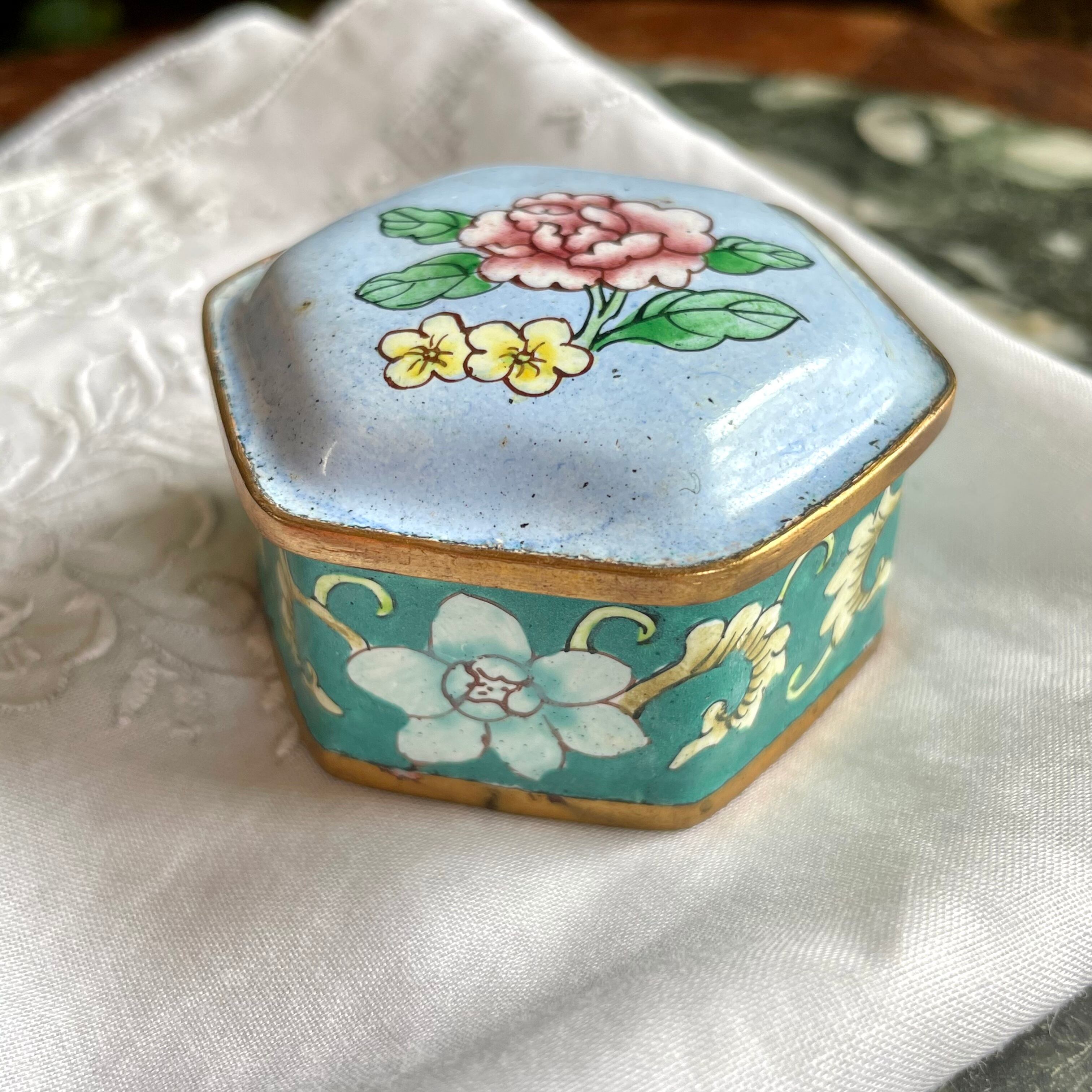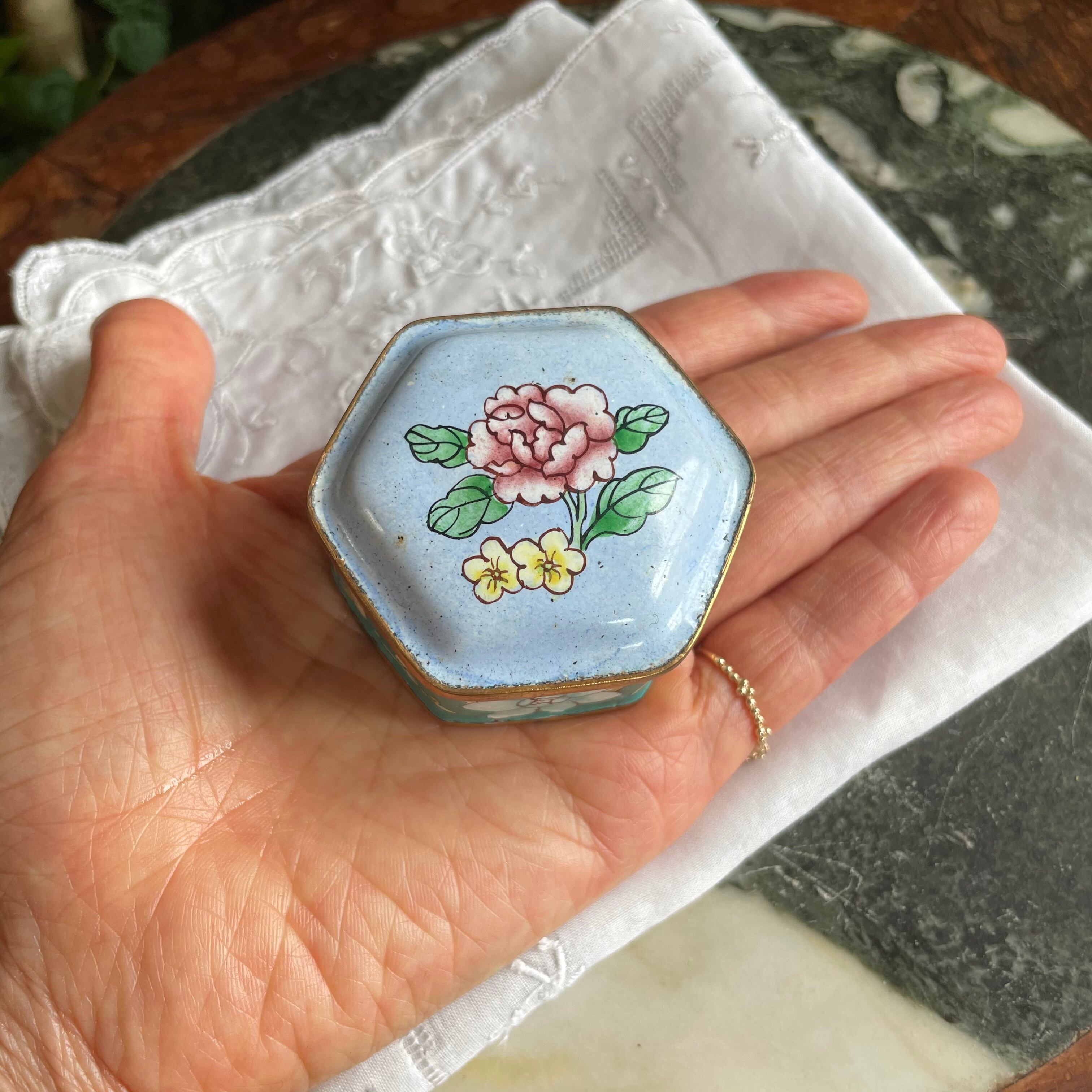 【シノワズリーアンティーク】手描きのお花 小さな小物入れ