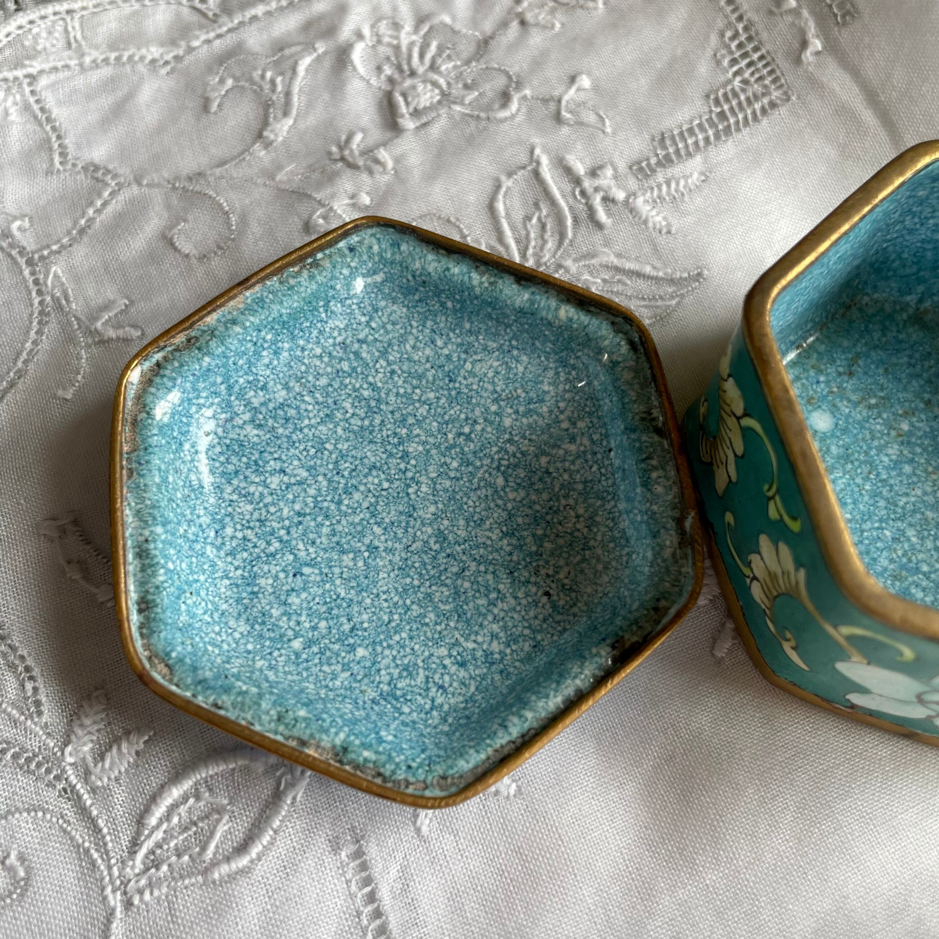 六角形がレトロ可愛らしいアンティークの小物入れです。