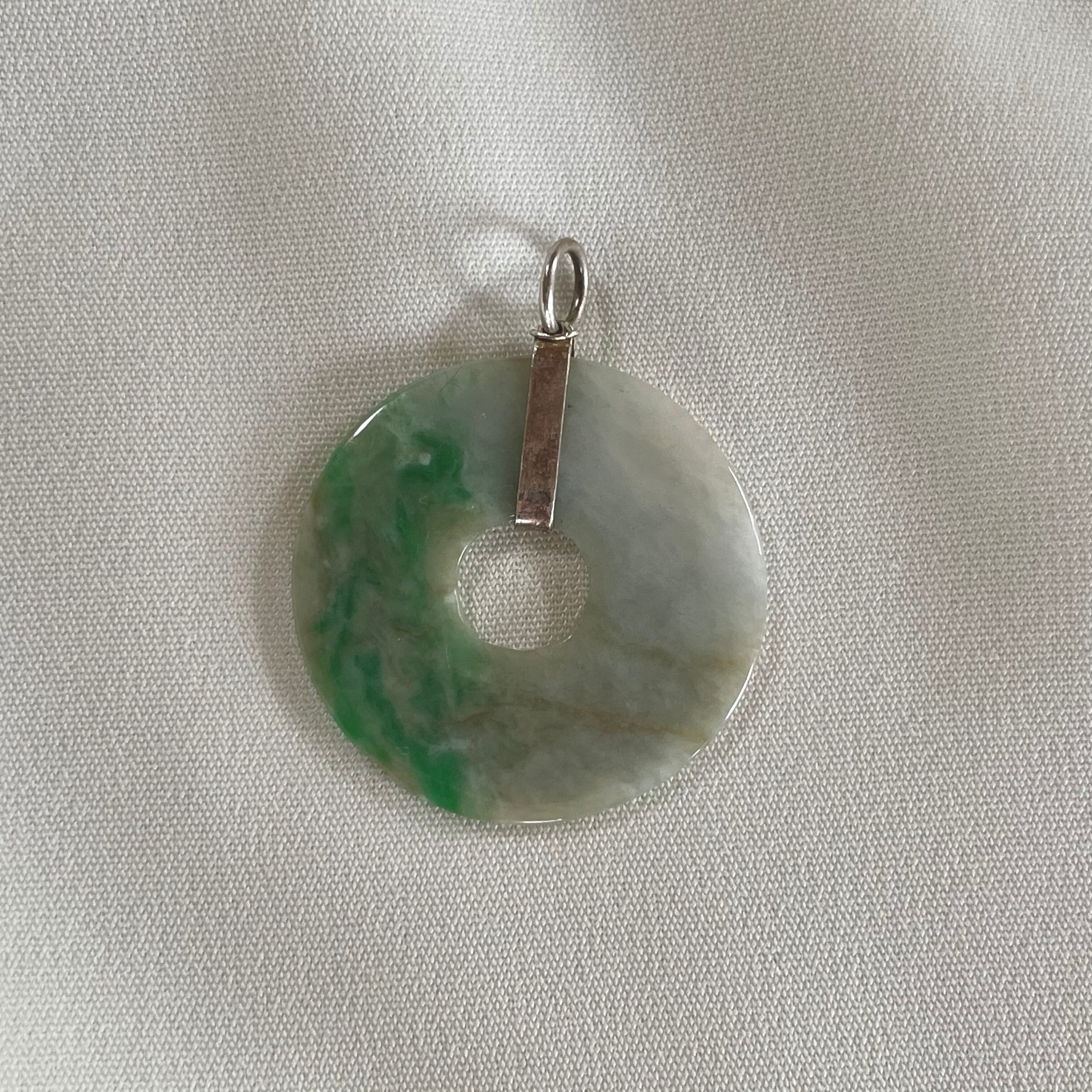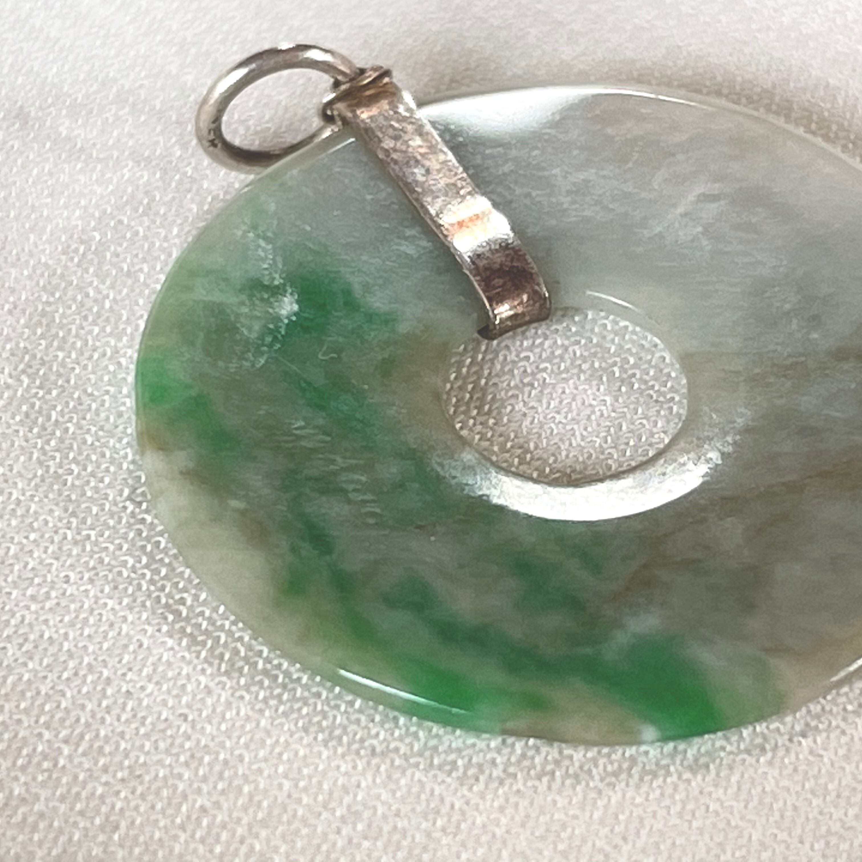 アンティーク翡翠 ペンダントトップ 丸型 深い緑入り