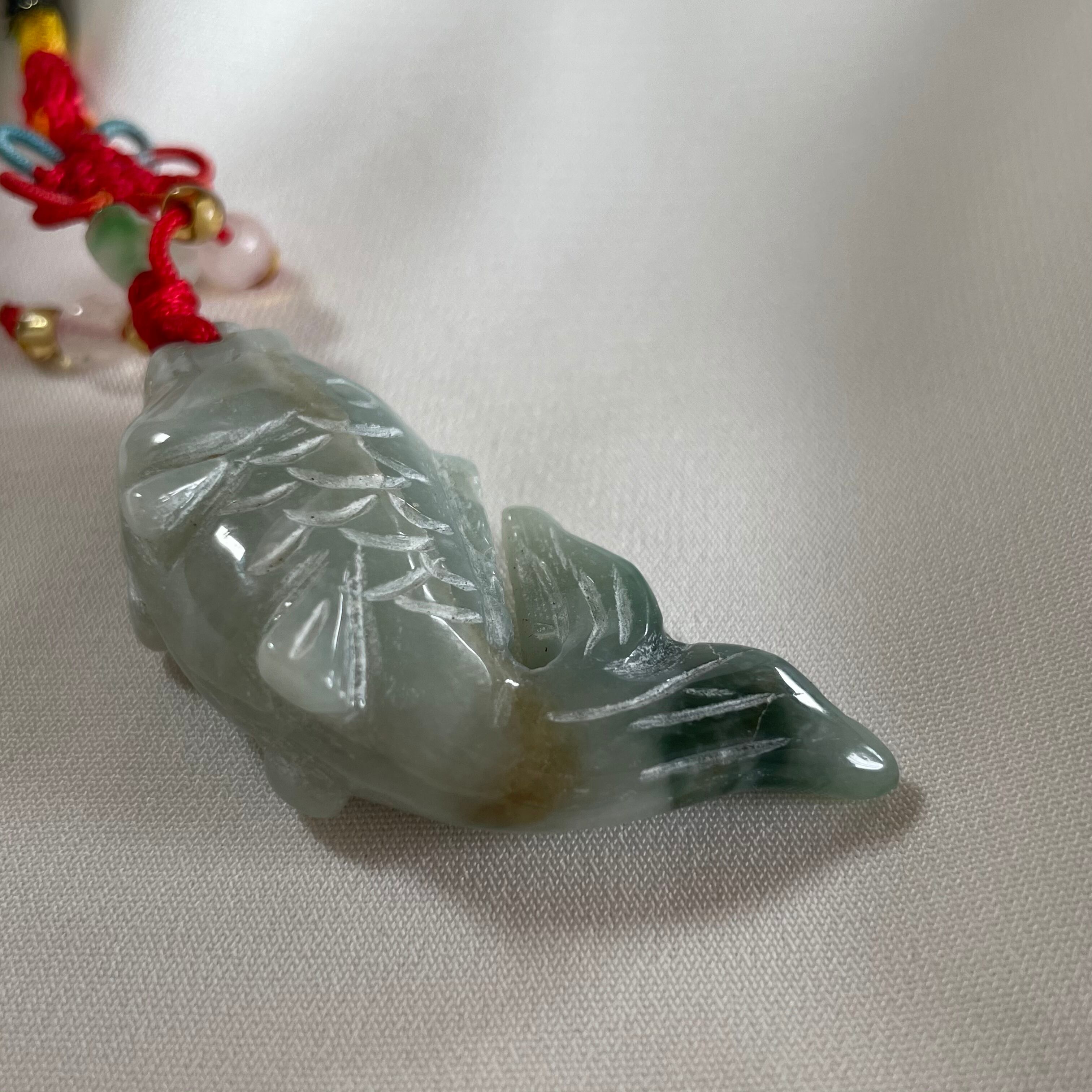 お買得!手彫り 縁起の良い鯉のチャーム 尾鰭が深い緑