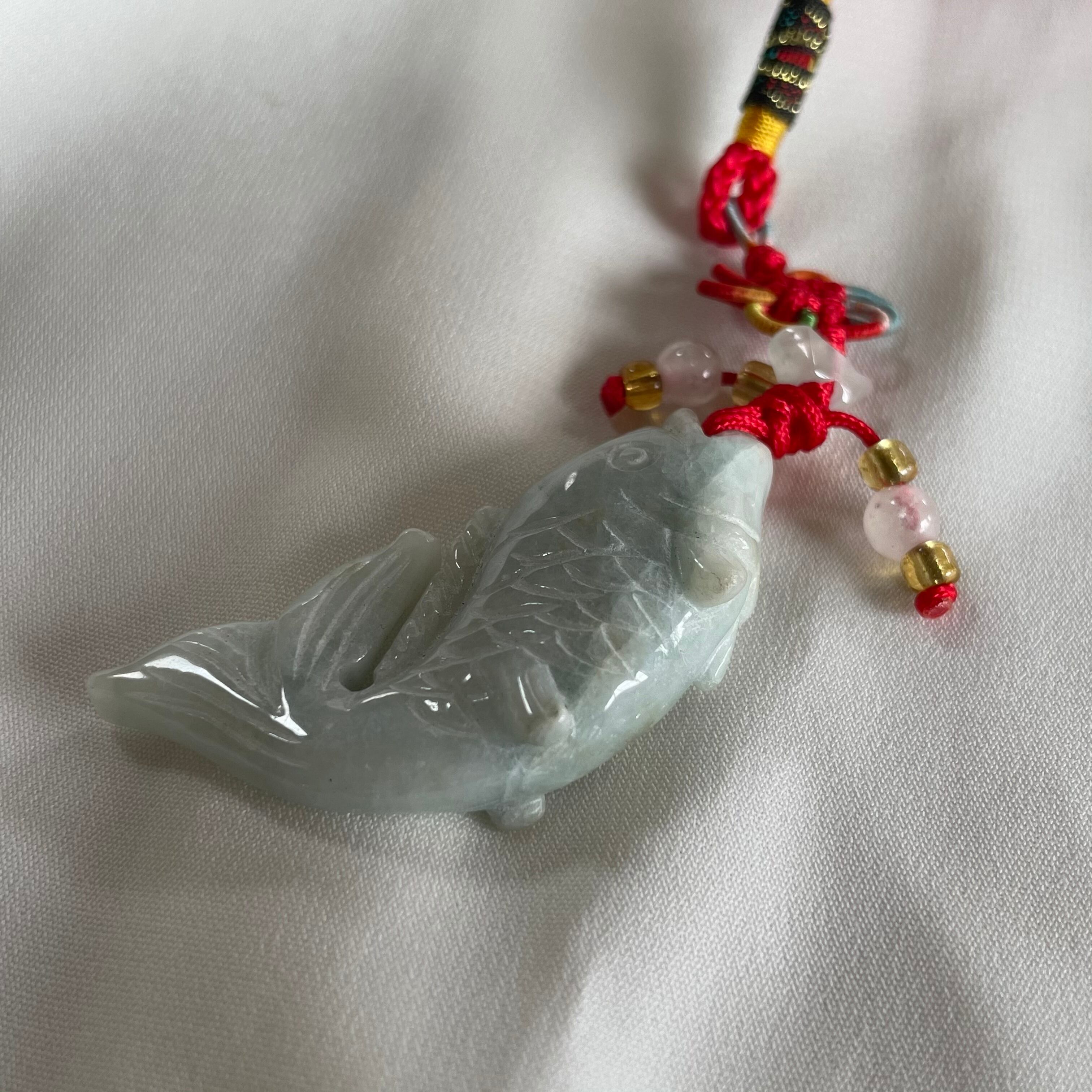 お買得!手彫り 縁起の良い鯉のチャーム 淡い色