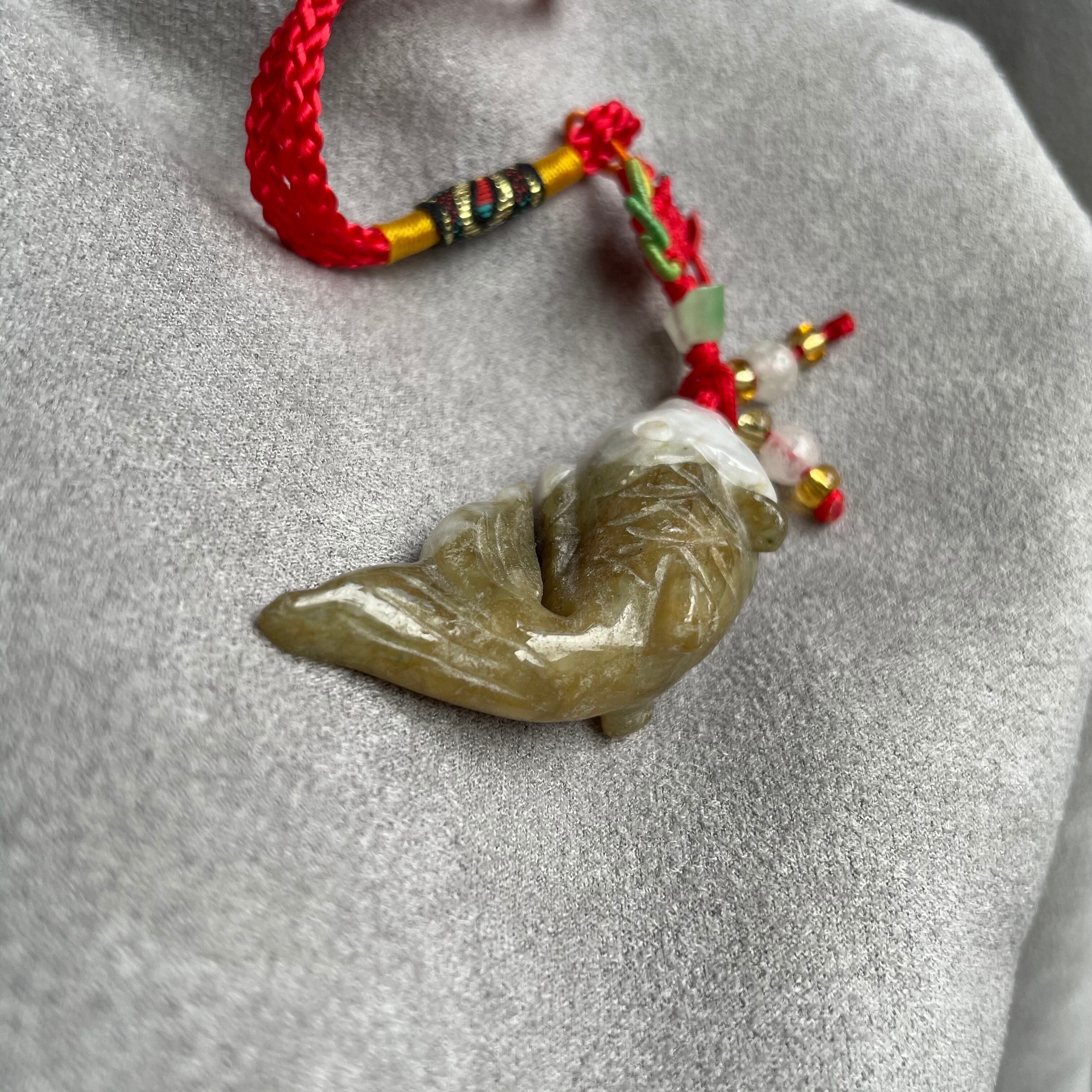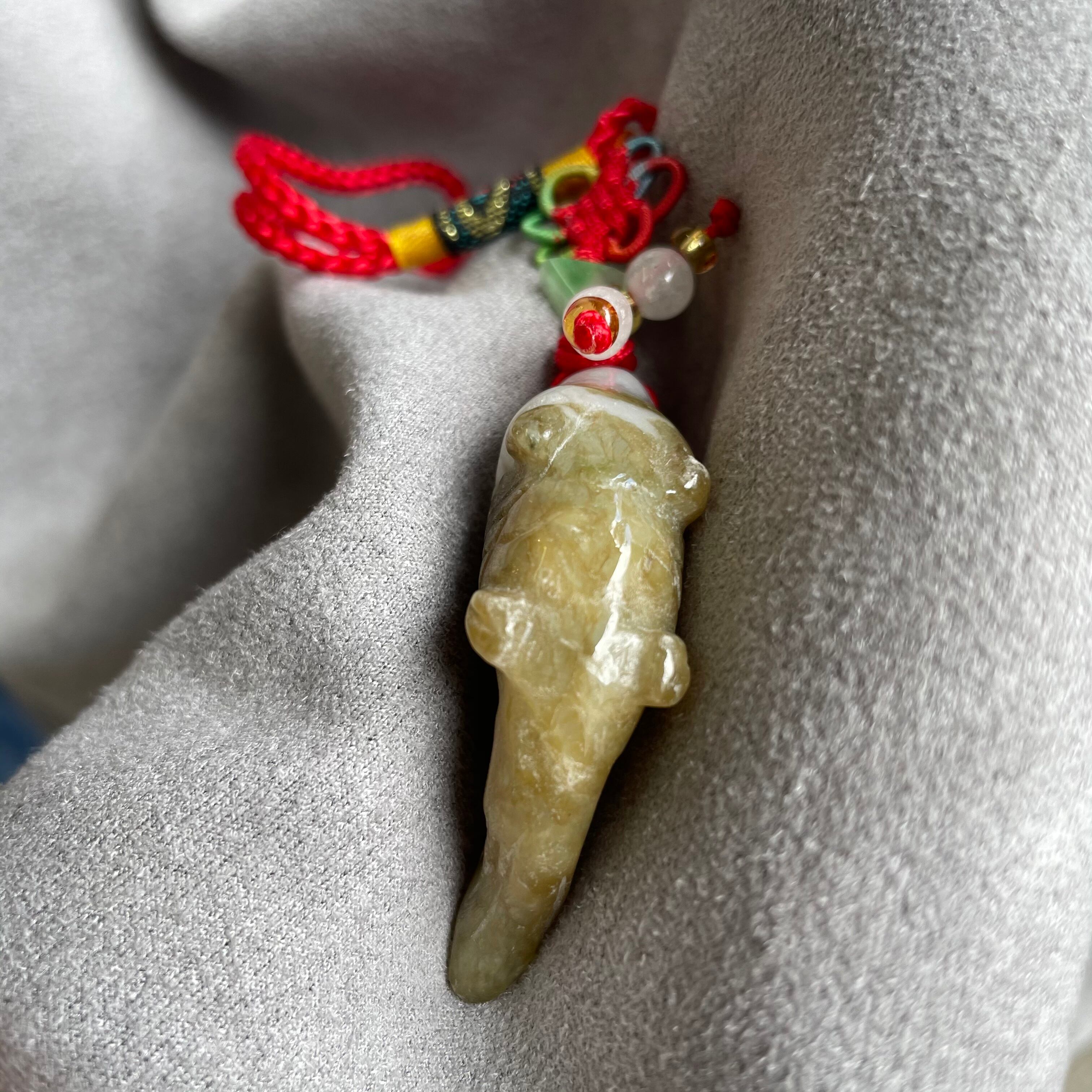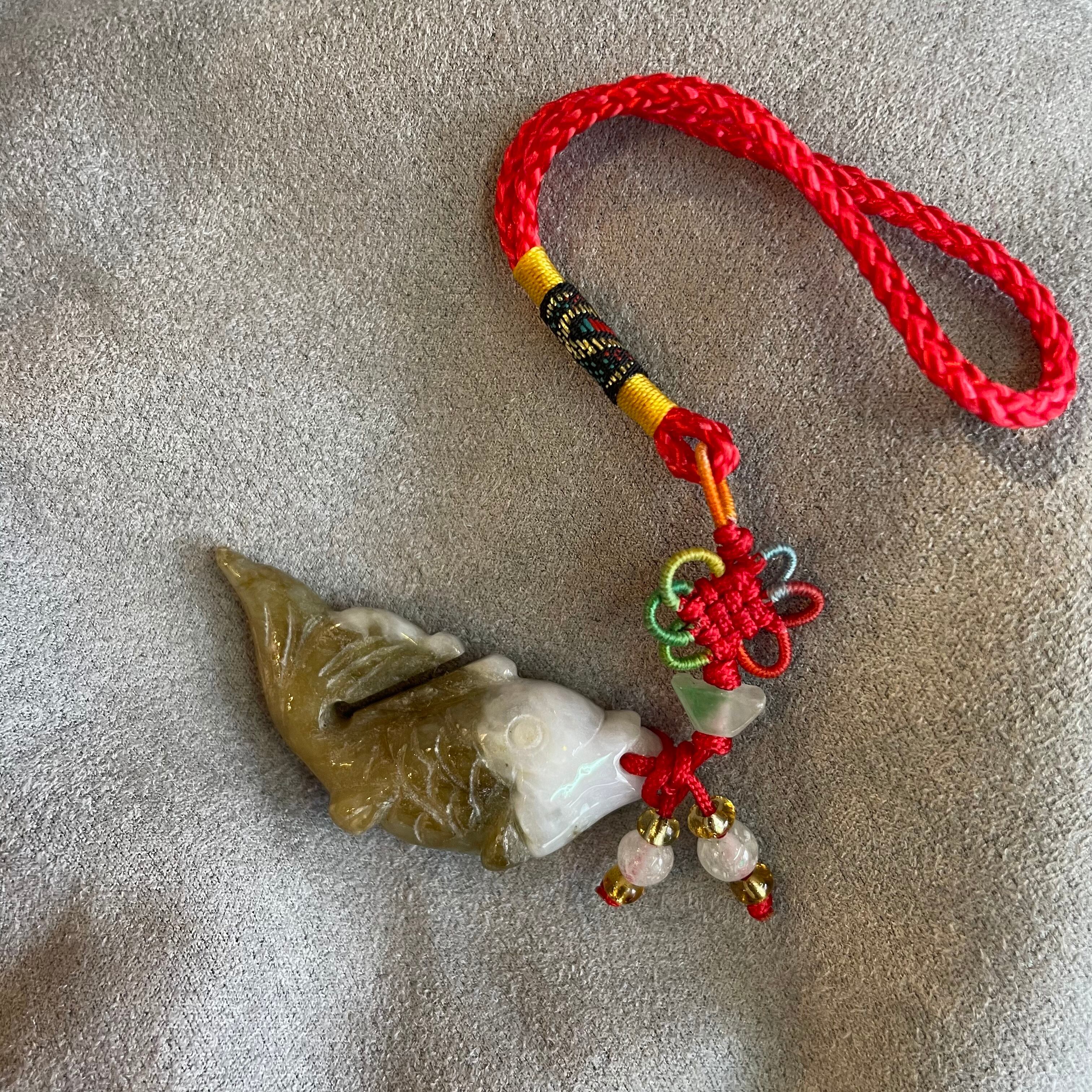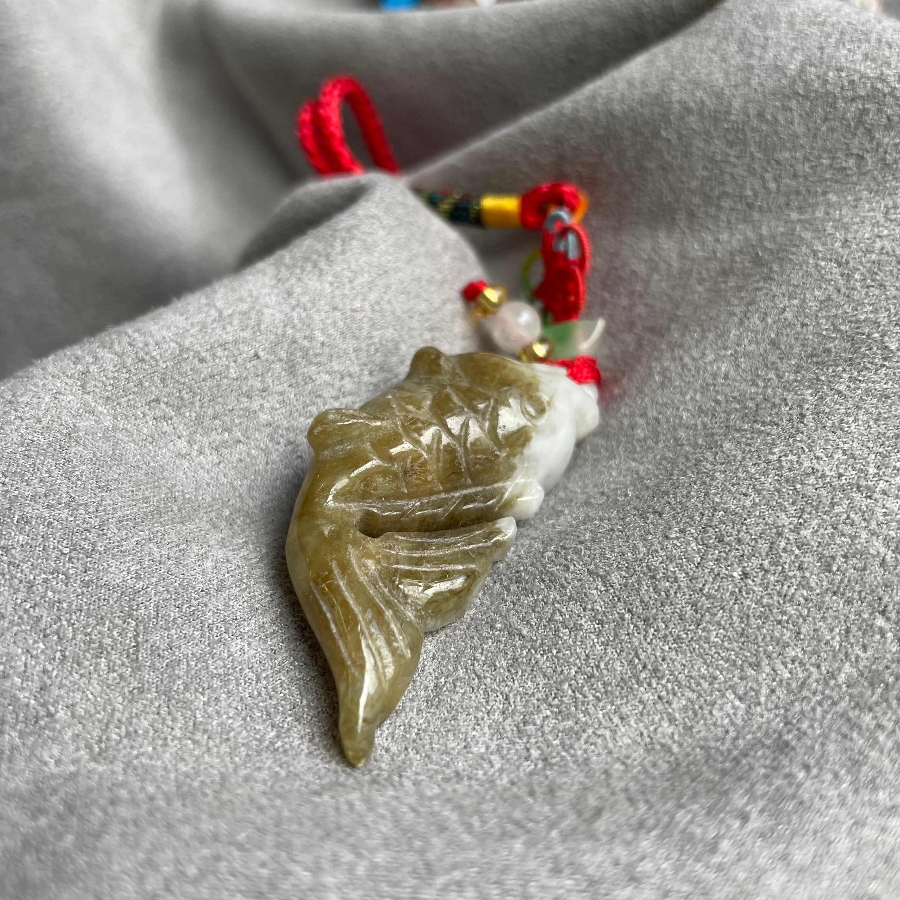 お買得!手彫り 縁起の良い鯉のチャーム 落ち着いた緑