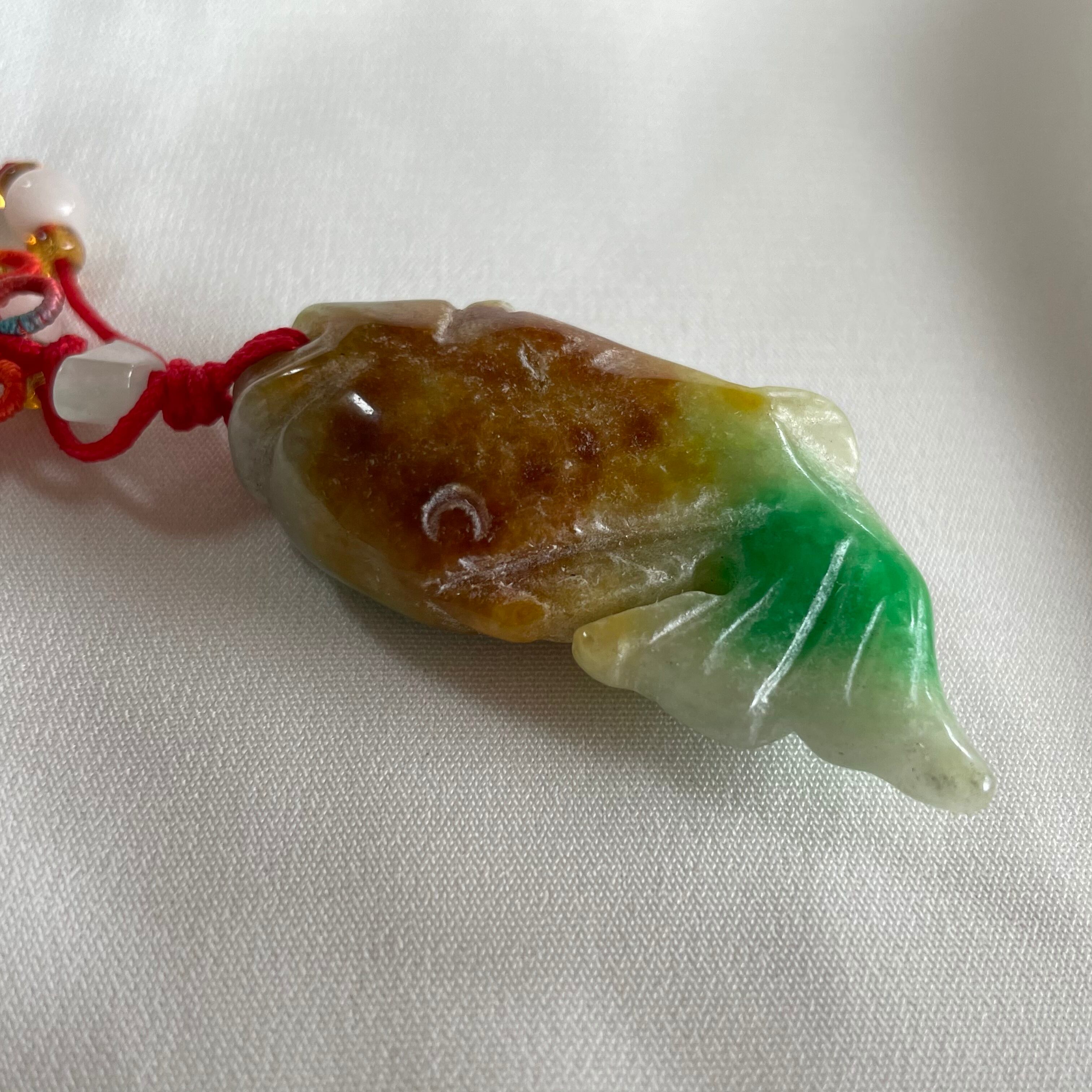 お買得!手彫り 縁起の良い鯉のチャーム 明るい緑色