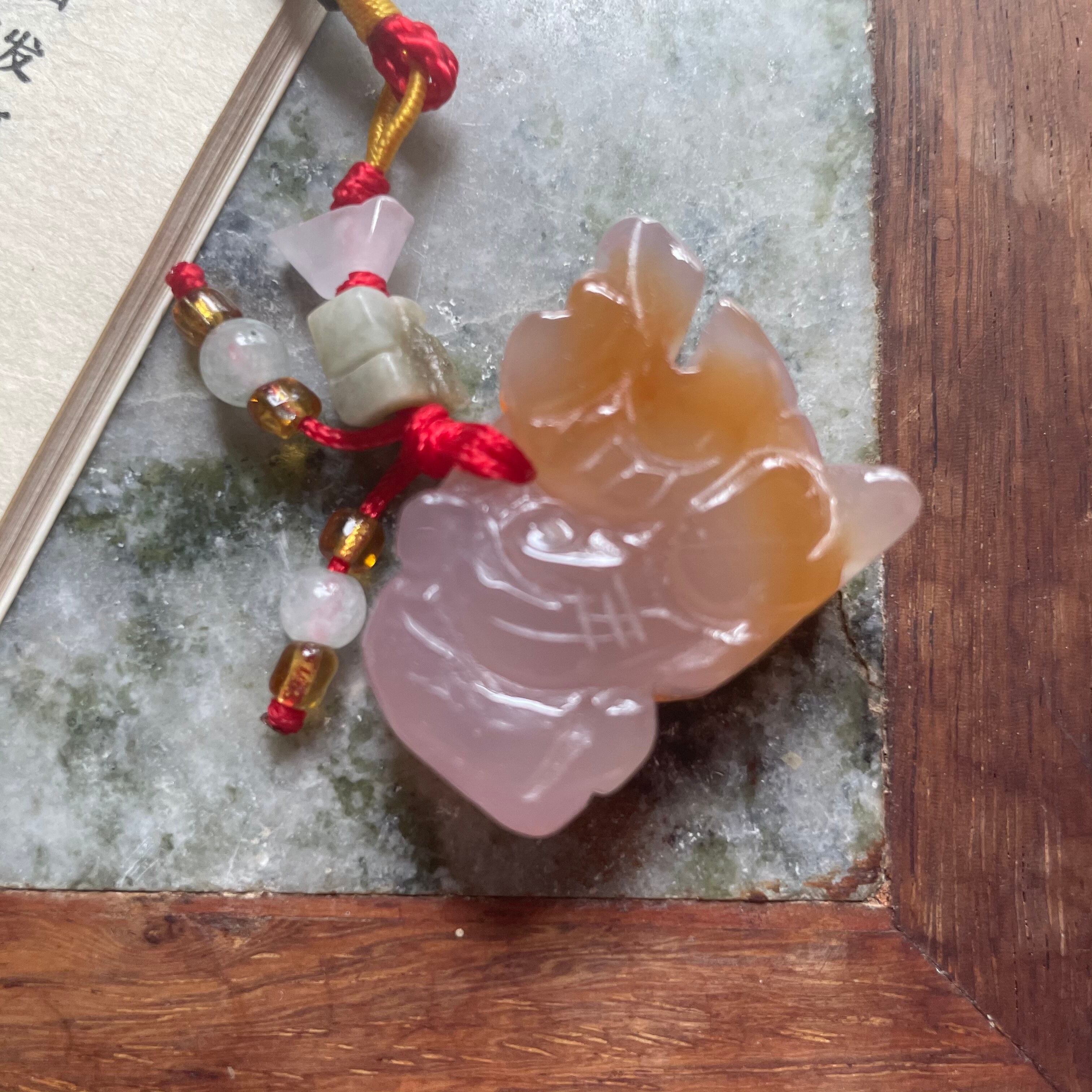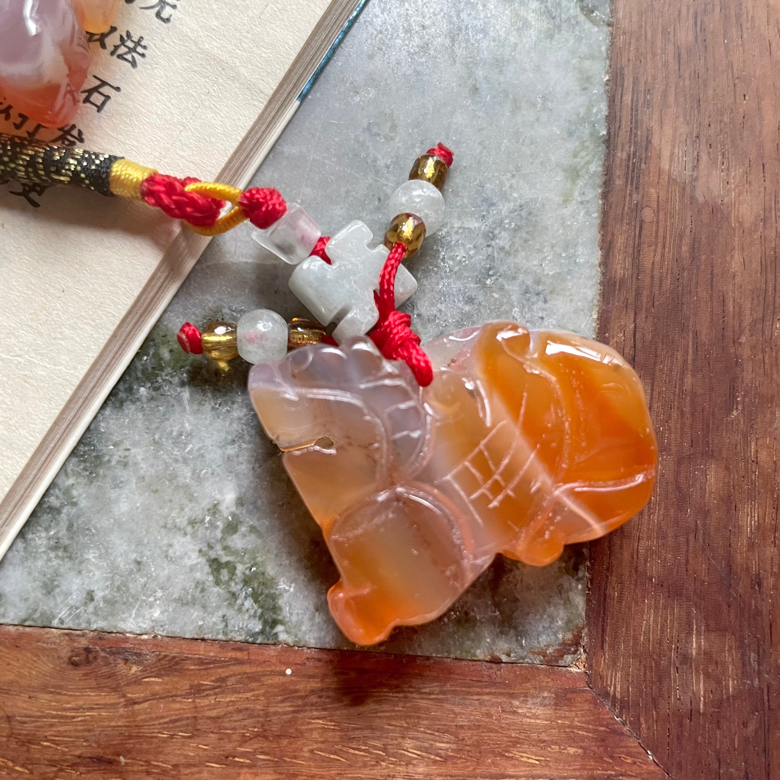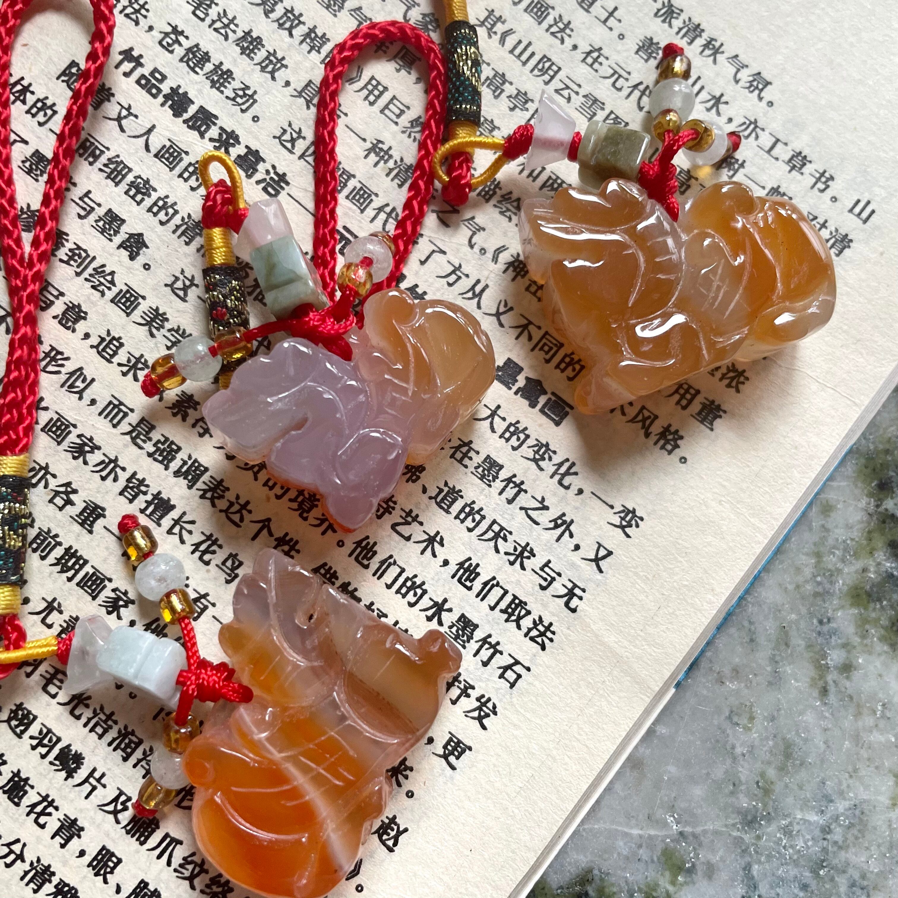 伝説の神獣!手彫り貔貅チャーム 瑪瑙(淡い色)