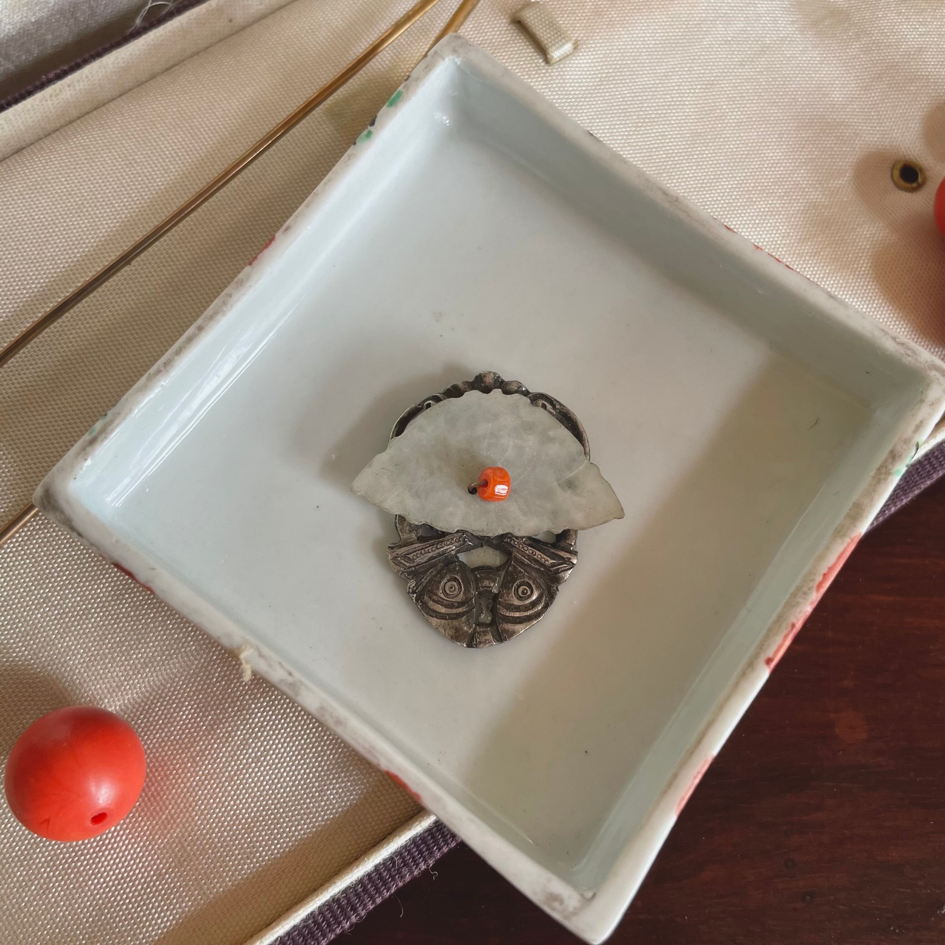 珍しい!【アンティーク】 翡翠と珊瑚の飾り