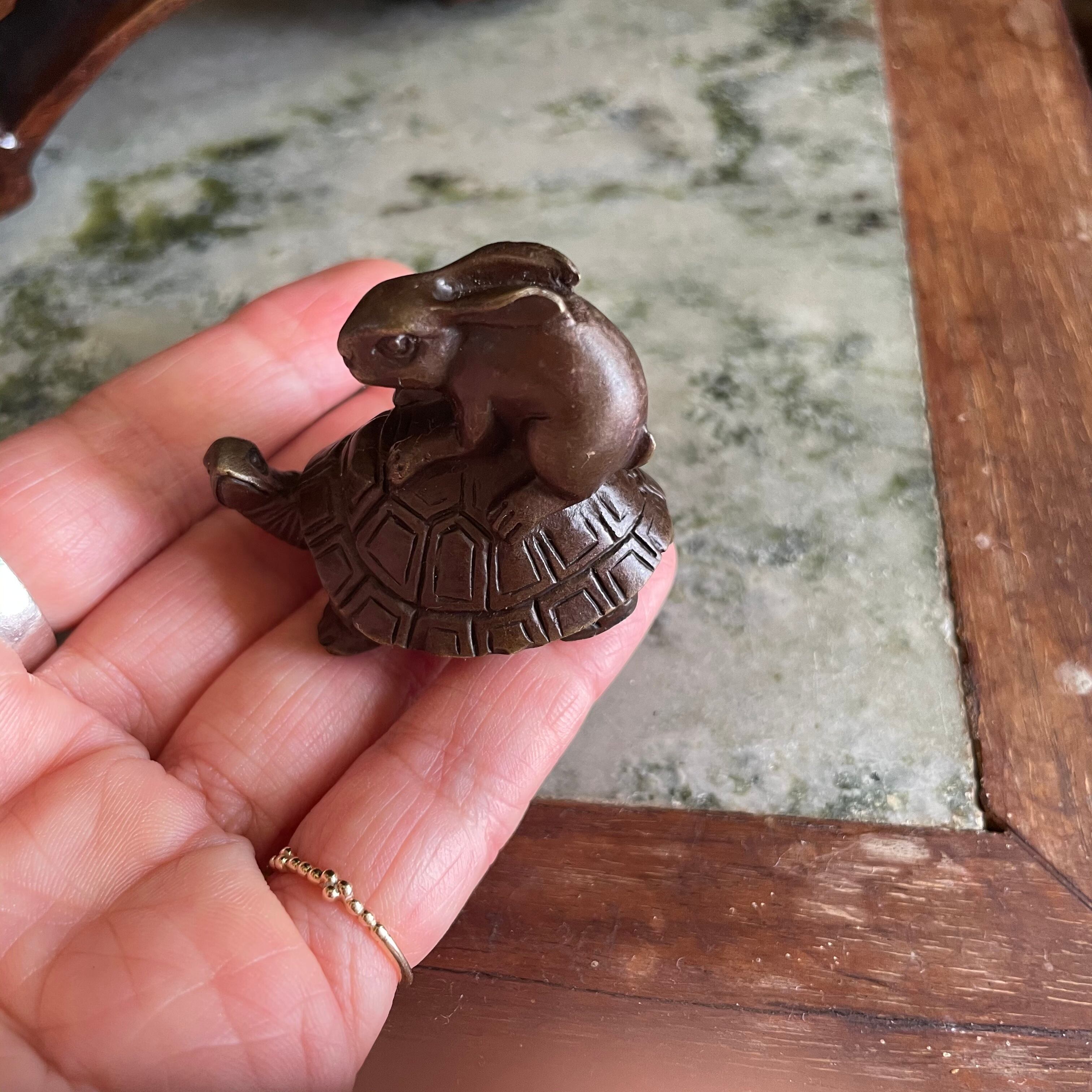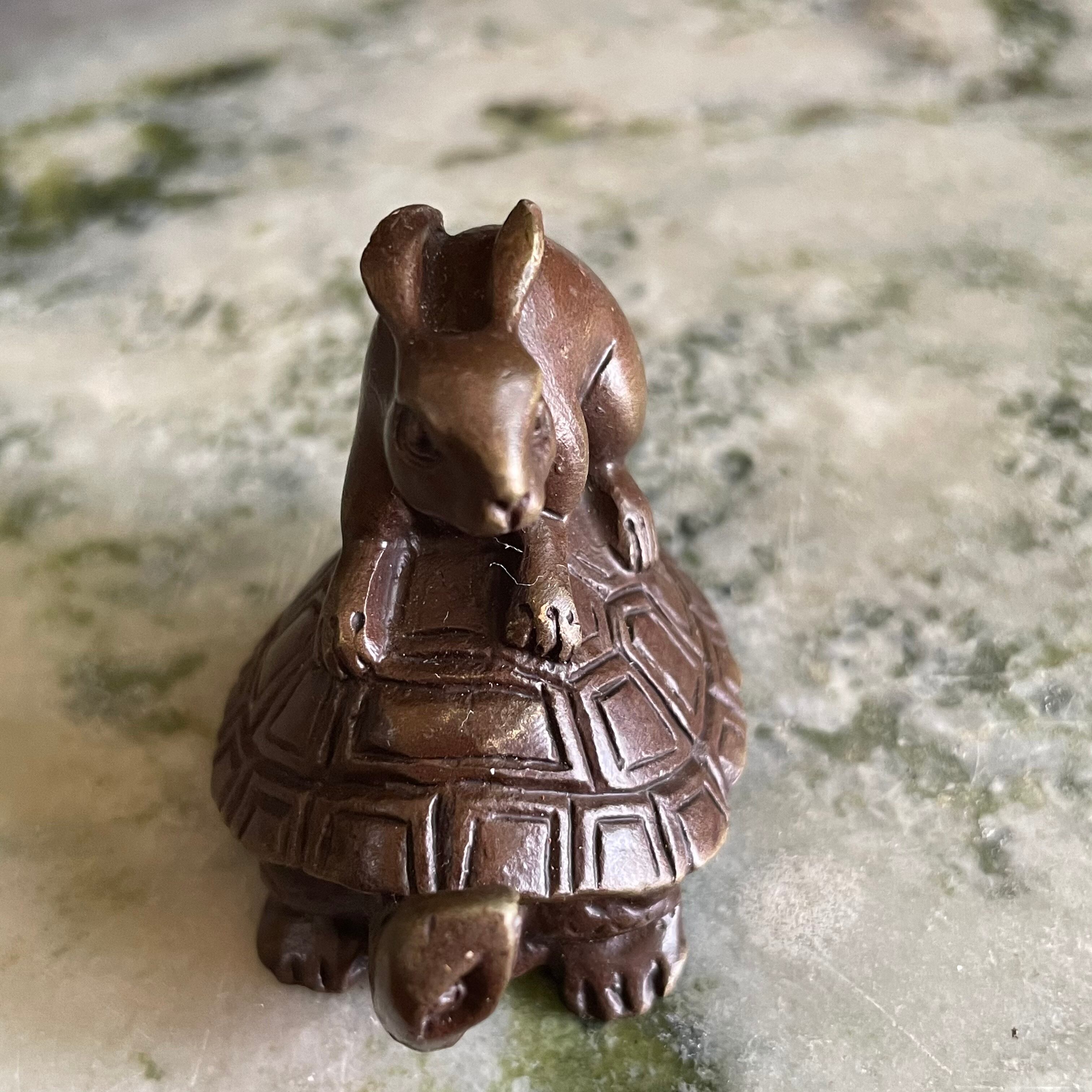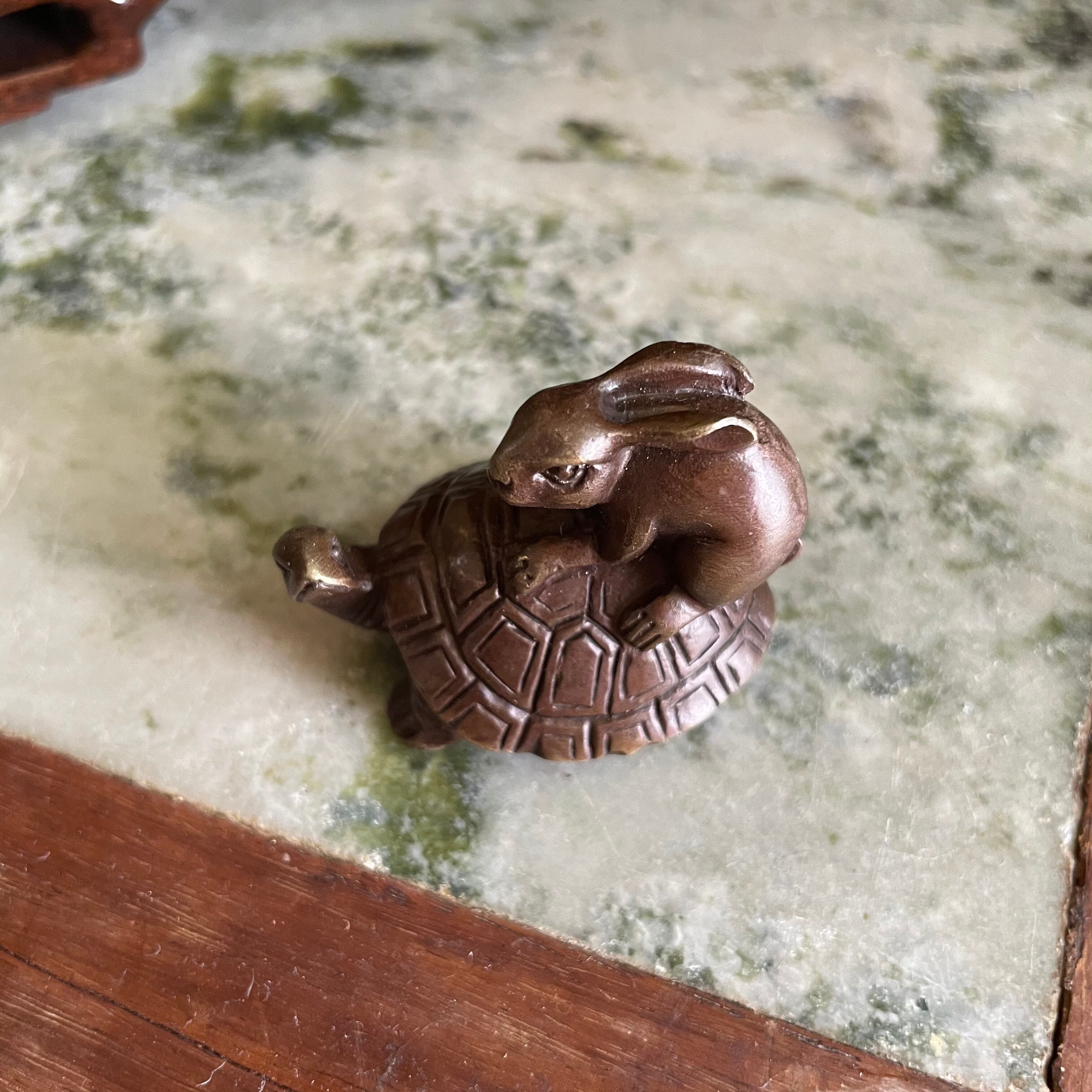 カメの上にうさぎが乗って何やら話しかけていますね!